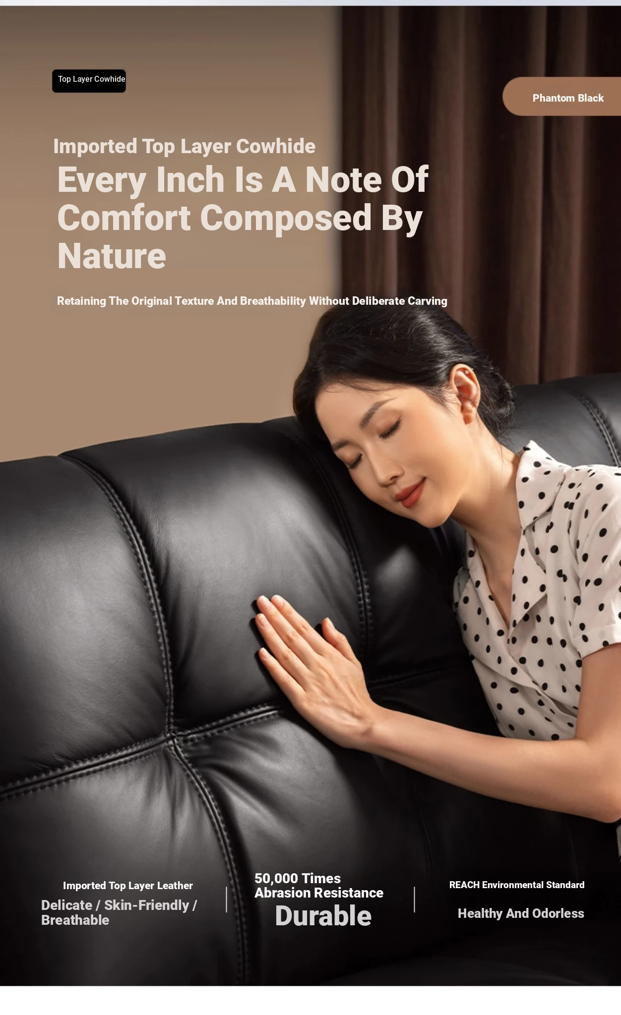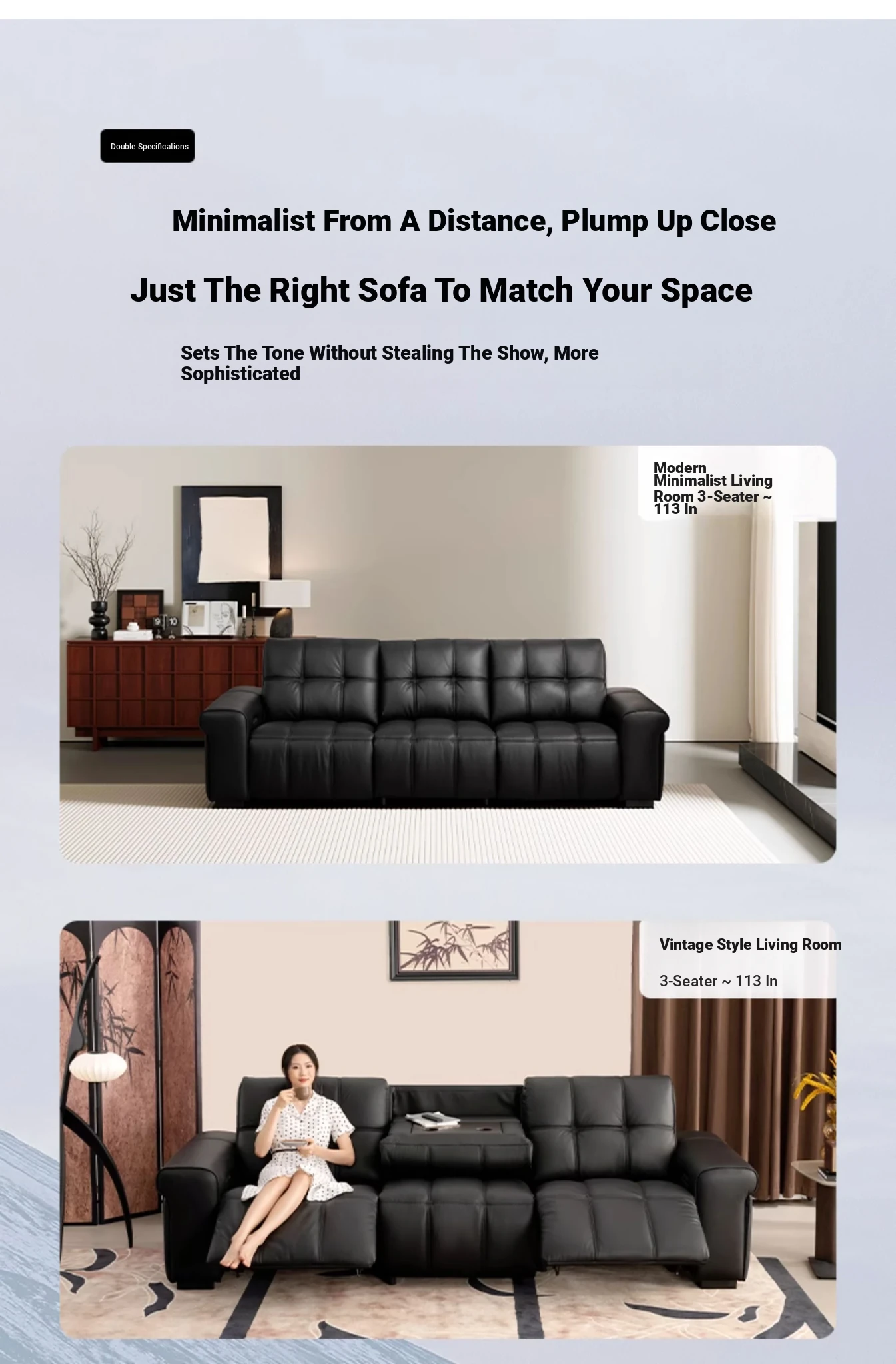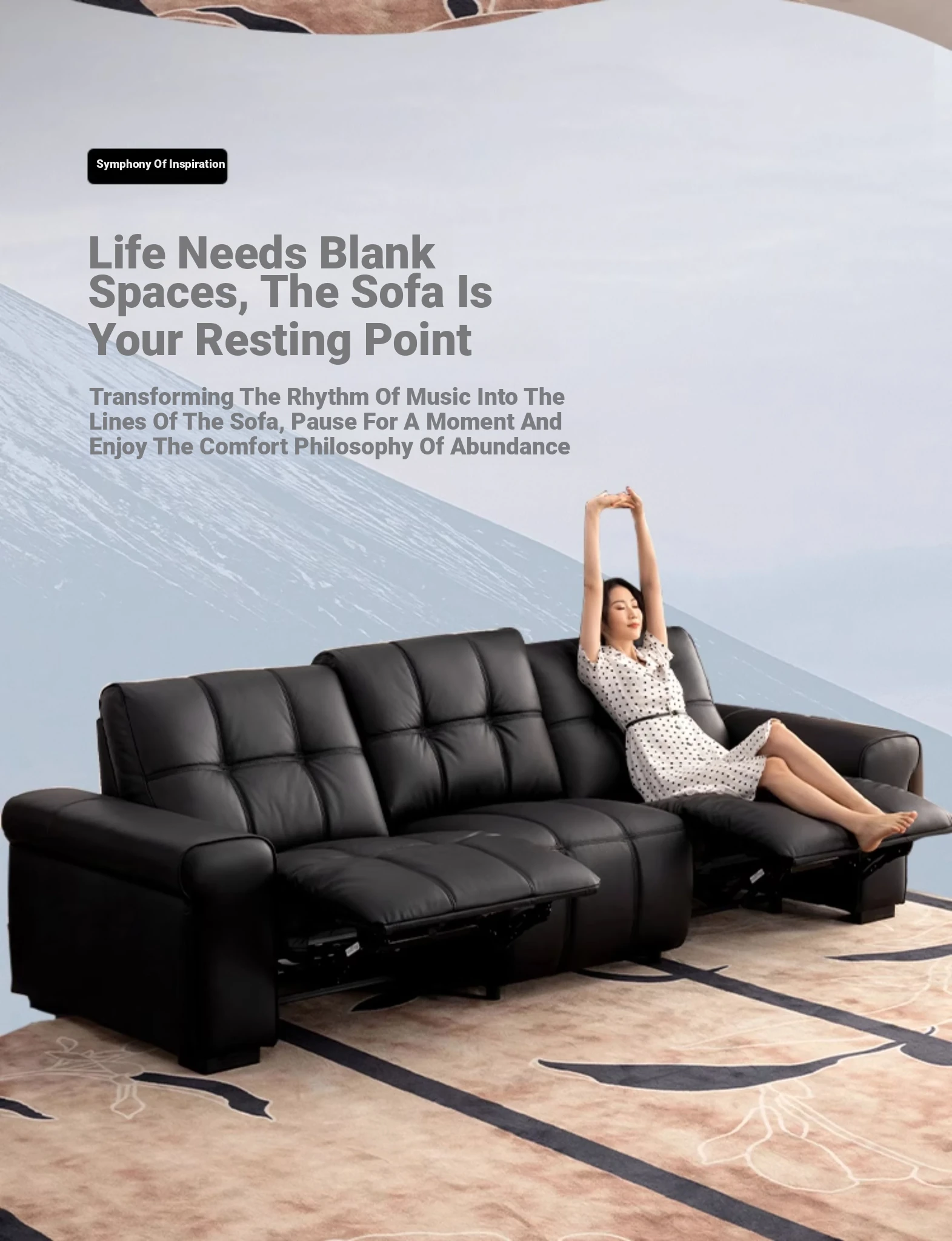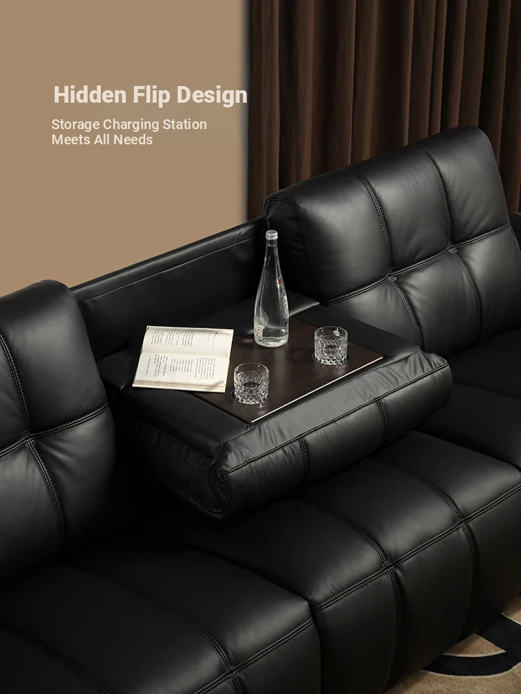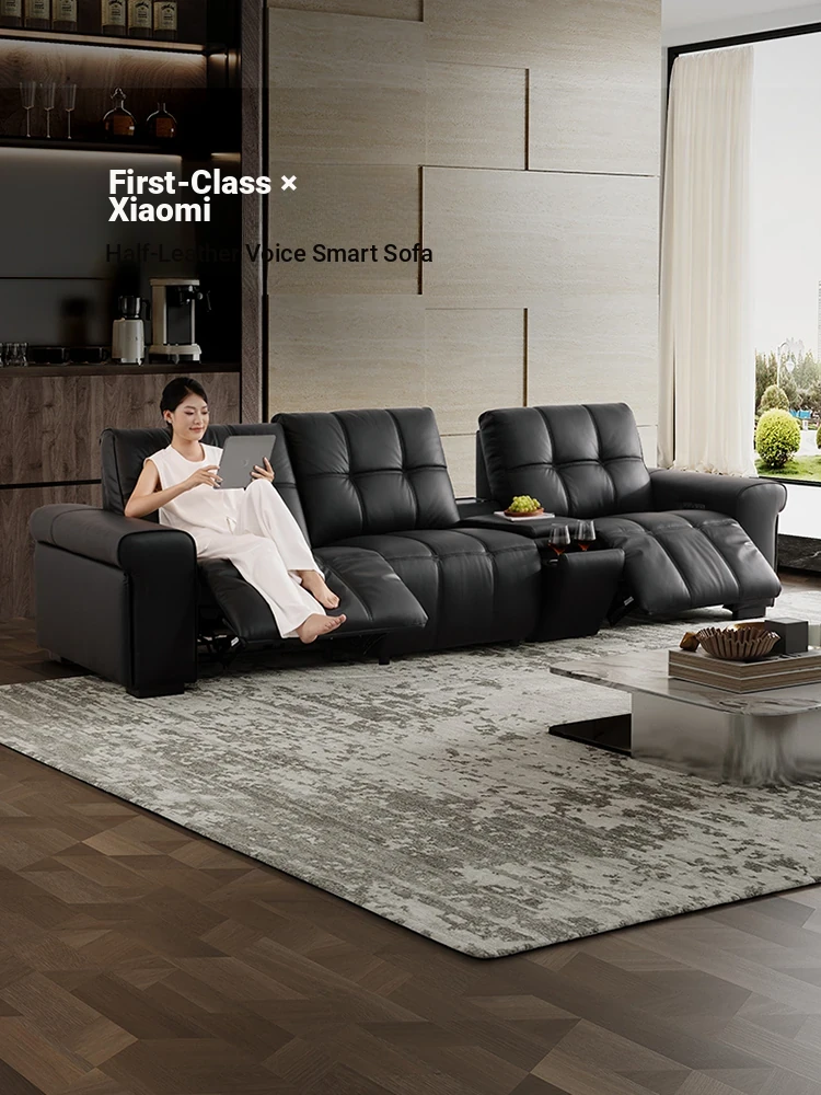 Zhiwa Shi First-Class Half Leather Sofa with Smart Voice Control and Electric Function - Piano Key Design for Living Room and Home Theater, Model 30760