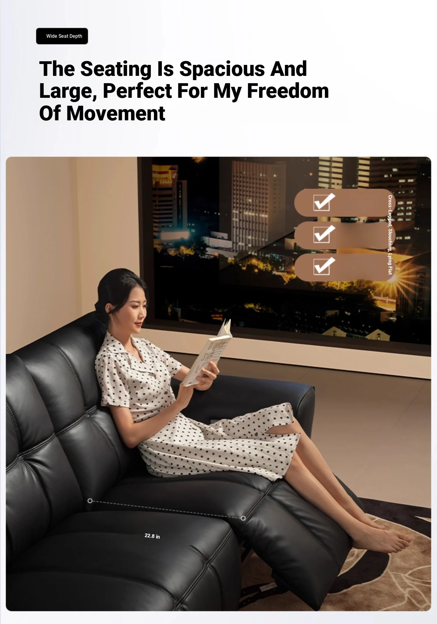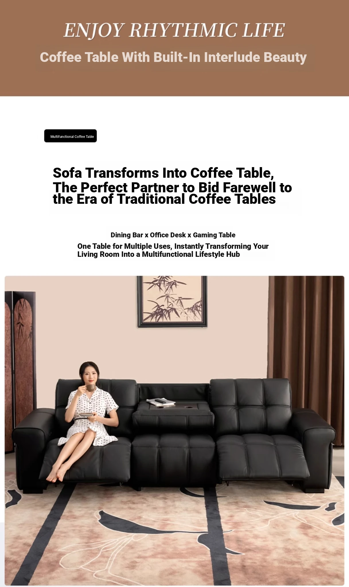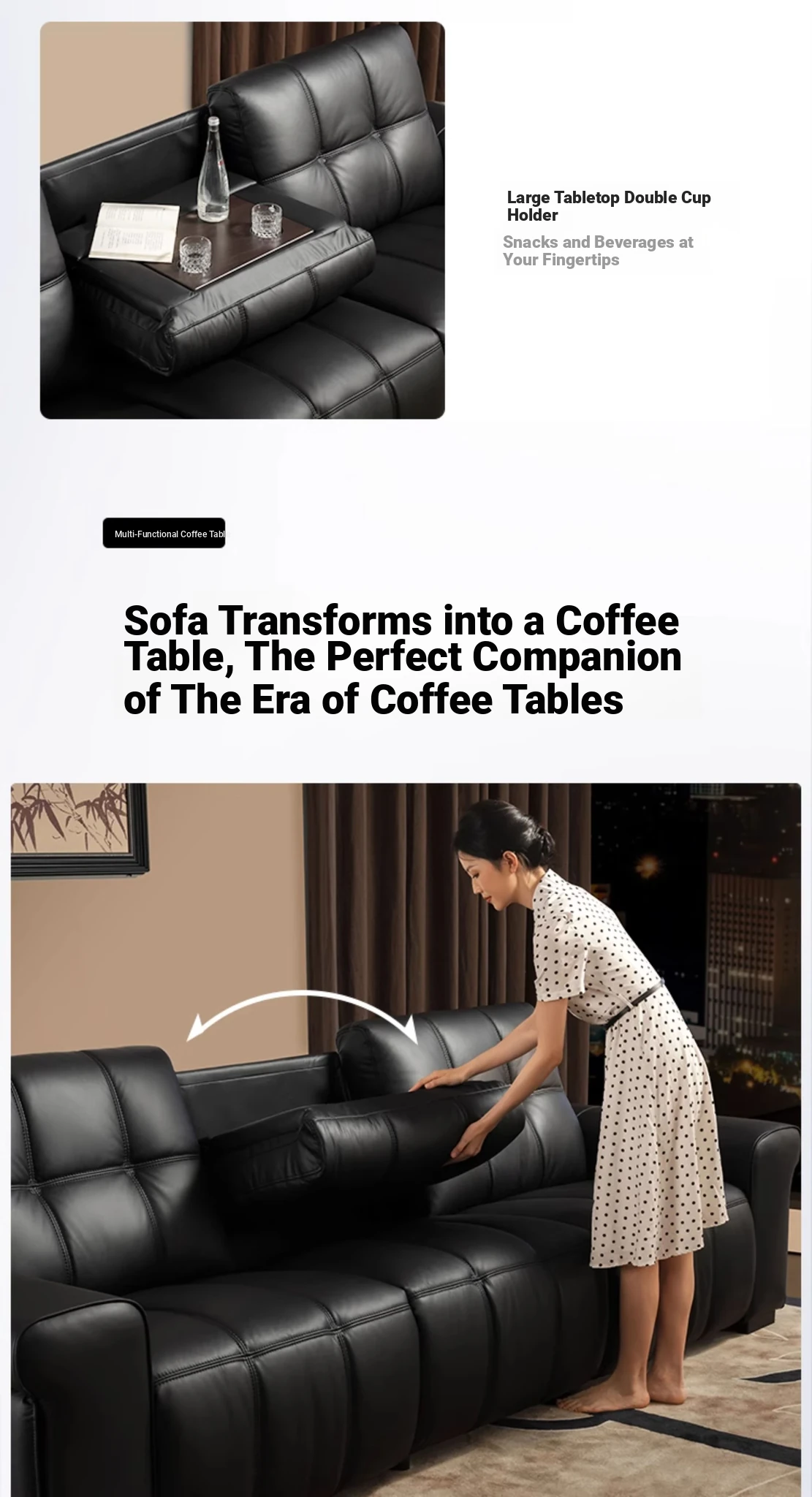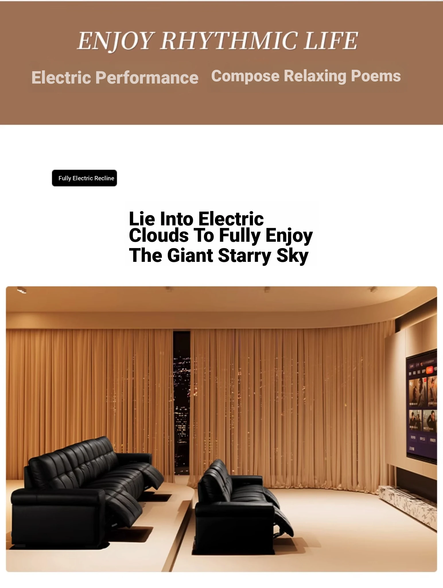 Zhiwa Shi First-Class Half Leather Sofa with Smart Voice Control and Electric Function - Piano Key Design for Living Room and Home Theater, Model 30760