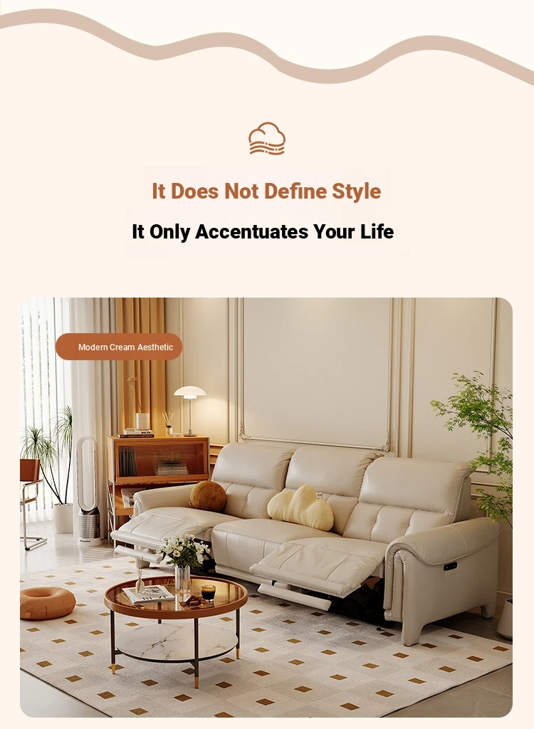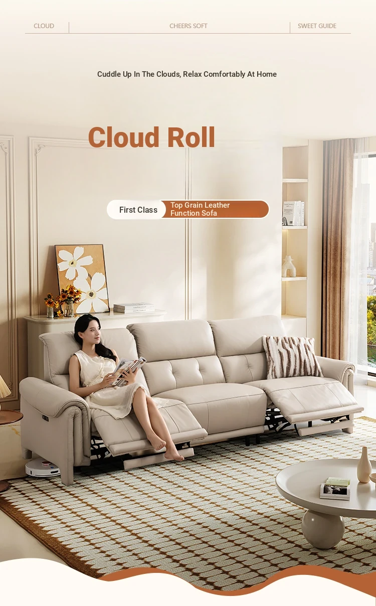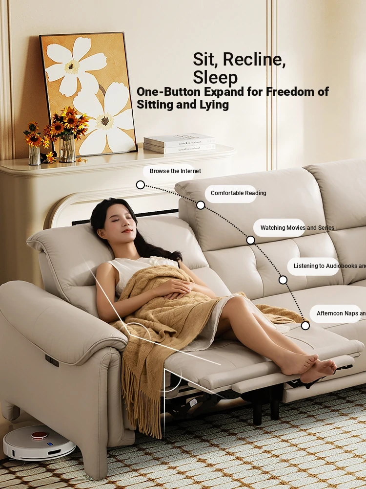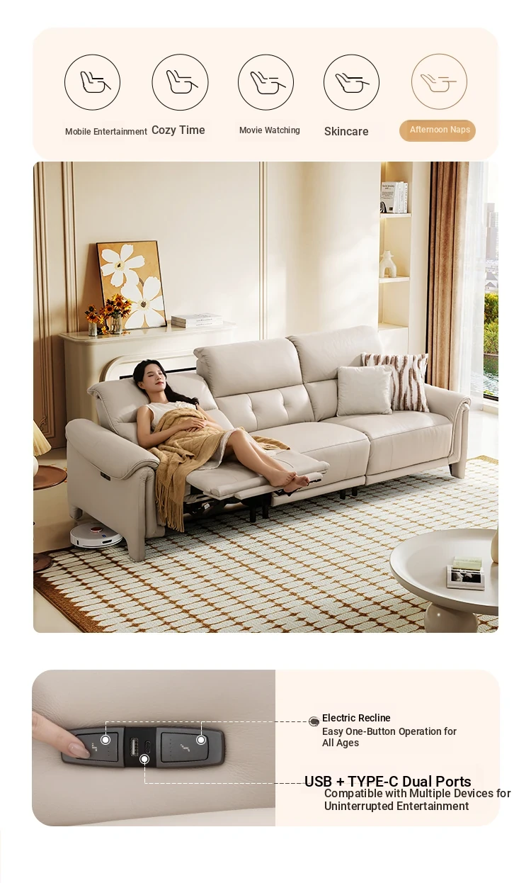 ZHIWA Shi First-Class Modern Minimalist Genuine Leather Electric Reclining Sofa for Small Spaces - Model 30719, Perfect for Stylish Living Rooms!