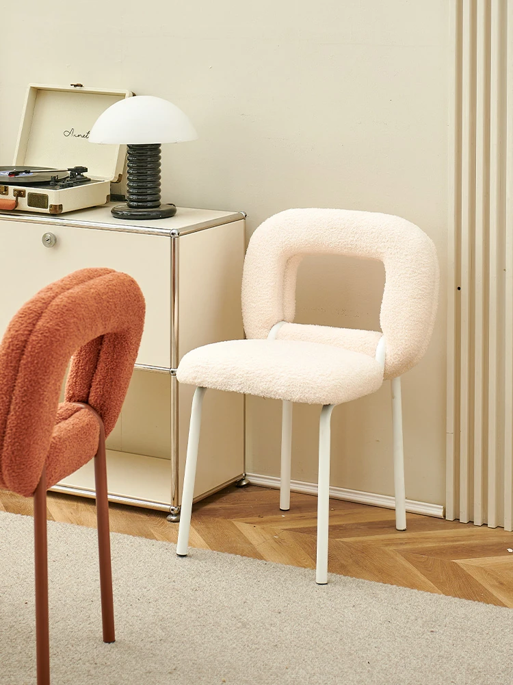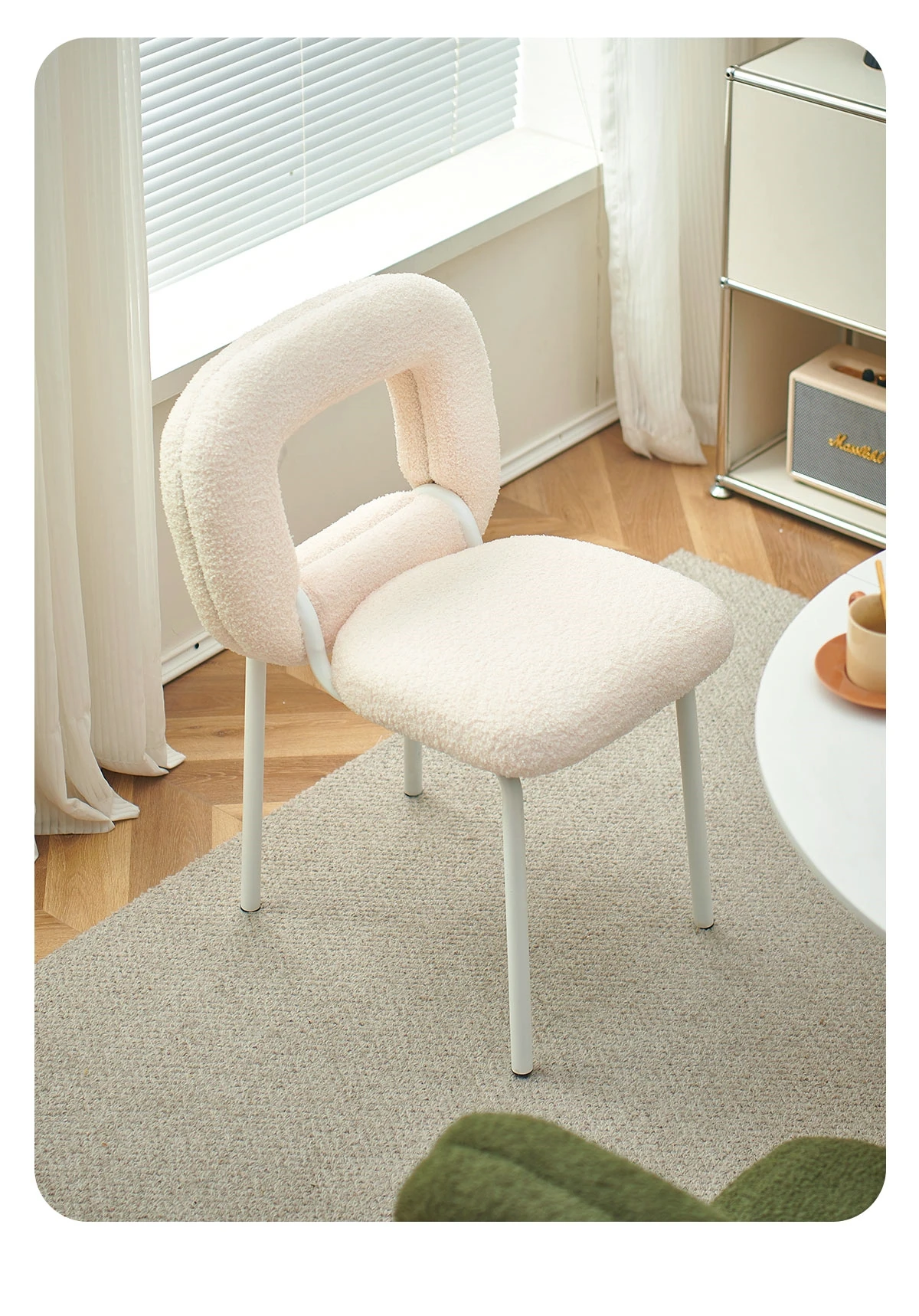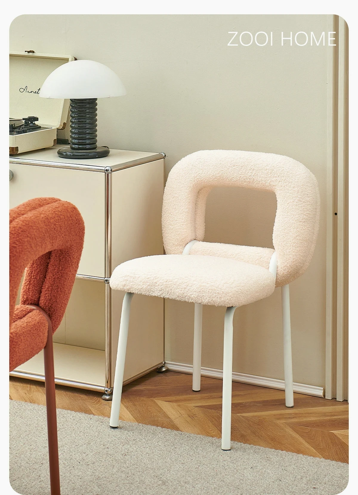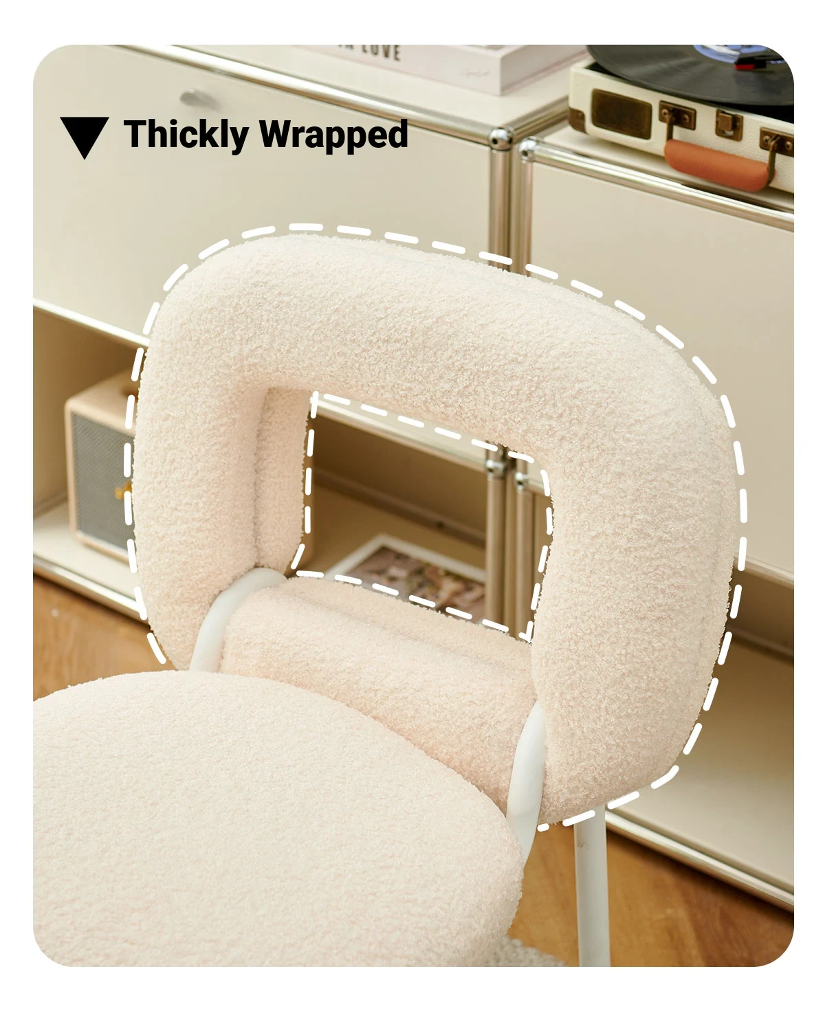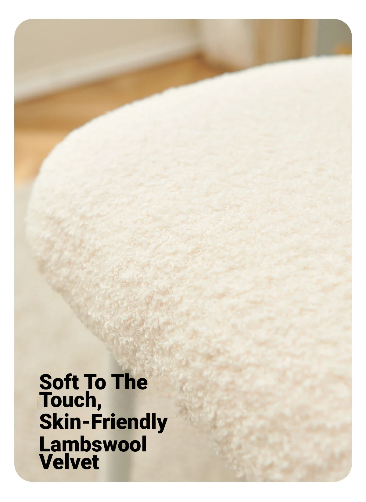 ZOOI HOME Creamy Lamb Fleece Makeup Chair - Chic Vanity Stool for Girls, Trendy Nail Salon Seat, Perfect for Bedroom Décor