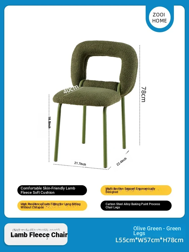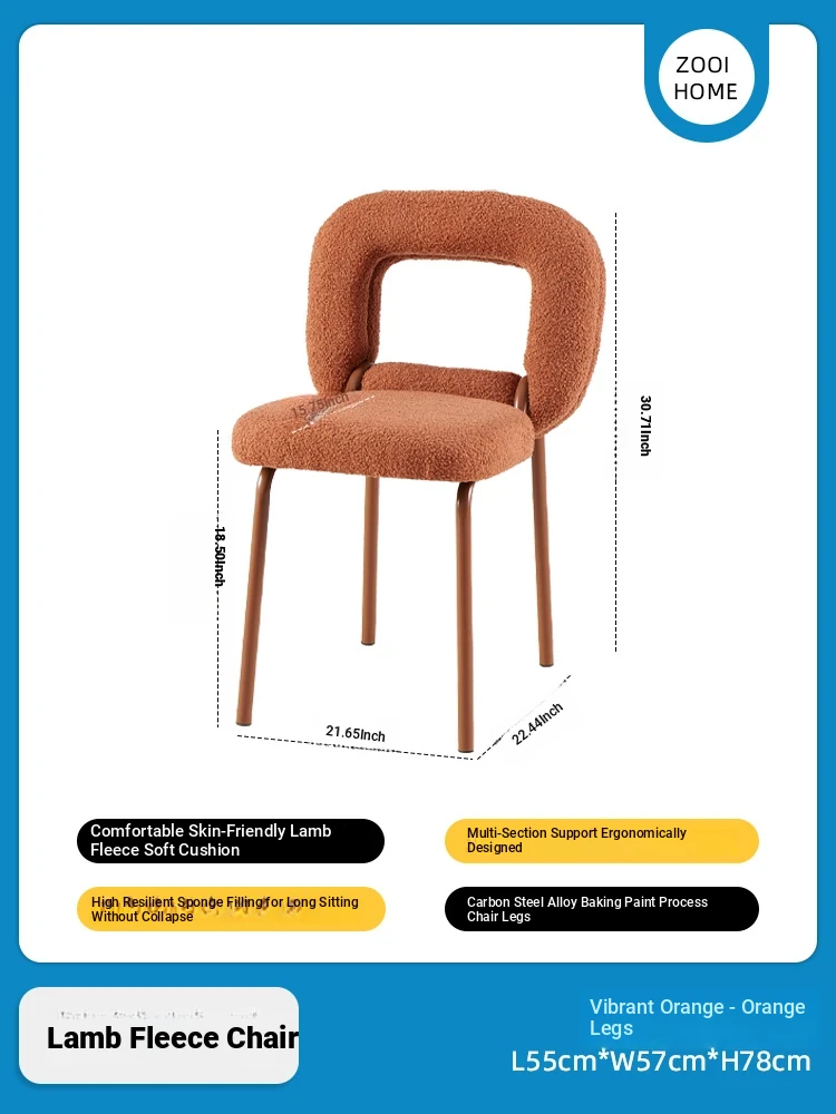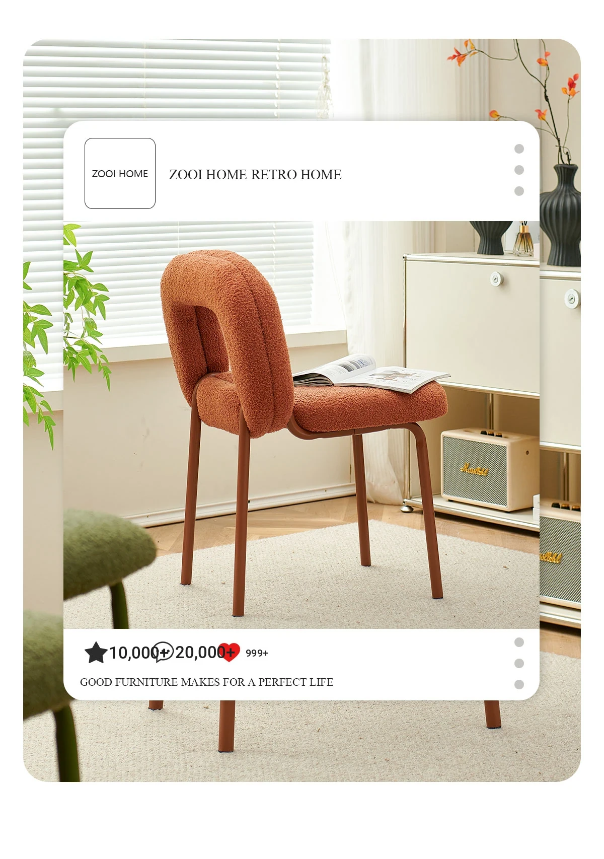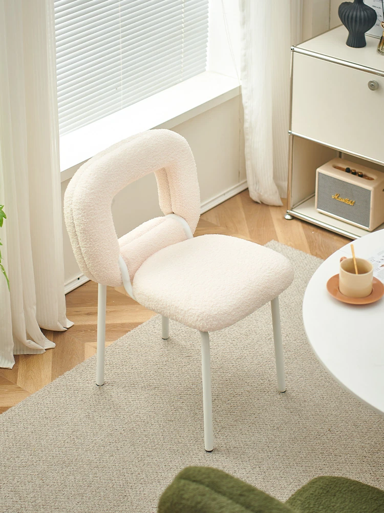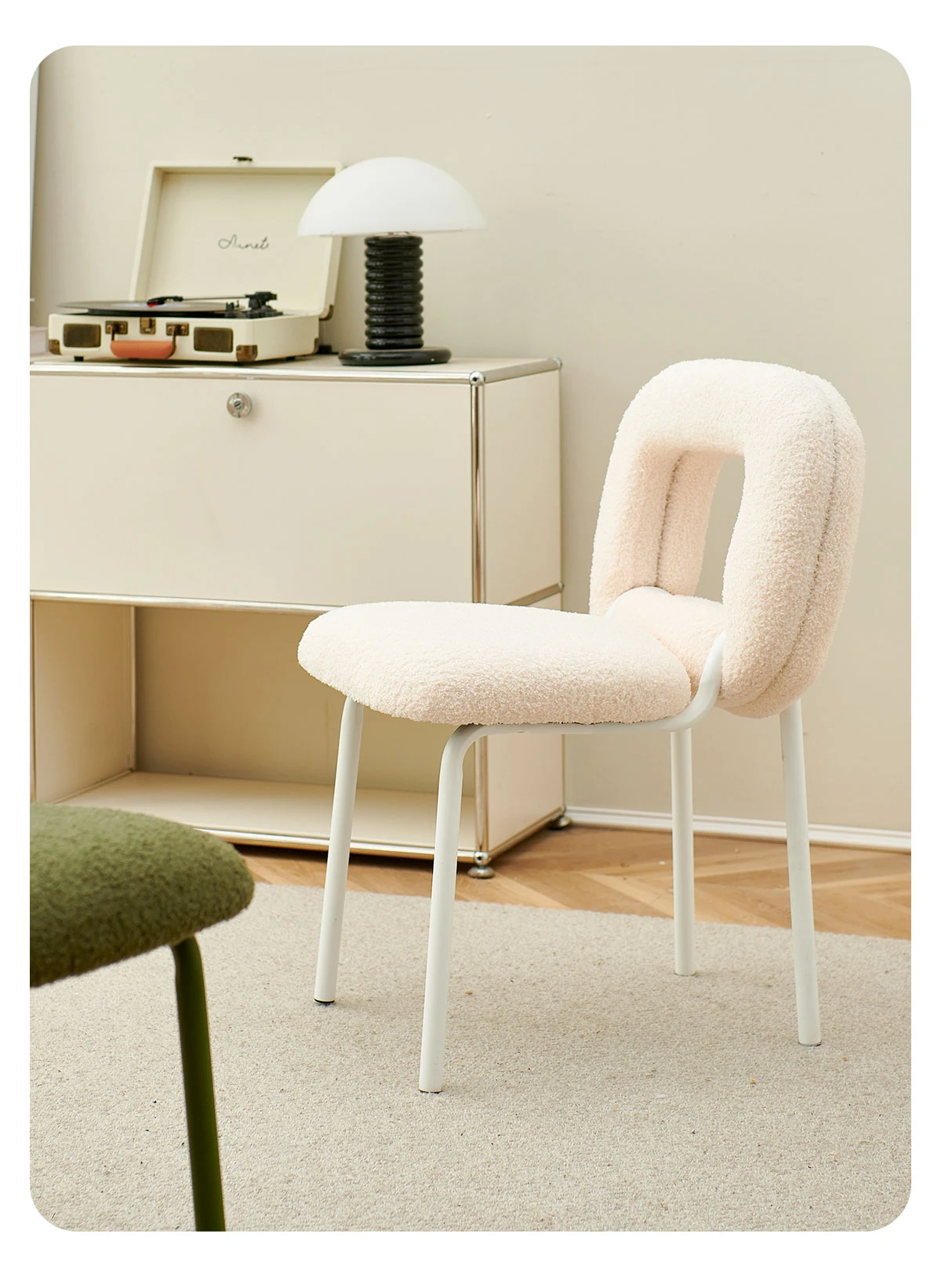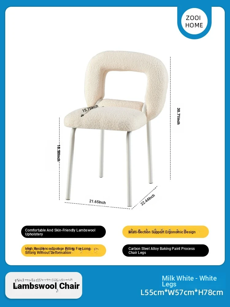 ZOOI HOME Creamy Lamb Fleece Makeup Chair - Chic Vanity Stool for Girls, Trendy Nail Salon Seat, Perfect for Bedroom Décor