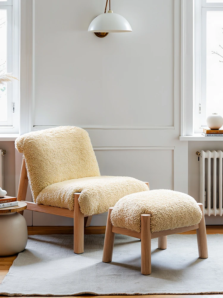 Vintage Minimalist Cream Wabi-Sabi Single Lounge Chair - Perfect for Beauty Salons, Guesthouses, and Living Rooms - Cozy Lambswool Sofa Chair for Relaxation and Style