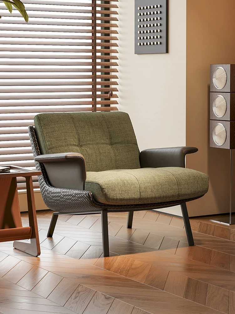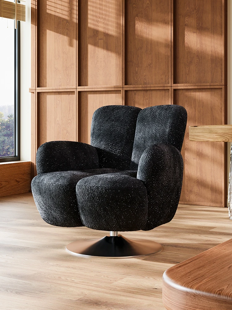 Italian Luxury Rotating Single Sofa Chair - Trendy Designer Lounge Chair for Living Room, High-End Bedroom, and Home Office Use