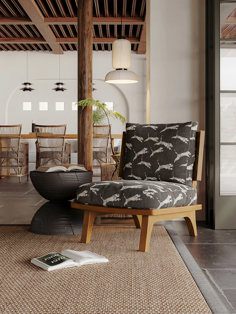 Wabi-Sabi Solid Wood Single Sofa - Vintage-Inspired Lounge Chair for Living Room and Balcony, Perfect for Hotels and Guesthouses, Ideal for Relaxation and Aesthetic Appeal
