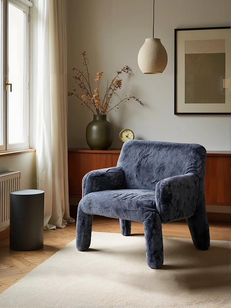 Designer Creative Single Leisure Chair - Vintage Wabi-Sabi Style, Perfect for Beauty Salons, Guesthouses, Living Rooms, and Bedrooms - Faux Rabbit Fur Sofa Chair