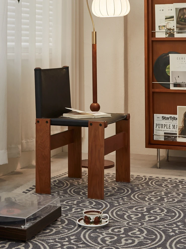 Vintage Solid Wood Dining Chair - Wabi-Sabi Style Genuine Leather Designer Chair for Home Dining Room - Perfect for a Cozy and Elegant Atmosphere