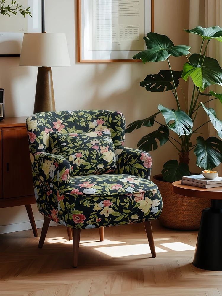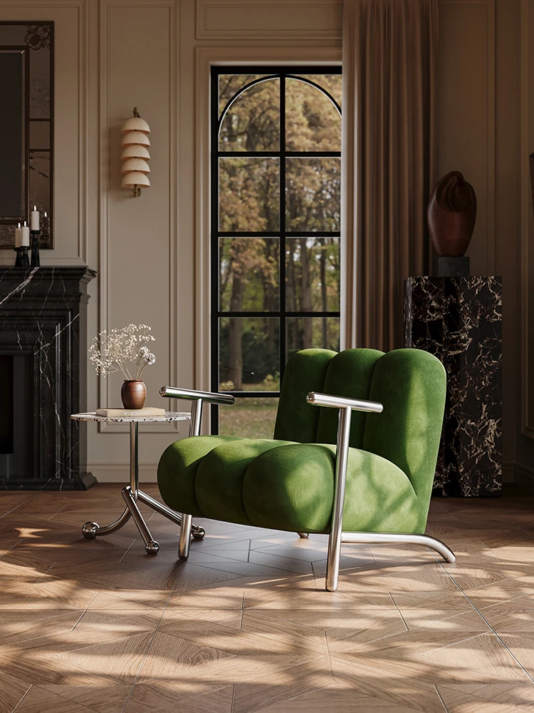 Vintage-Inspired French Designer Lounge Chair - Creative Retro Style for Living Room & Balcony - Trendy Single Armchair Perfect for Beauty Salons and Cozy Spaces