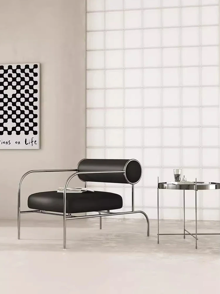 Vintage-Style Italian Minimalist Sofa Chair - Designer Stainless Steel Single Chair for Living Room and Balcony, Retro Casual Seat, Perfect for Trendy Spaces