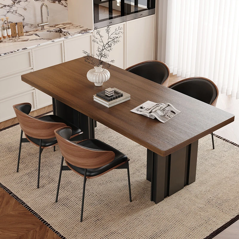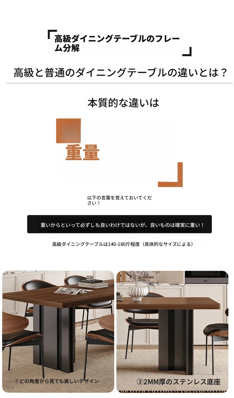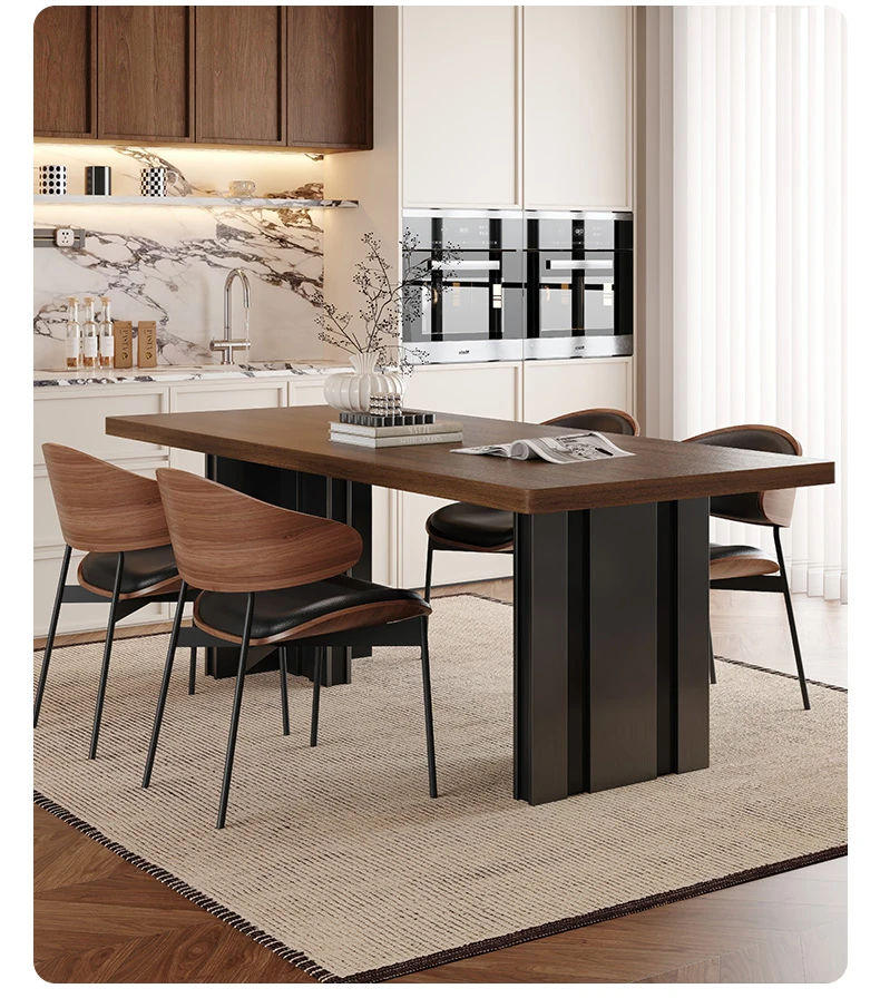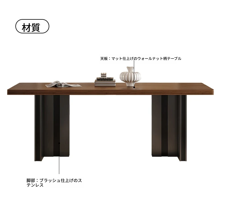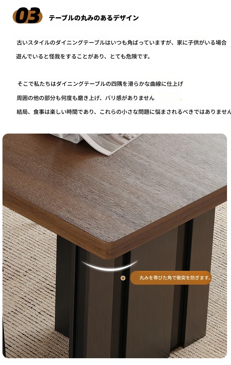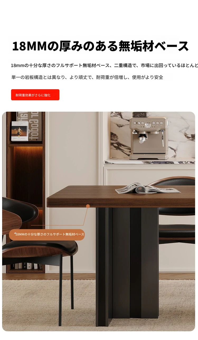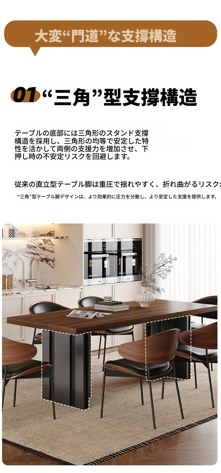 2025年新作!高級感溢れる胡桃色木目調のロックボードダイニングテーブル - ヴィンテージ風の長方形デザインで、おしゃれなリビングにぴったり!下掛けスタイルでスッキリ収納も実現!