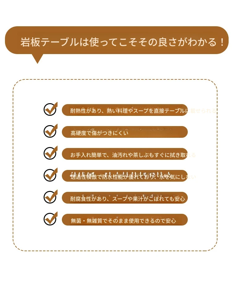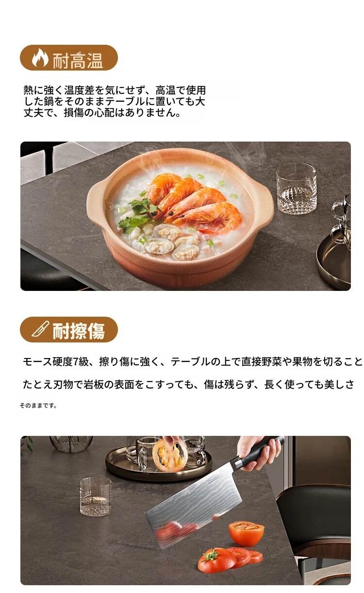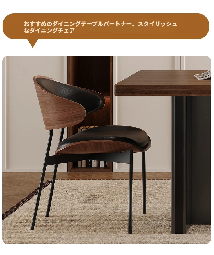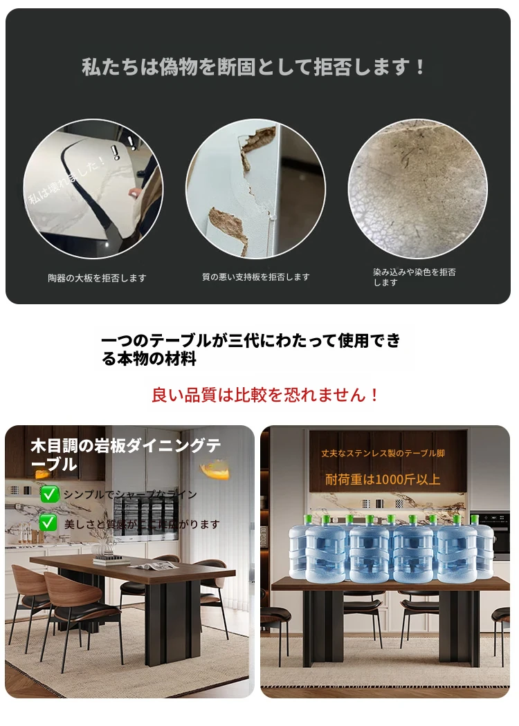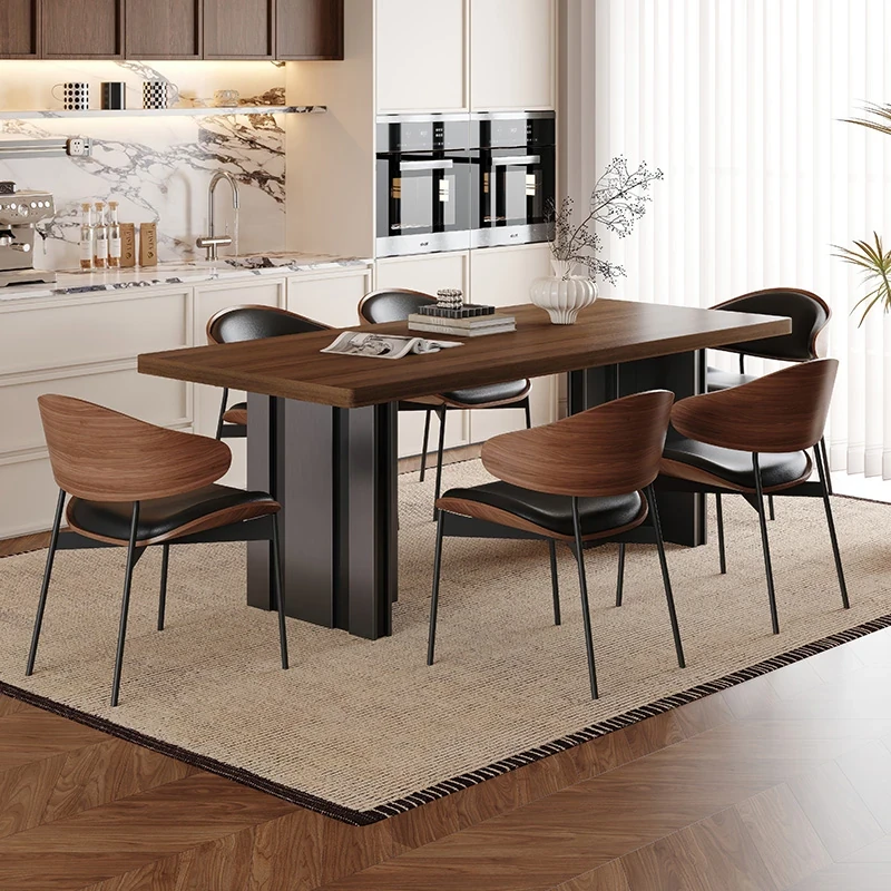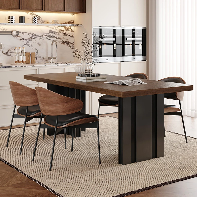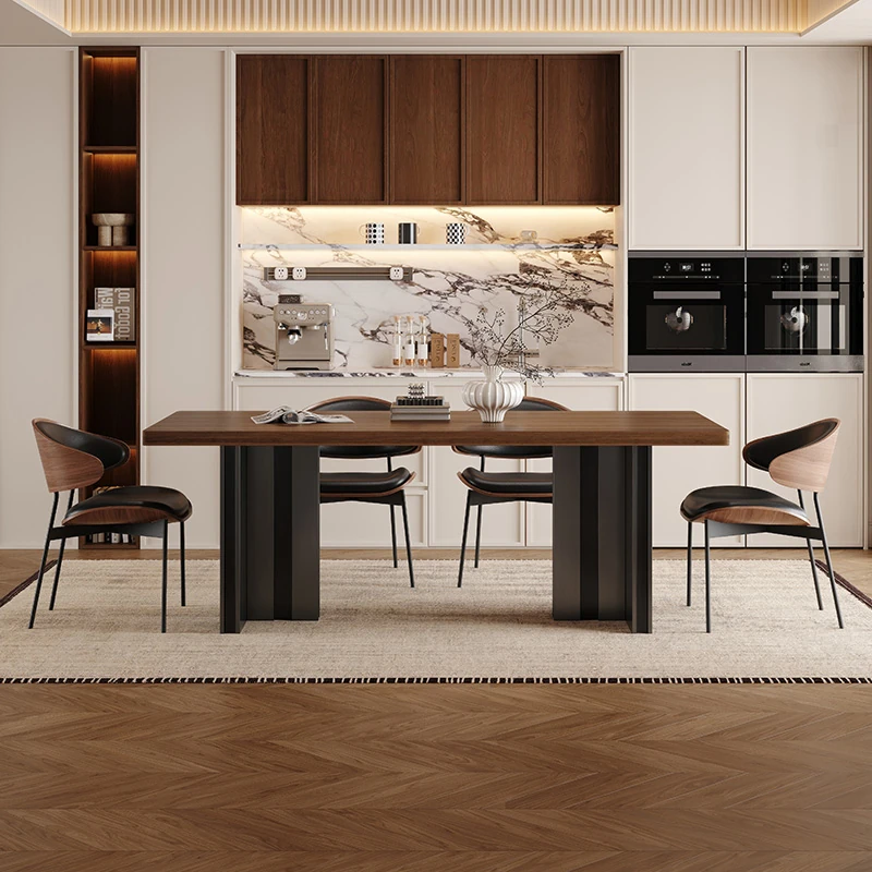 2025年新作!高級感溢れる胡桃色木目調のロックボードダイニングテーブル - ヴィンテージ風の長方形デザインで、おしゃれなリビングにぴったり!下掛けスタイルでスッキリ収納も実現!