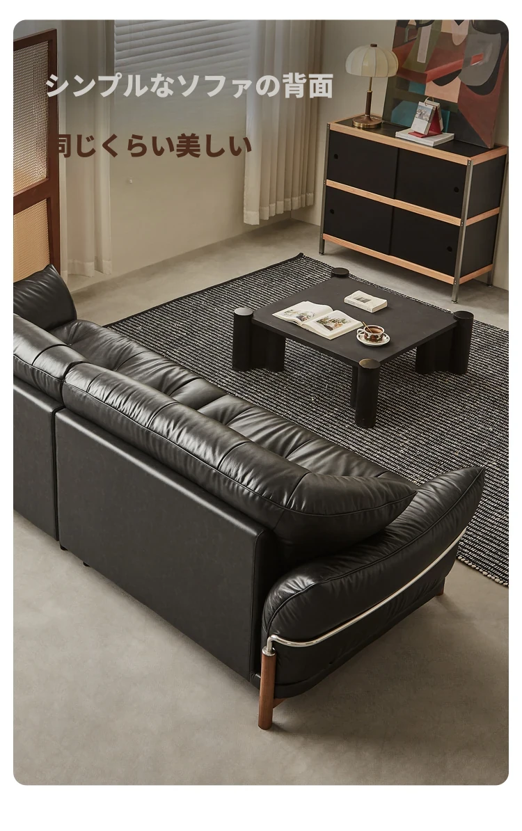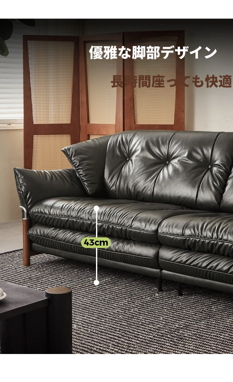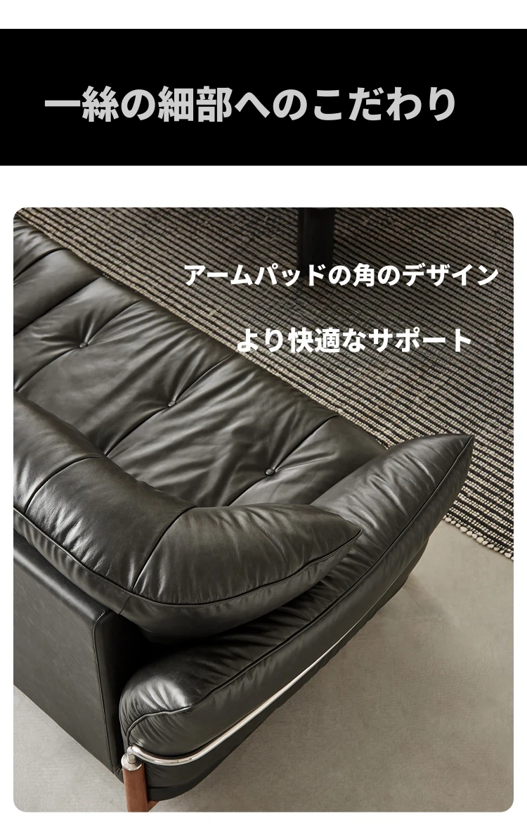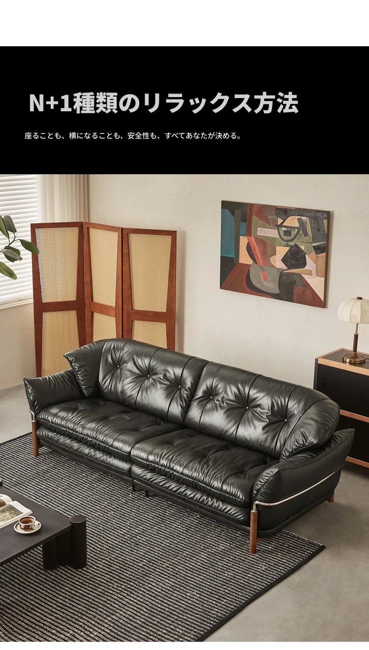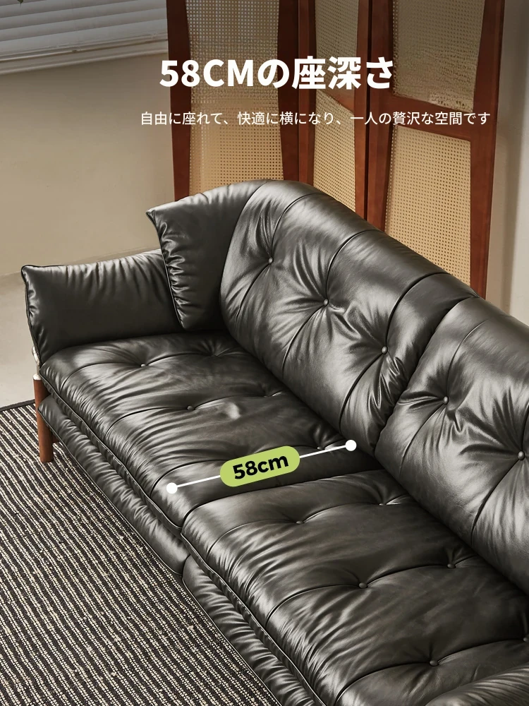 モクモク家具 モネ風レトロオイルワックスレザーソファ フランスのアンティークスタイル ブラック本革ストレートリビングソファ 新作登場!おしゃれで高級感溢れるデザインで、あなたのリビングを華やかに演出します。