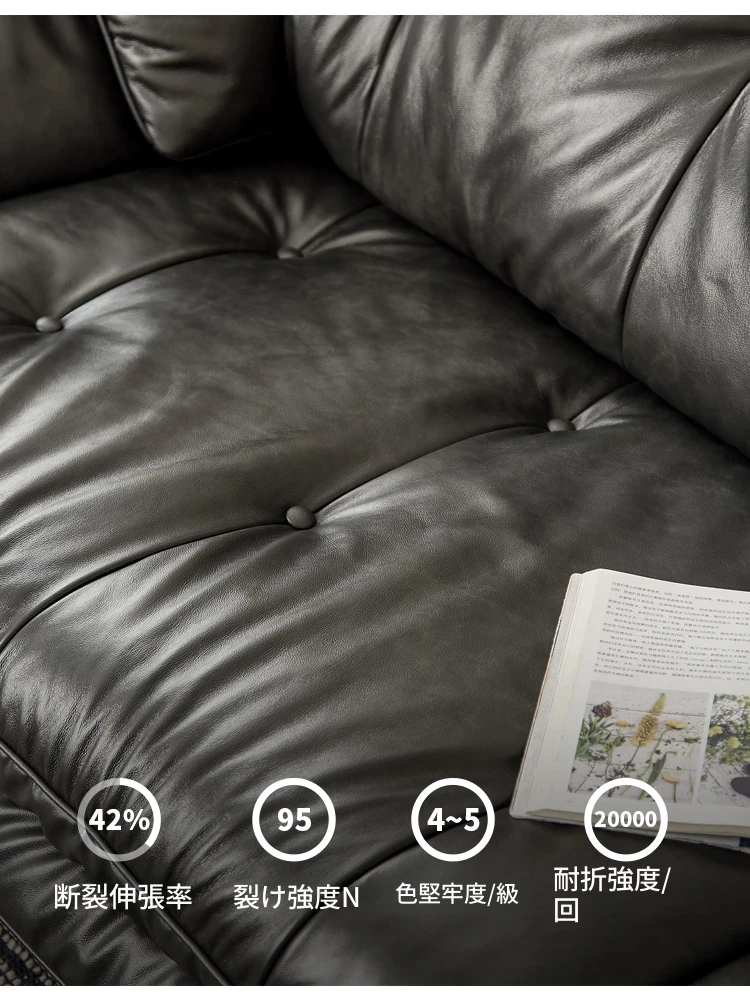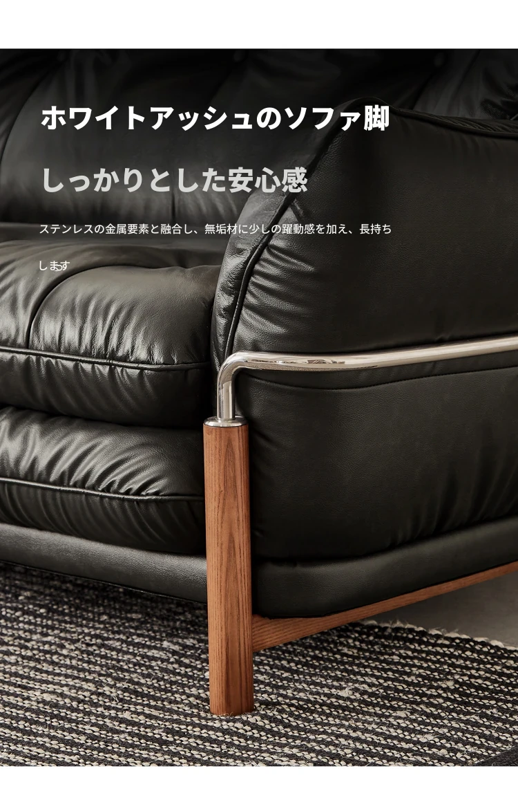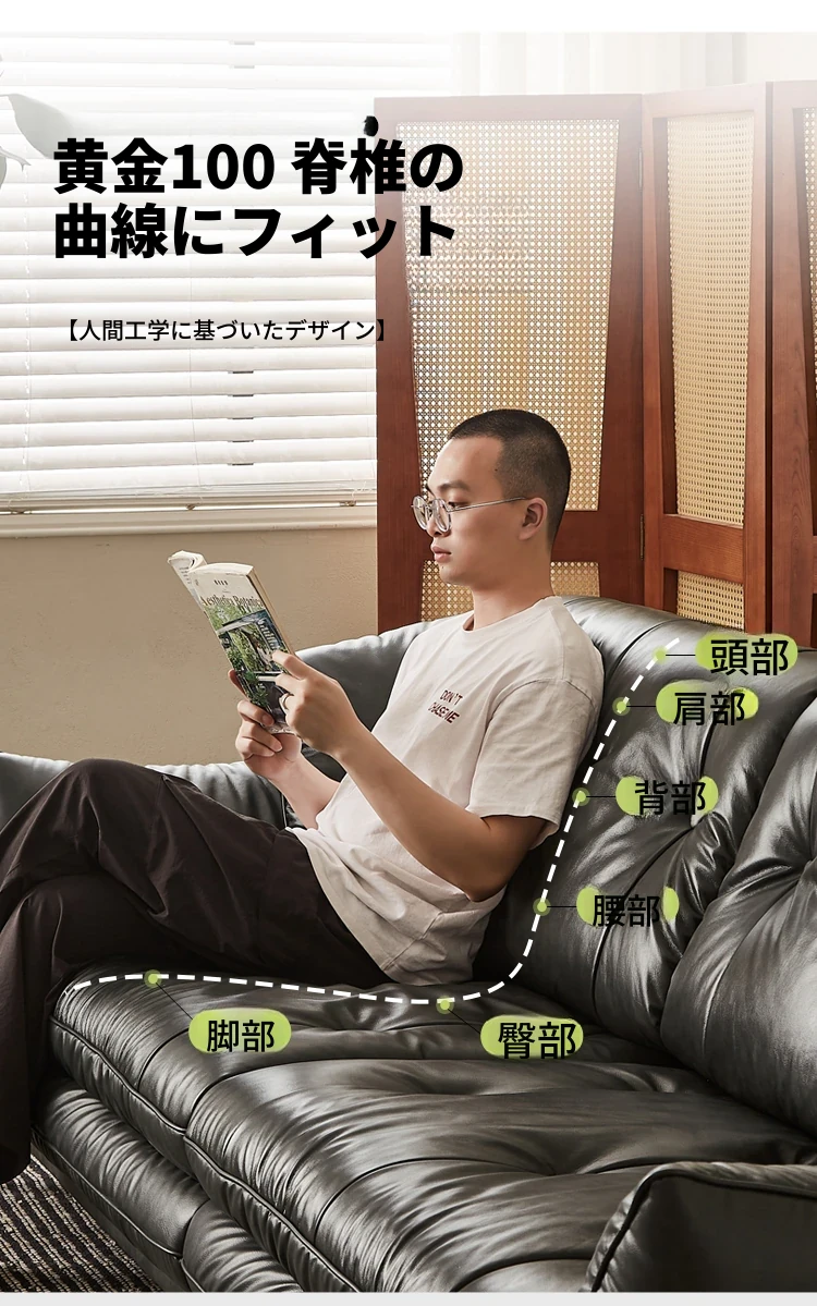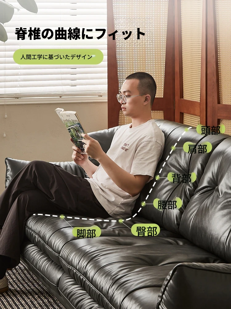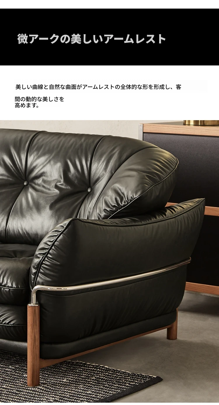 モクモク家具 モネ風レトロオイルワックスレザーソファ フランスのアンティークスタイル ブラック本革ストレートリビングソファ 新作登場!おしゃれで高級感溢れるデザインで、あなたのリビングを華やかに演出します。