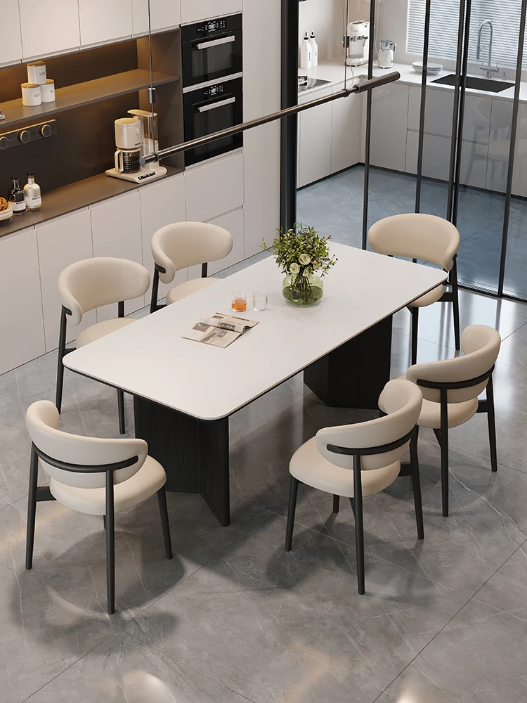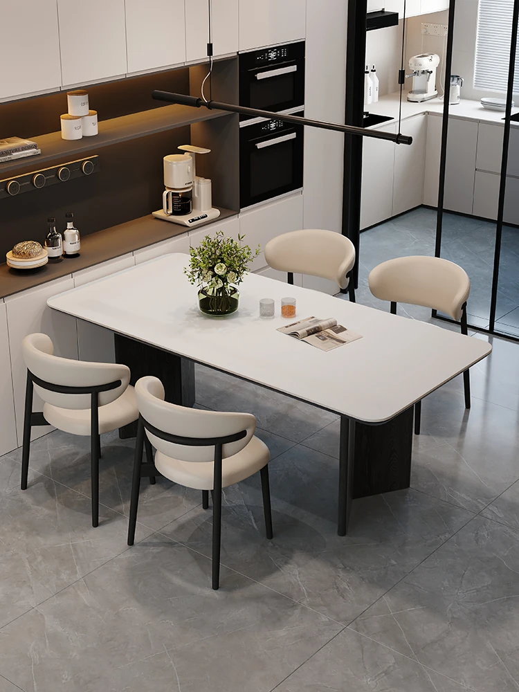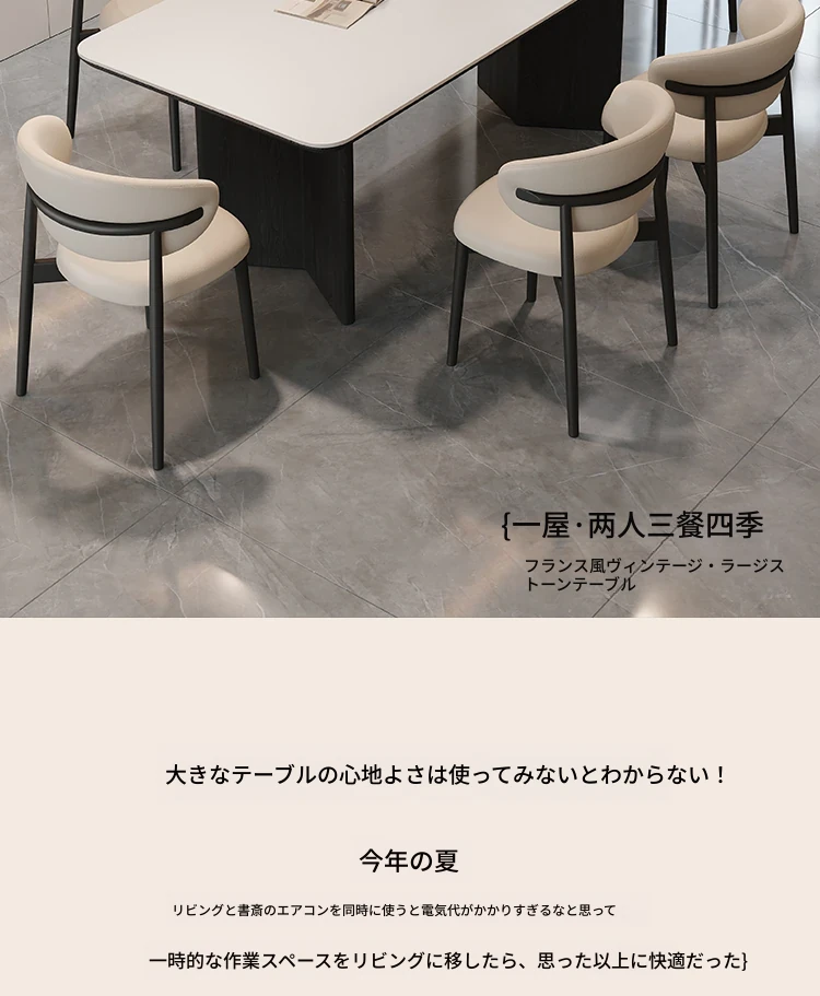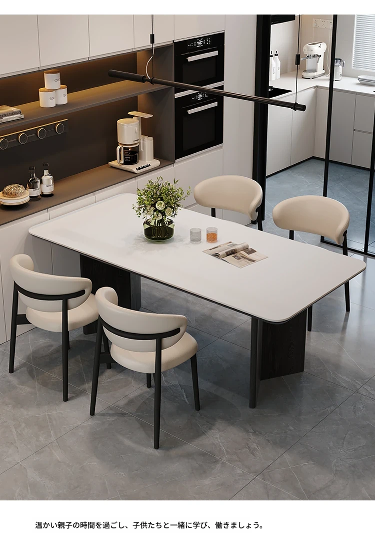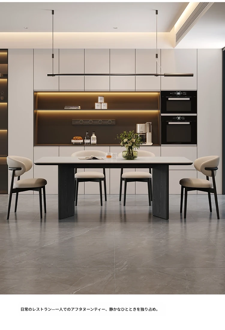 国補フランス風レトロ長方形無垢材ロックプレートダイニングテーブル・モダンミニマリストデザイン・小型住宅に最適な家庭用テーブル