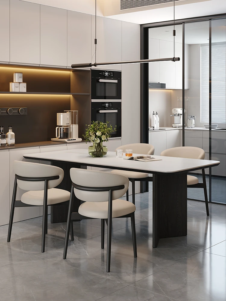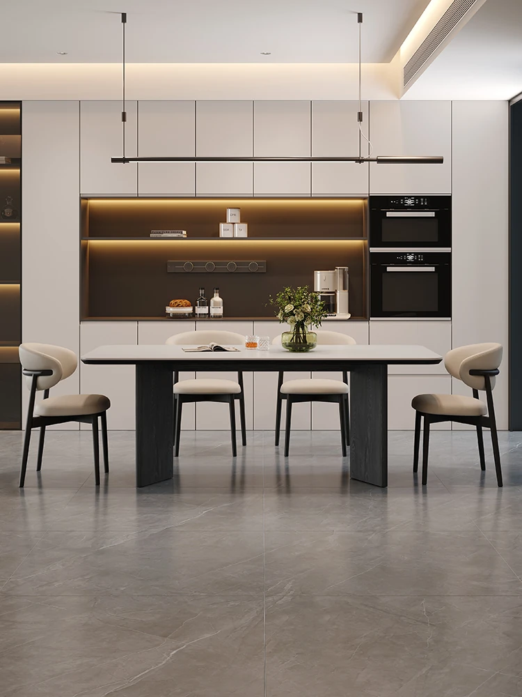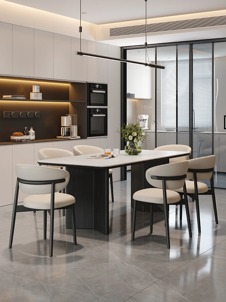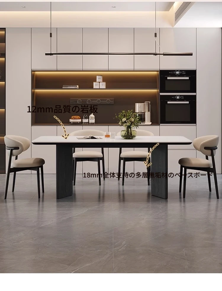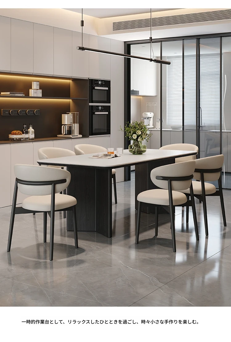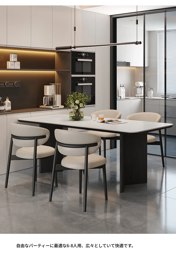 国補フランス風レトロ長方形無垢材ロックプレートダイニングテーブル・モダンミニマリストデザイン・小型住宅に最適な家庭用テーブル
