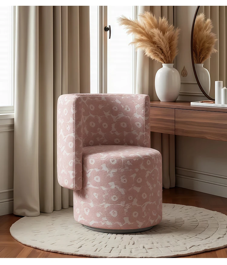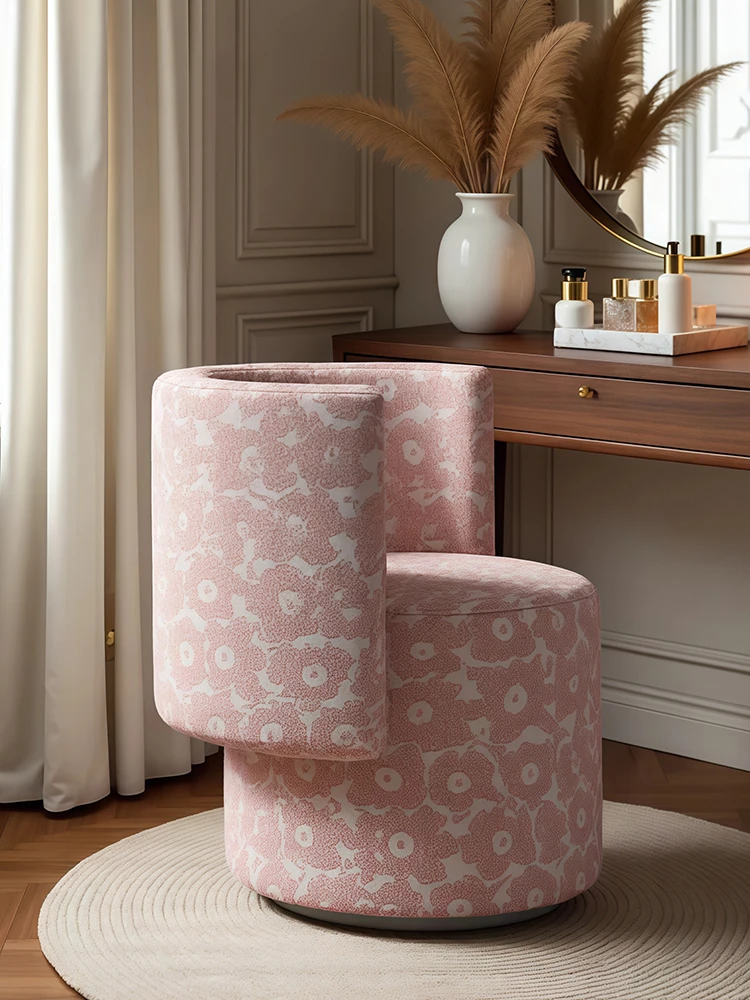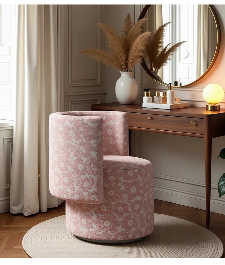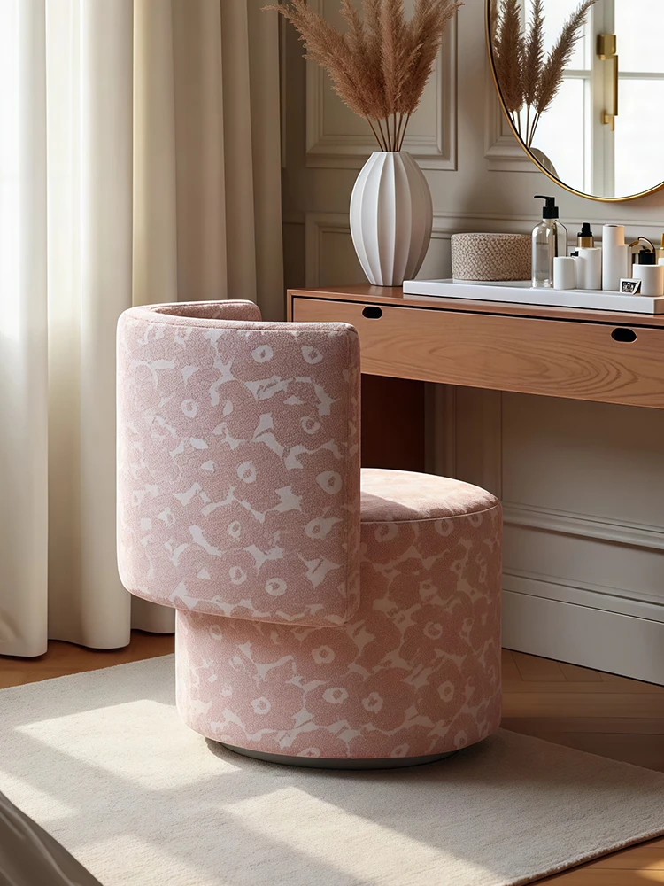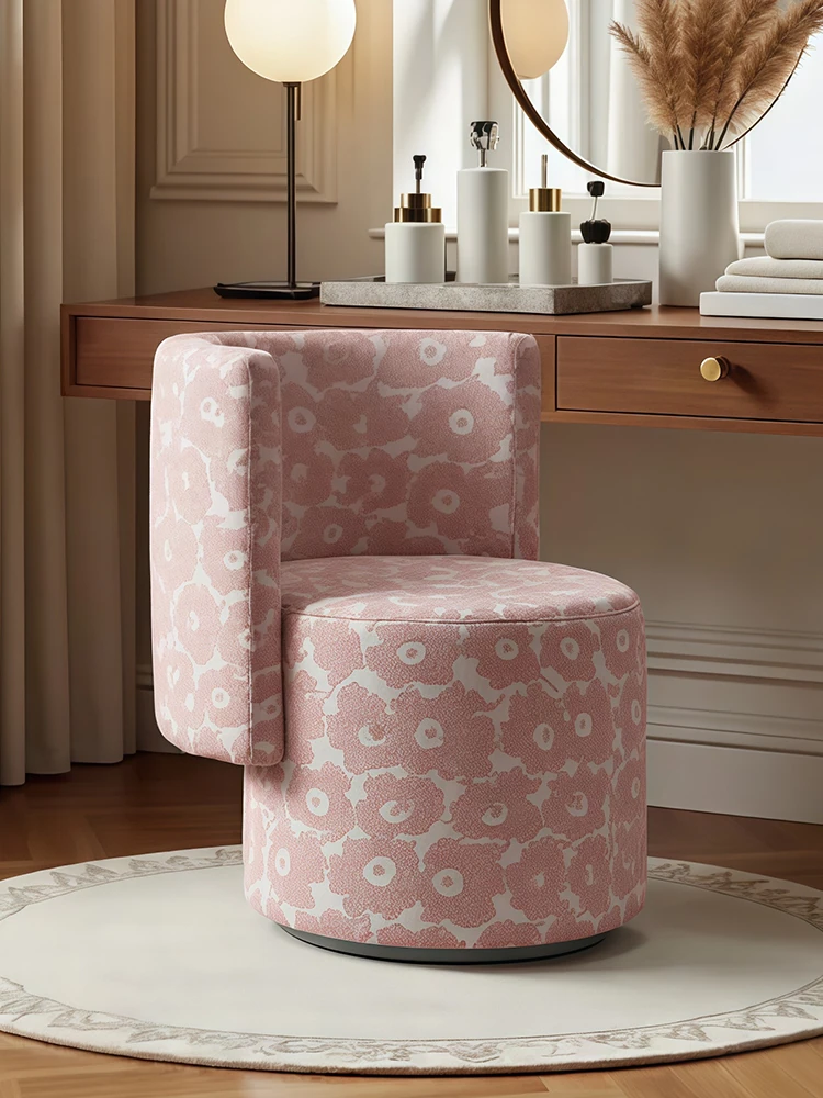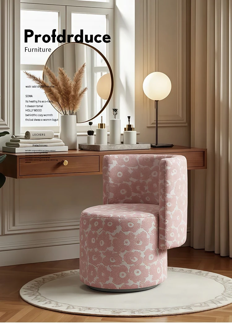 フレンチビンテージ化粧台チェア - 女の子の寝室にぴったり!回転式のピンクのプリンセス風化粧椅子で、毎日のメイクアップを特別なひとときに。おしゃれで可愛いデザインが魅力!