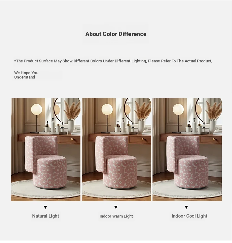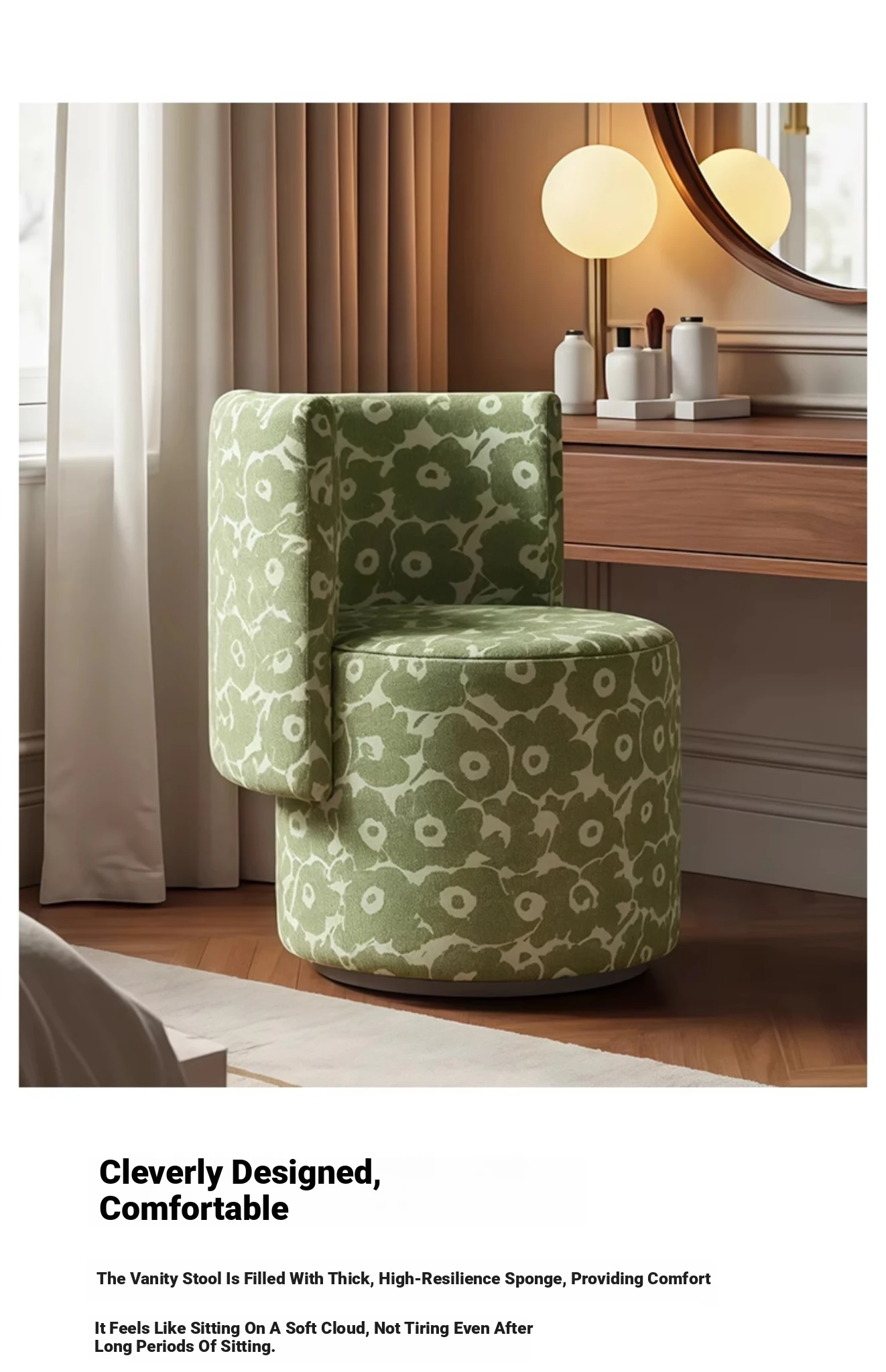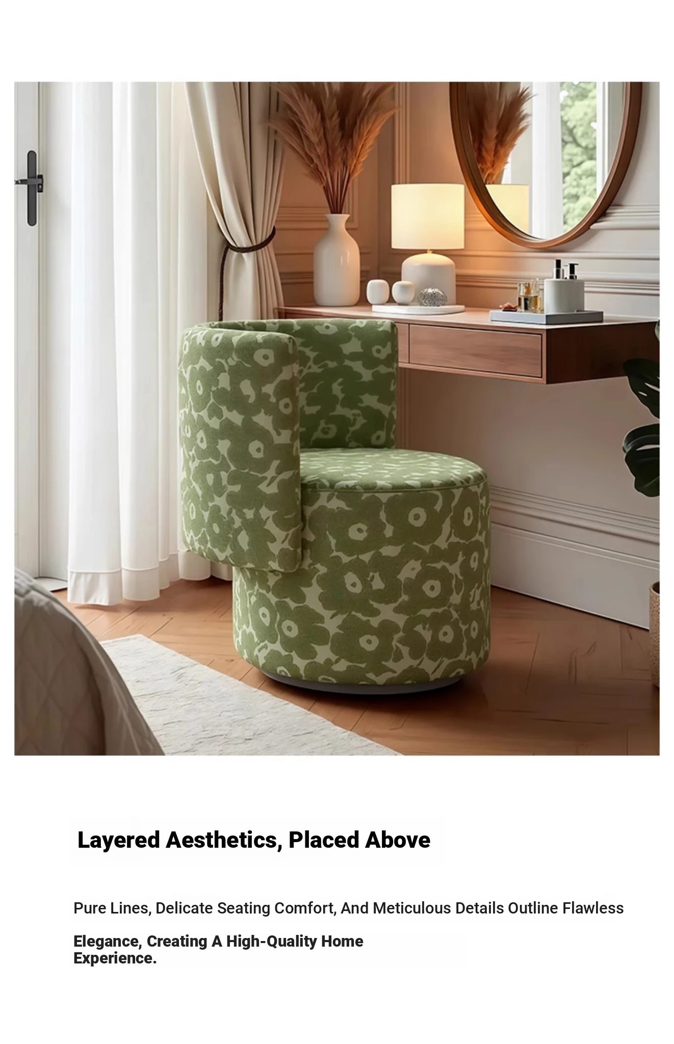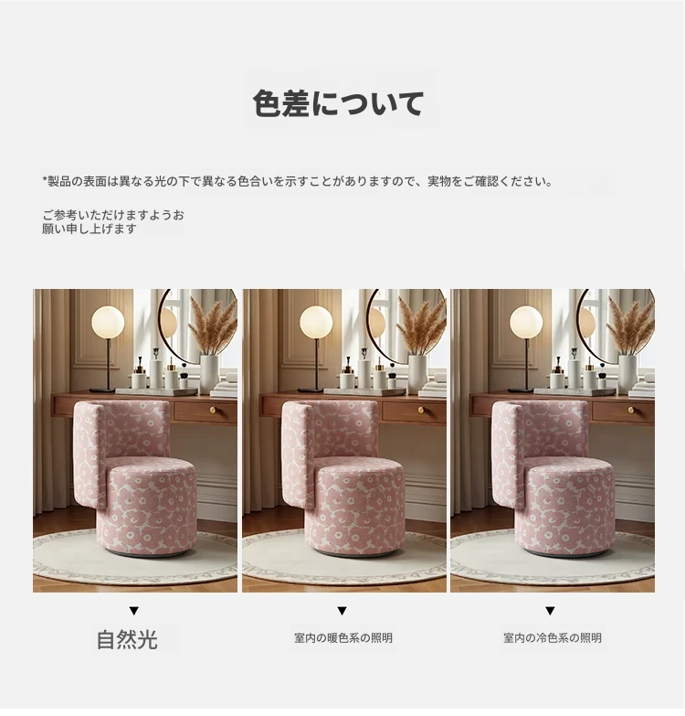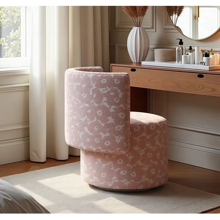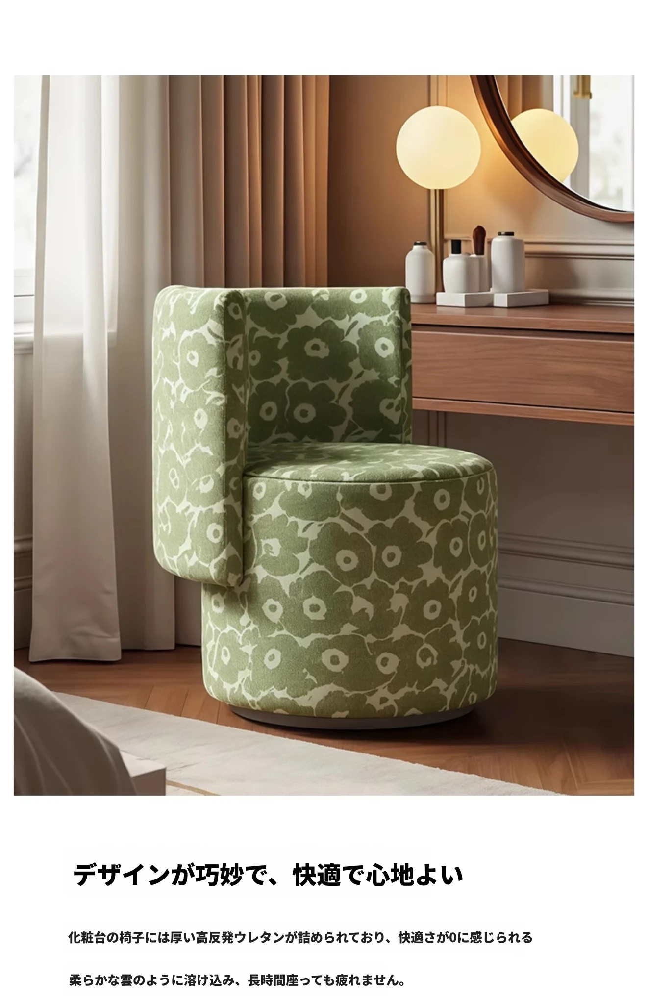 フレンチビンテージ化粧台チェア - 女の子の寝室にぴったり!回転式のピンクのプリンセス風化粧椅子で、毎日のメイクアップを特別なひとときに。おしゃれで可愛いデザインが魅力!