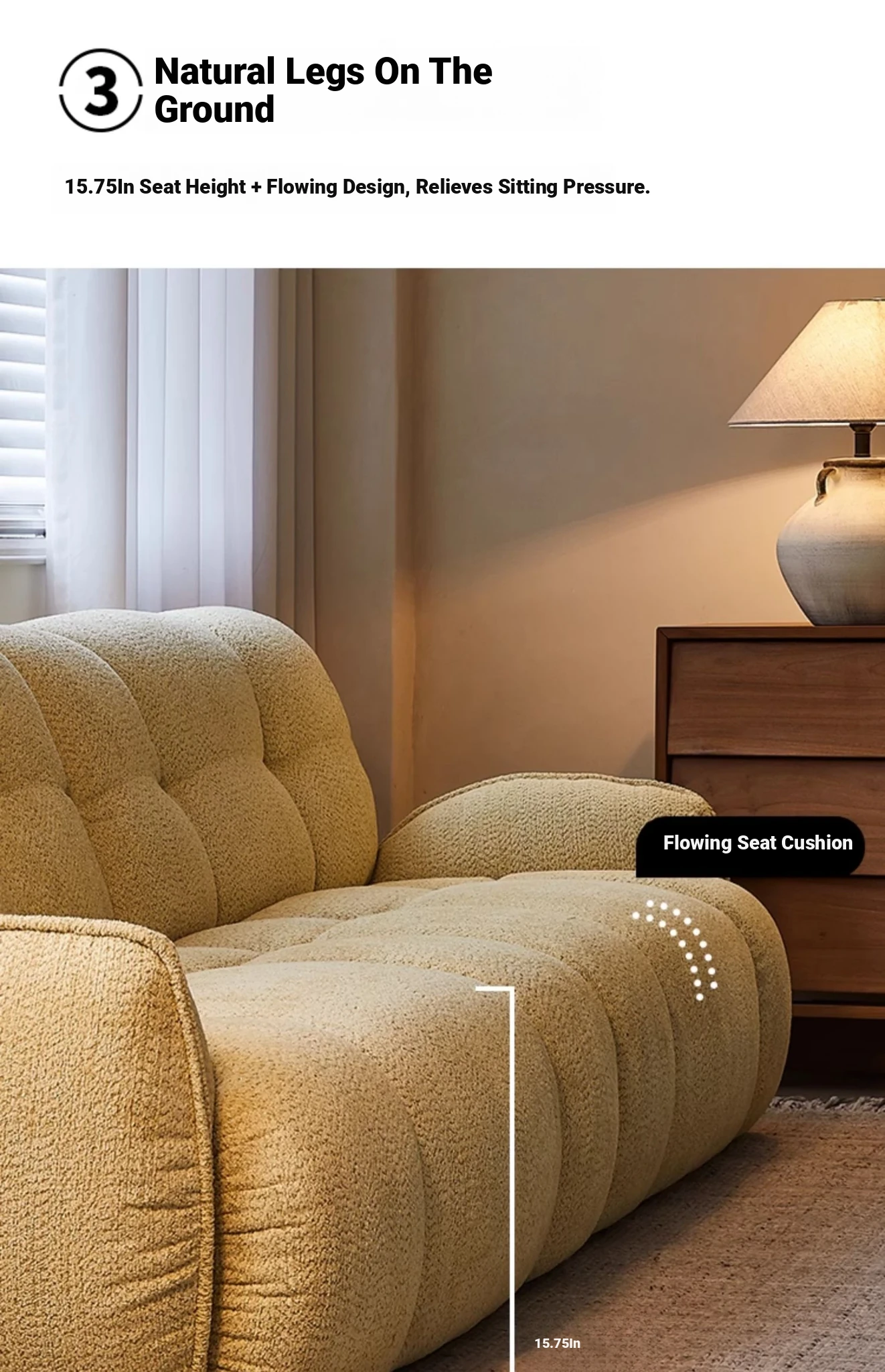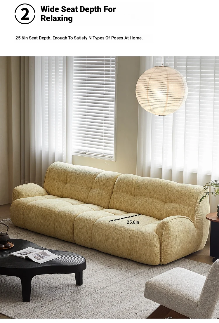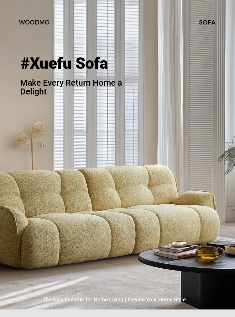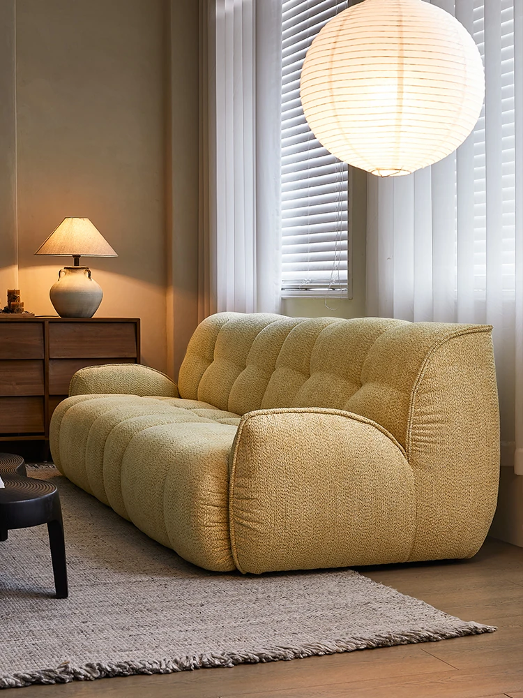 French-Style Minimalist Cloud Cream Fabric Sofa for Small Spaces - Chic Chenille Wabi-Sabi Design, Perfect for Living Rooms