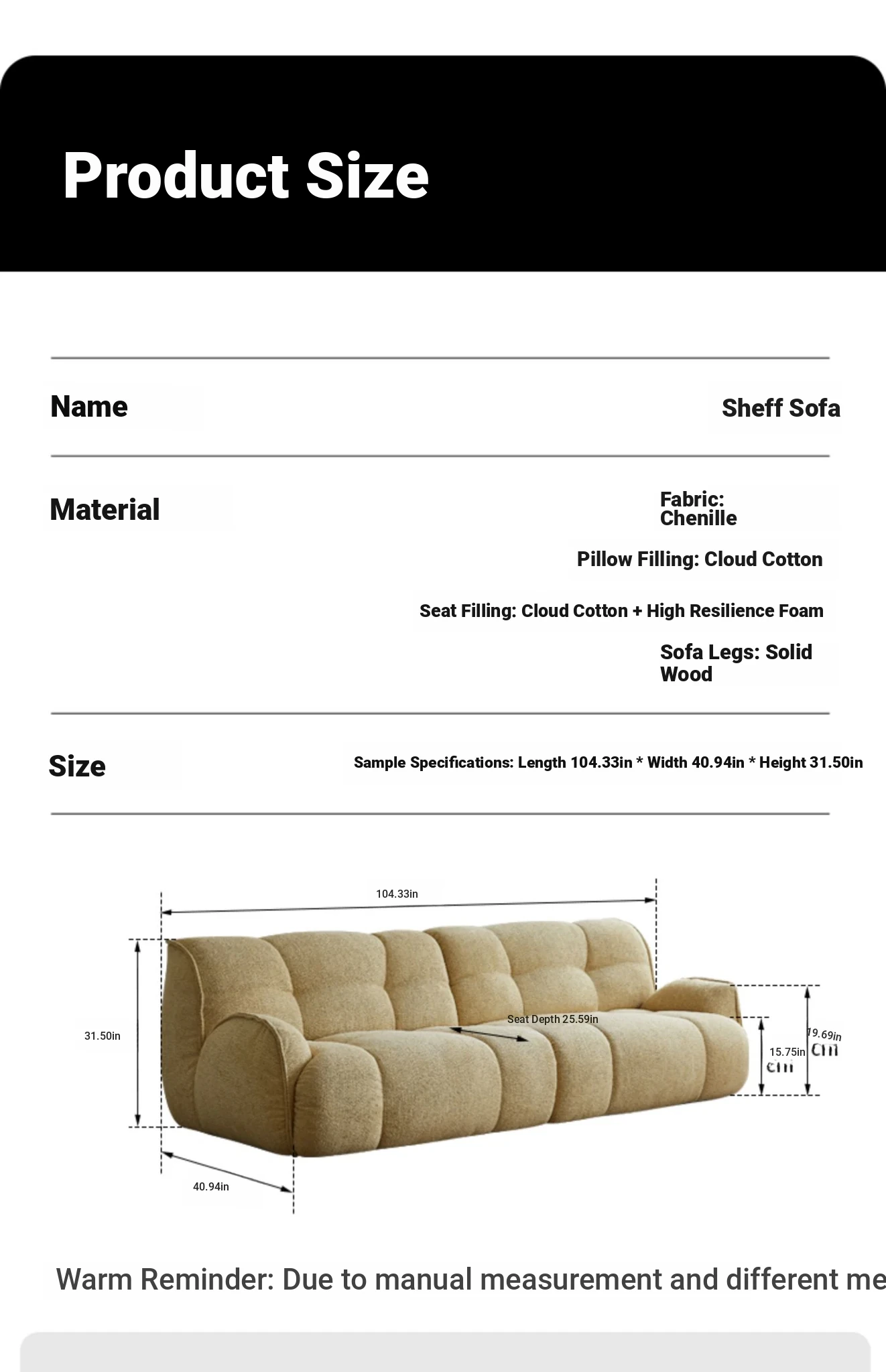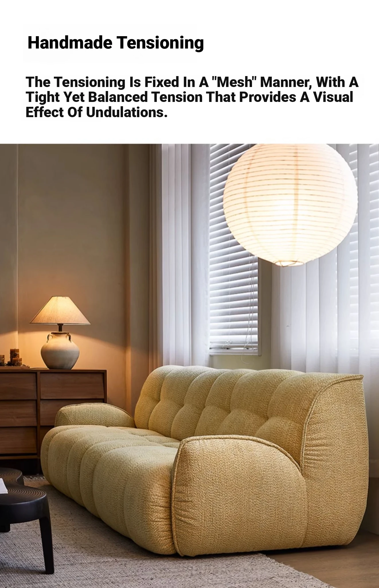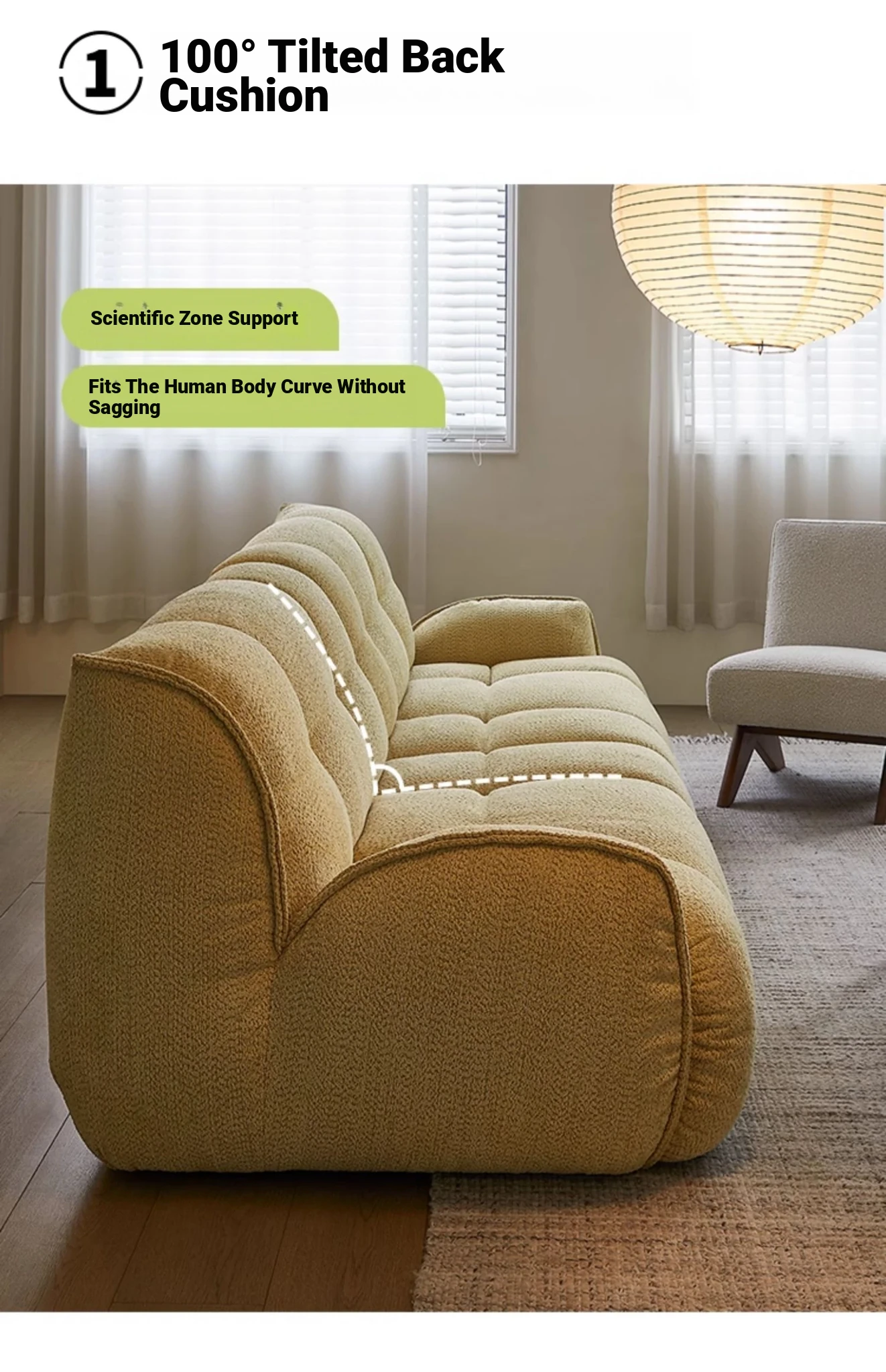 French-Style Minimalist Cloud Cream Fabric Sofa for Small Spaces - Chic Chenille Wabi-Sabi Design, Perfect for Living Rooms