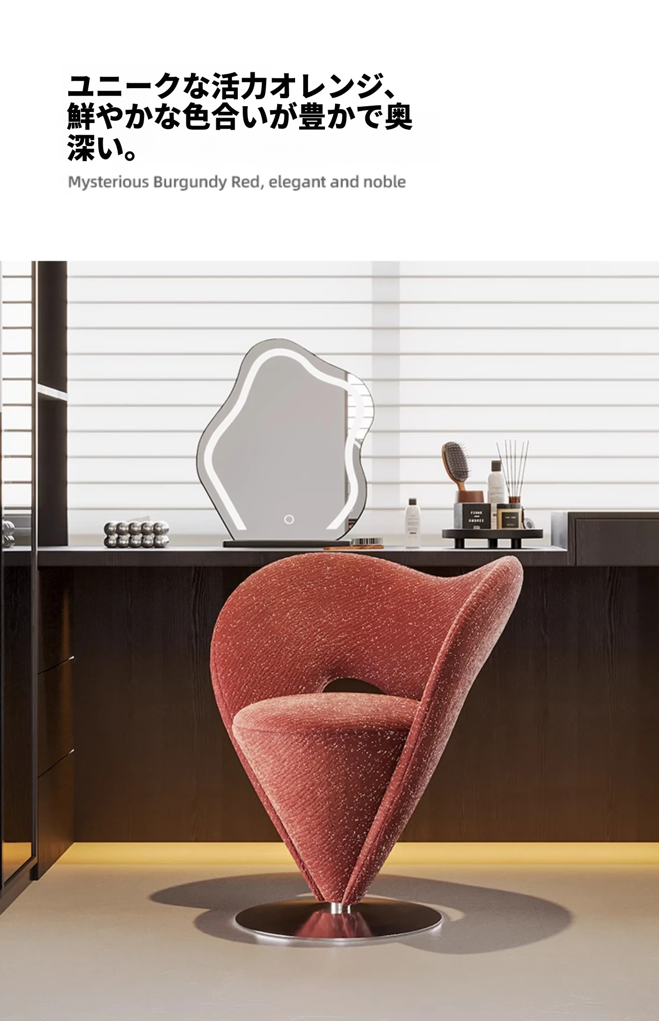 ワインレッドドレッシングチェア(360°回転)