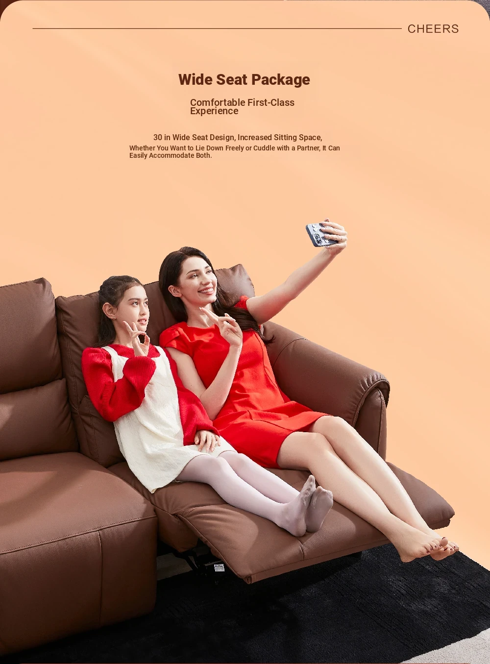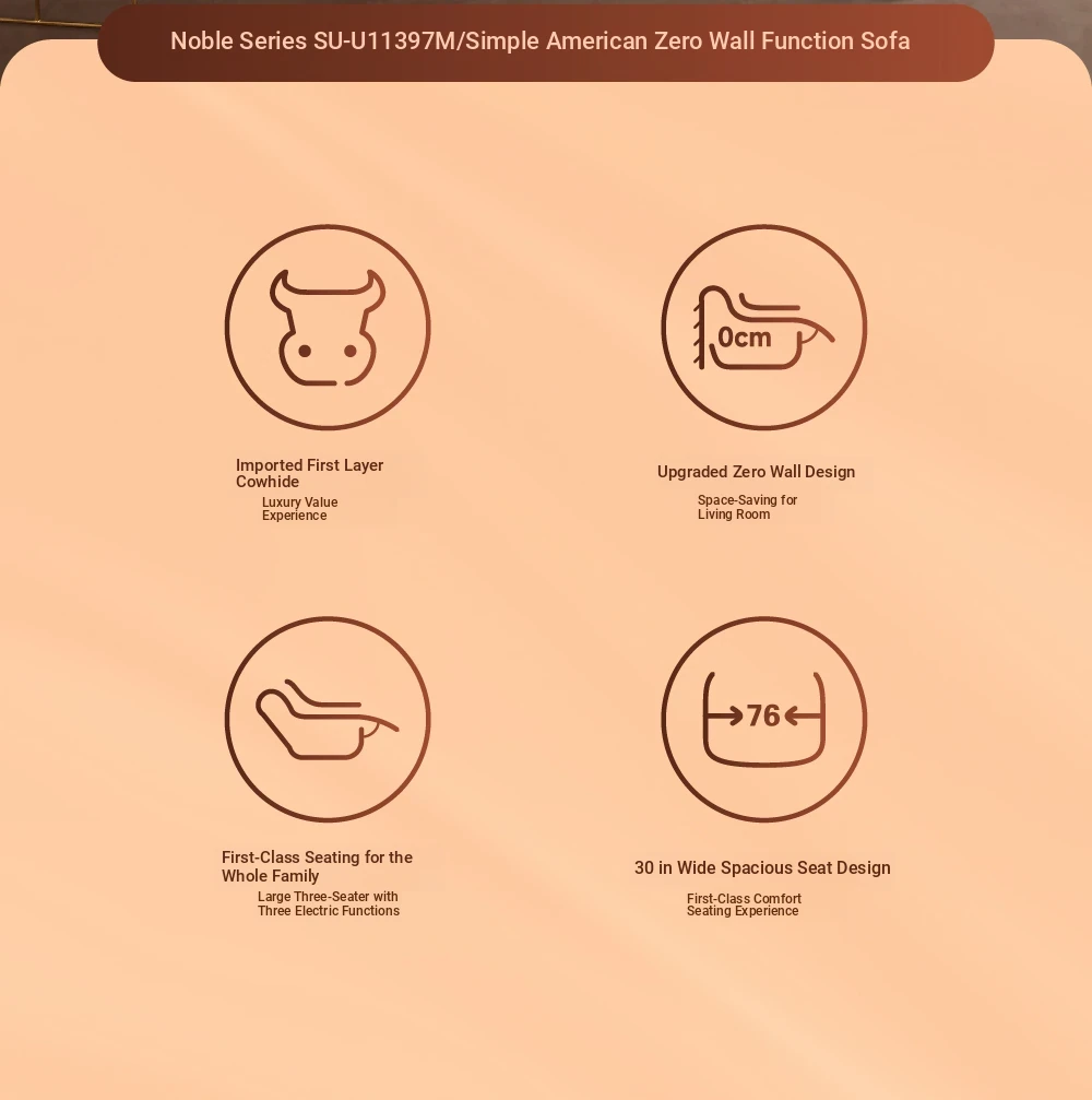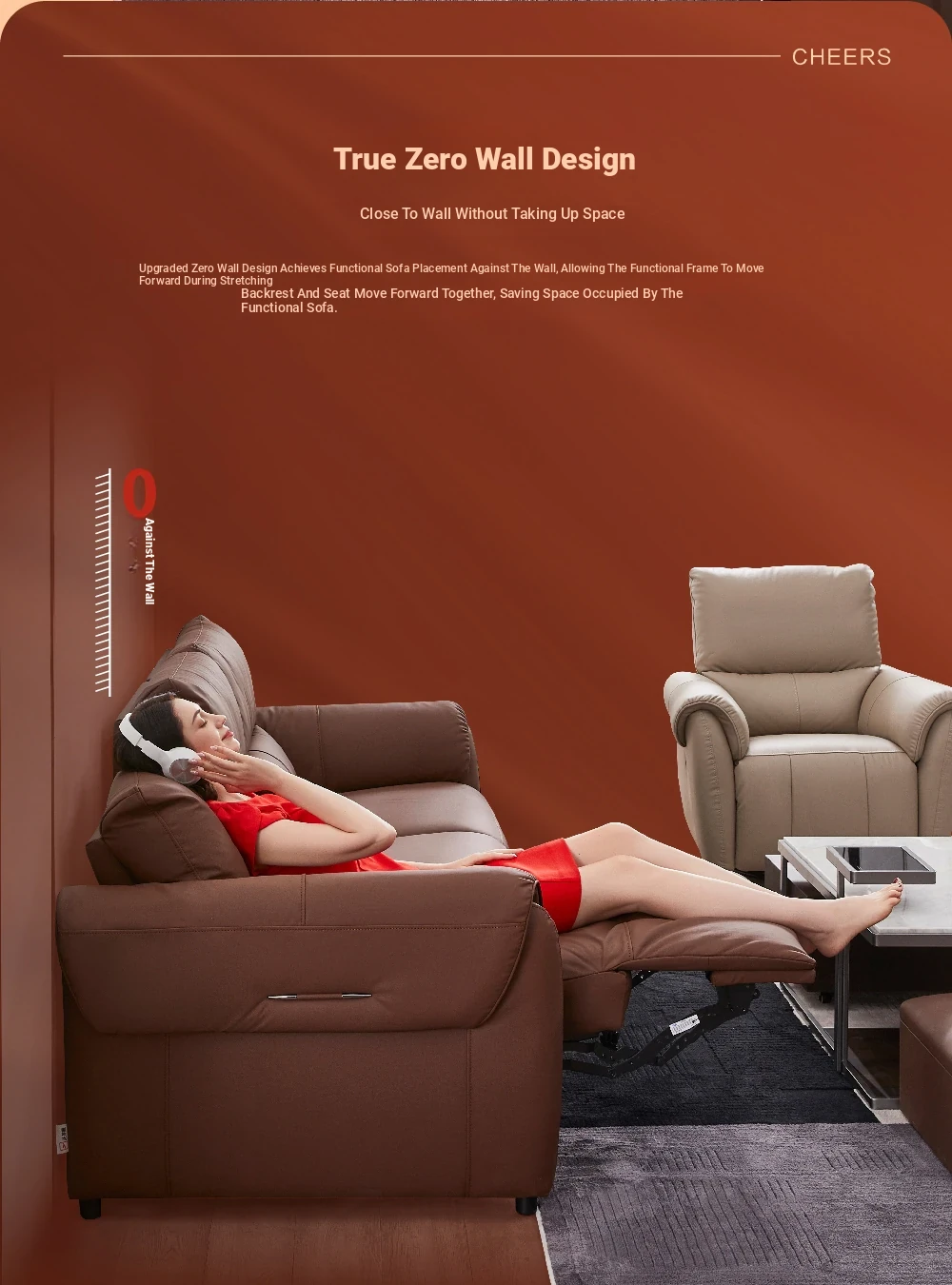 【Luxury Comfort】ZhiHuaShi First-Class Minimalist American Style Genuine Leather Electric Sofa - Wall-Hugging Design, Model 11397