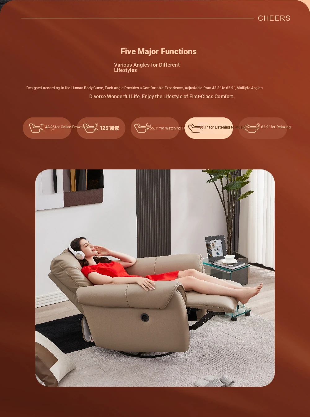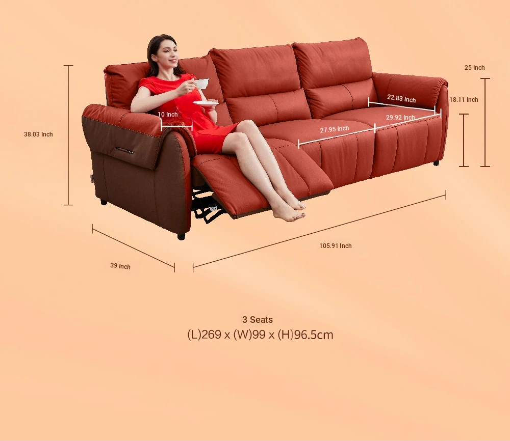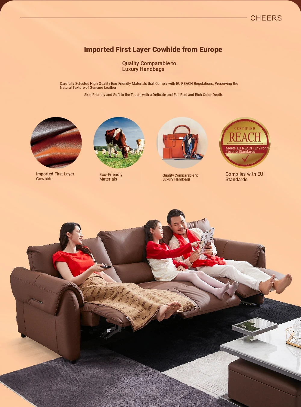 【Luxury Comfort】ZhiHuaShi First-Class Minimalist American Style Genuine Leather Electric Sofa - Wall-Hugging Design, Model 11397