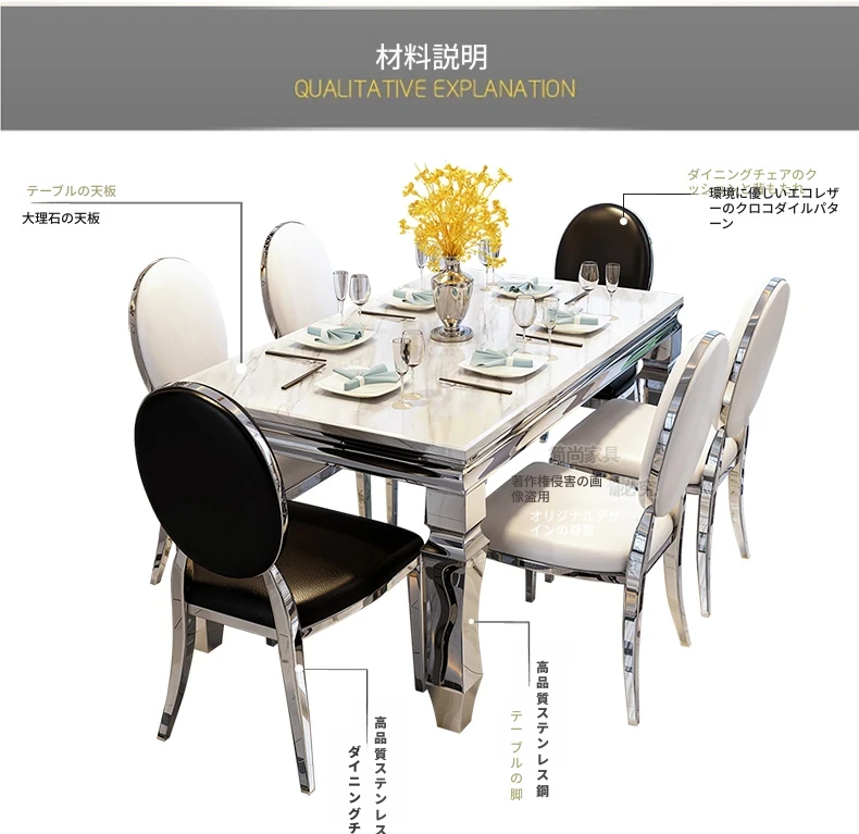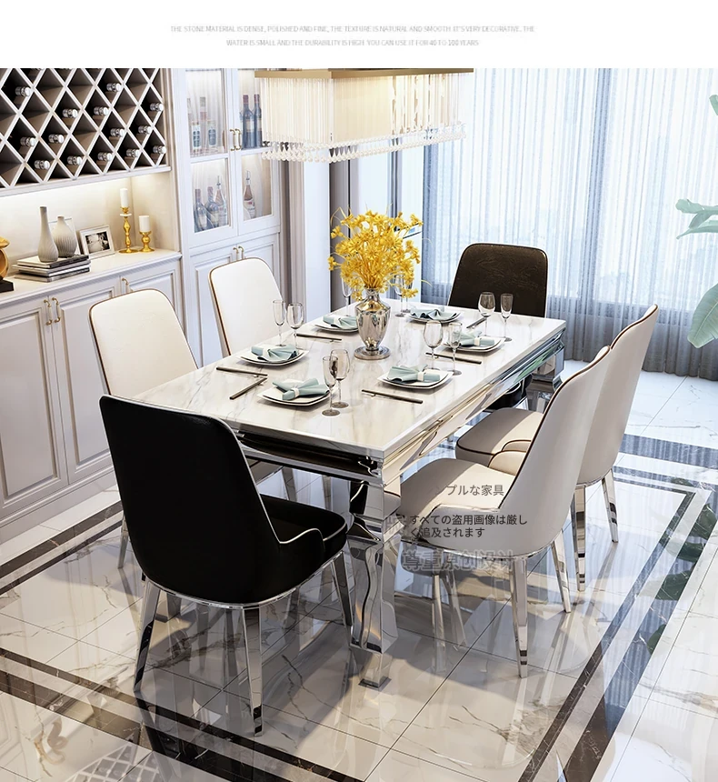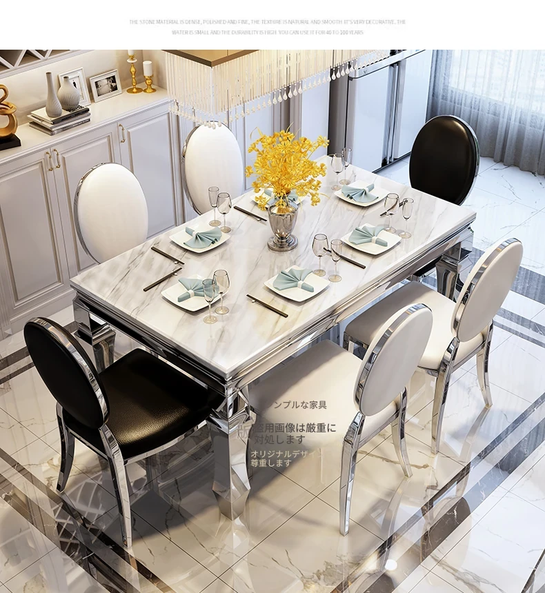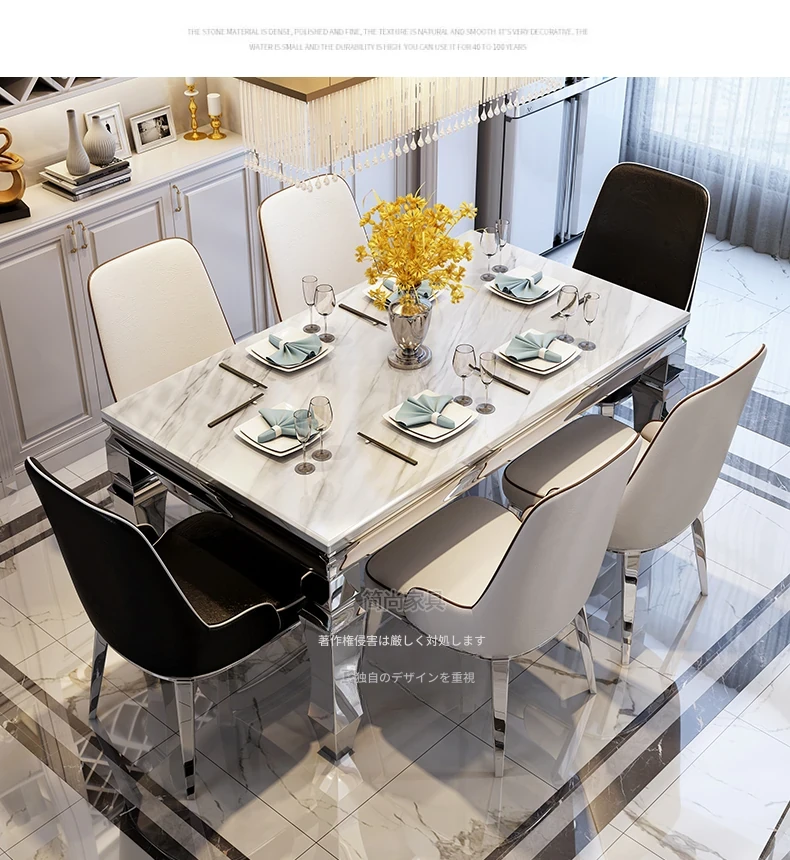 モダンでシンプルな軽奢感漂う岩板ダイニングテーブル!小さな家にもぴったりな長方形の大理石テーブルと椅子のセットで、食事のひとときを特別に演出します。家族や友人との楽しい時間をお楽しみください!