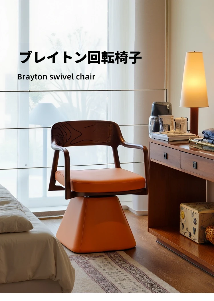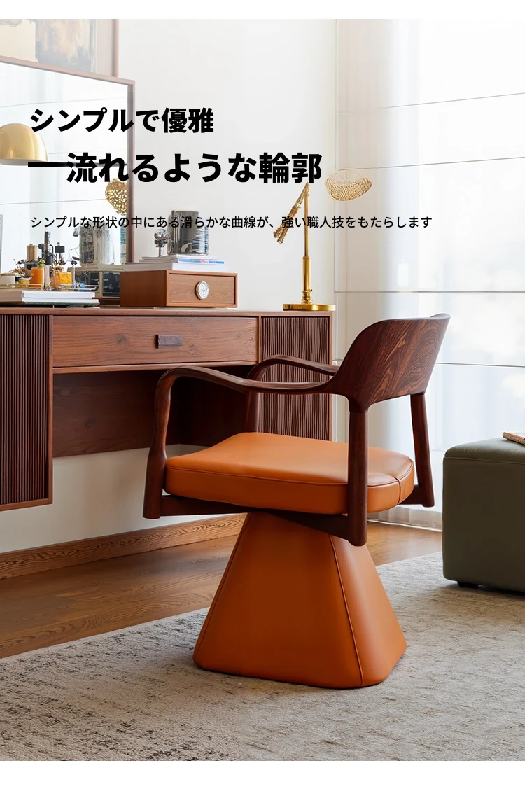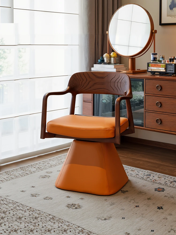 新中式スタイルの回転式ドレッシングチェア - 宋氏美学を取り入れたアンティーク風デザイン、実木製の背もたれが魅力!おしゃれで快適なメイクアップタイムを演出します!