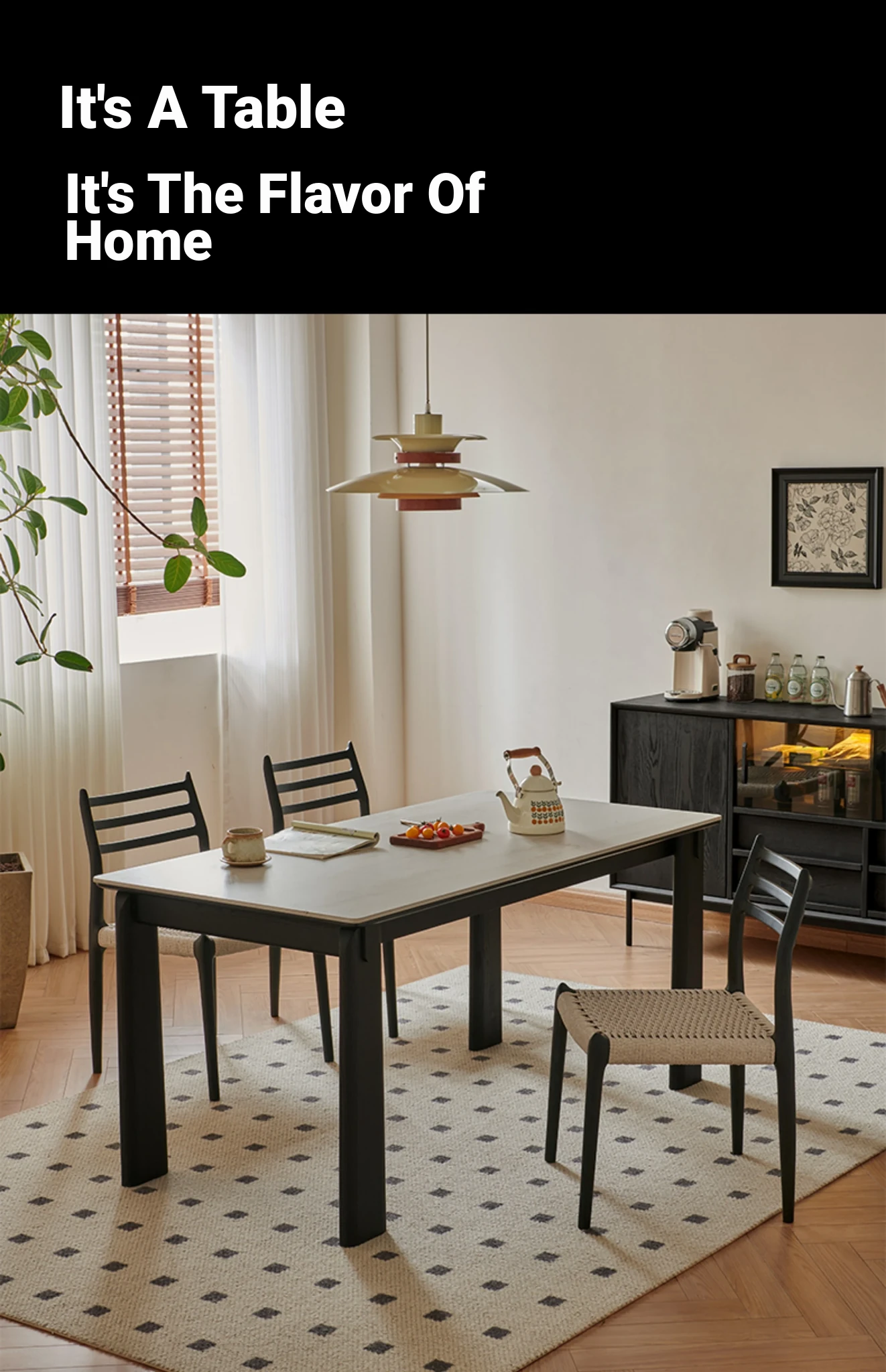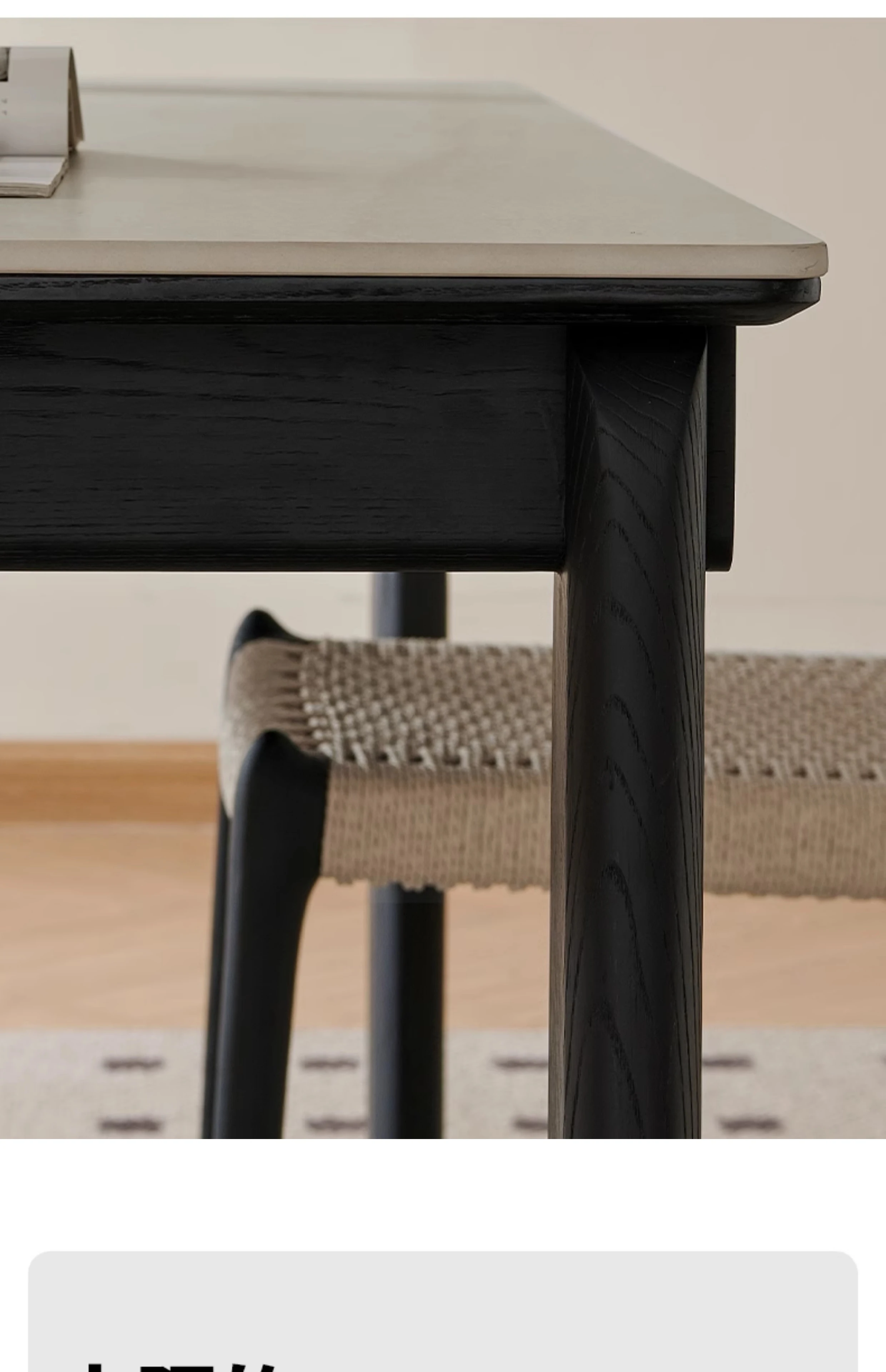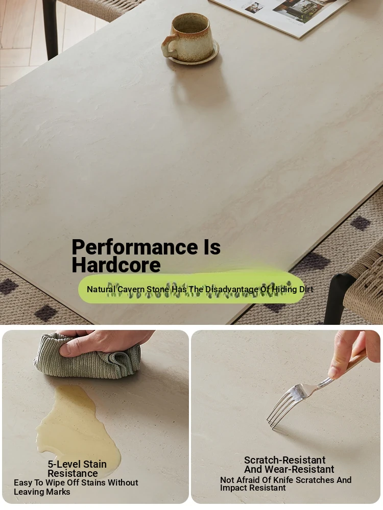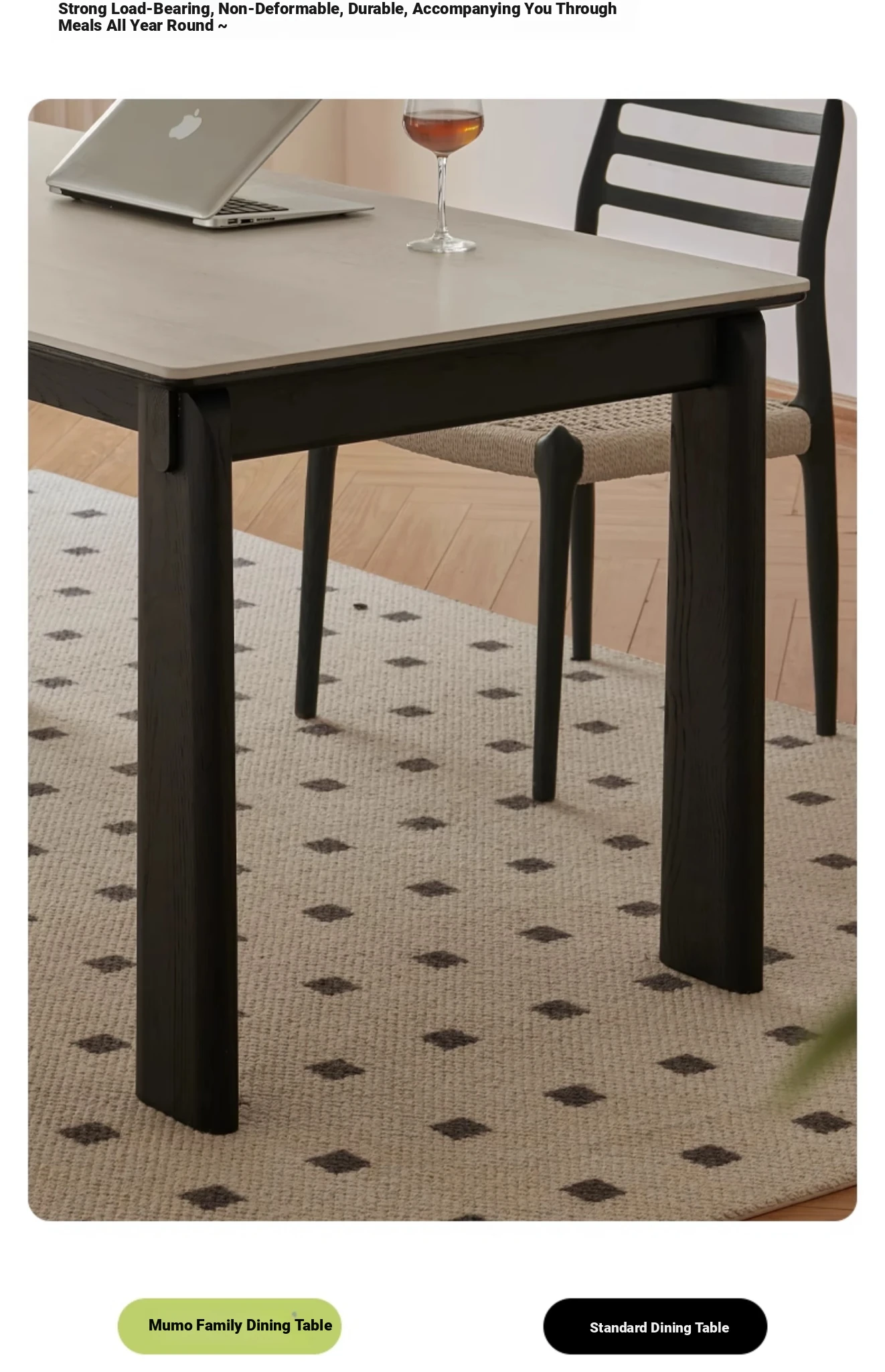 Parisian Style Black Solid Wood Dining Table with Stone Top - Vintage Rectangular Table for Small Homes, Perfect for Cozy Dining Spaces