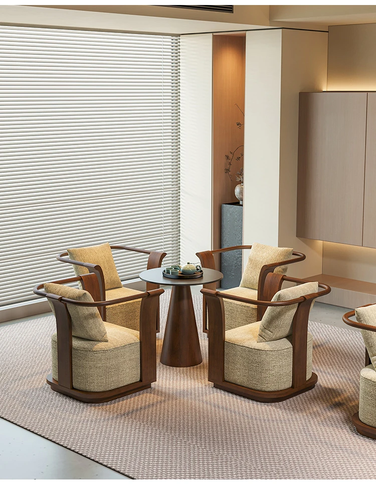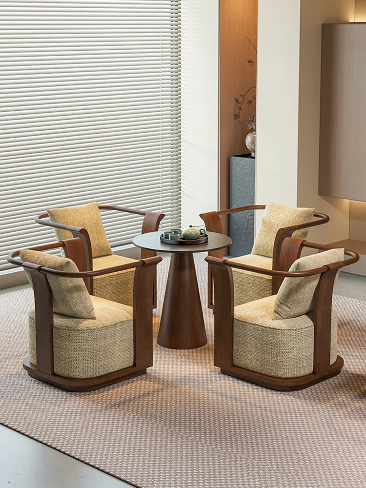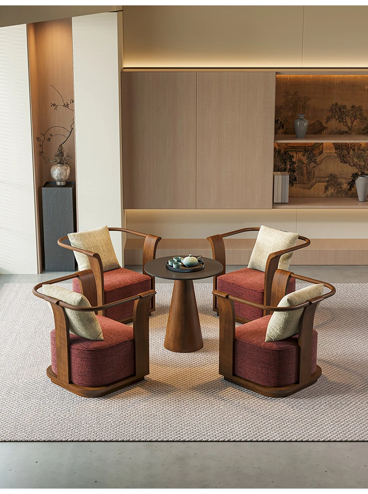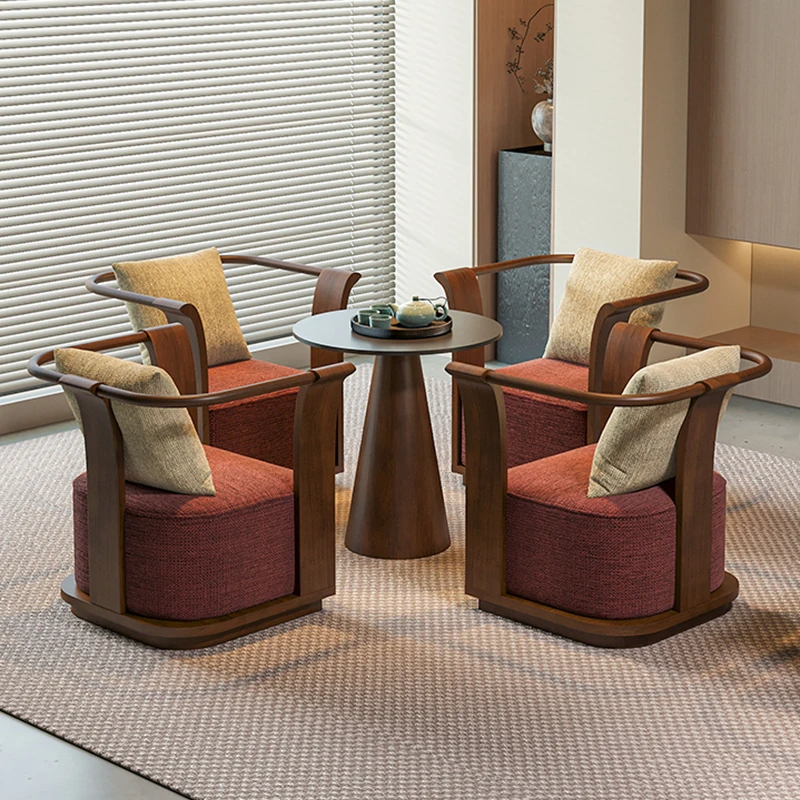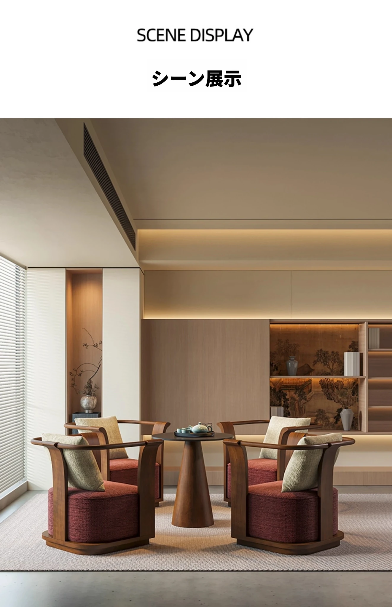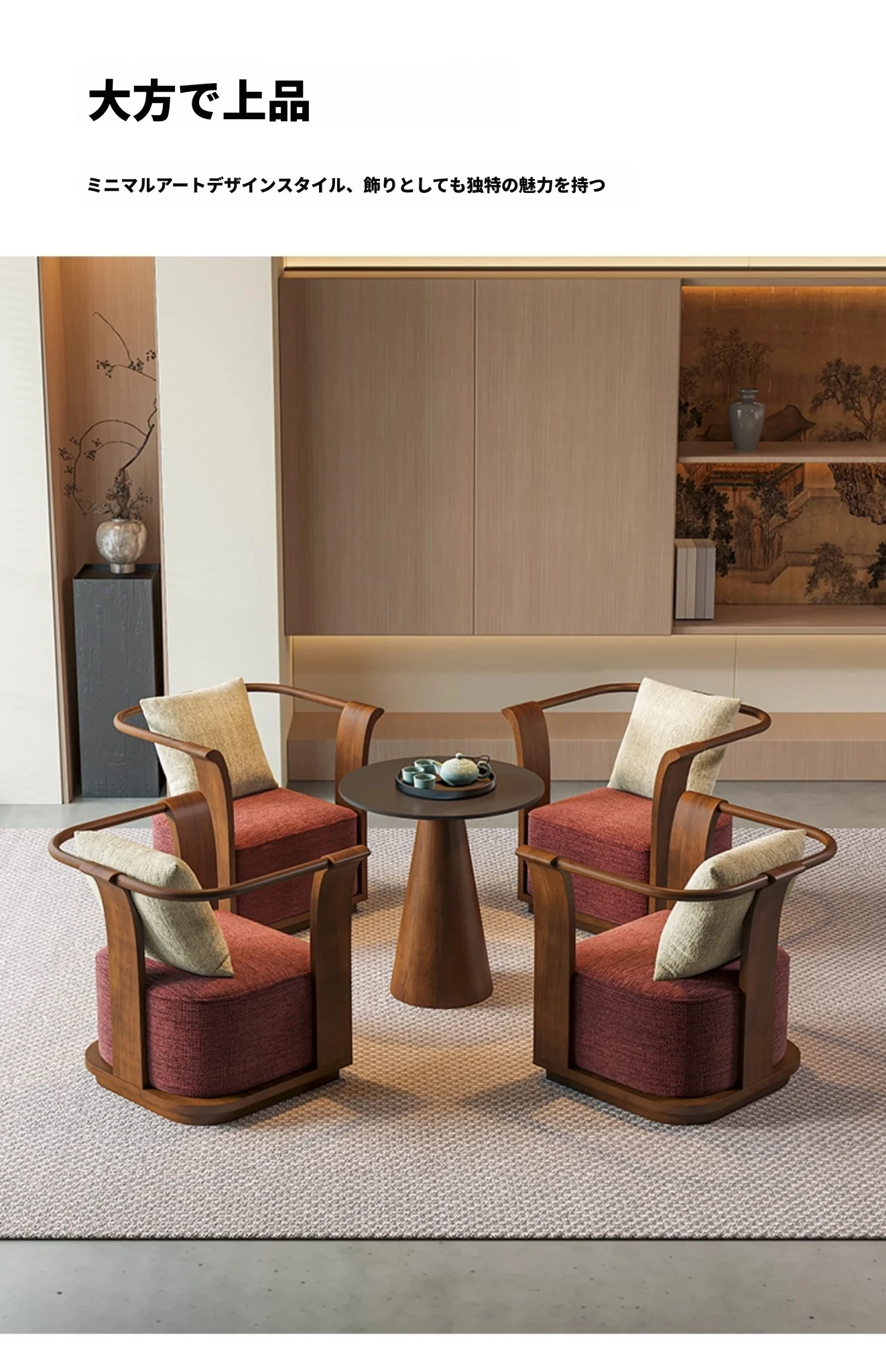 宋氏美学の無垢材使用!新中式スタイルの洽談テーブル&チェアセット。ホテルや販売所、会議室に最適な一卓四椅で、上質なくつろぎ空間を演出。おしゃれで機能的なデザインで、ビジネスシーンに最適!
