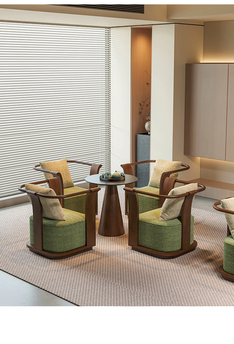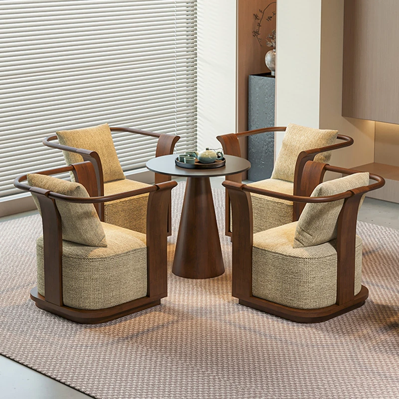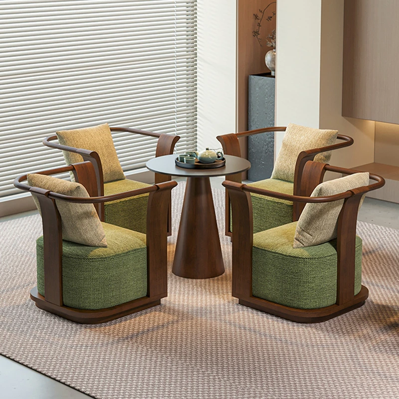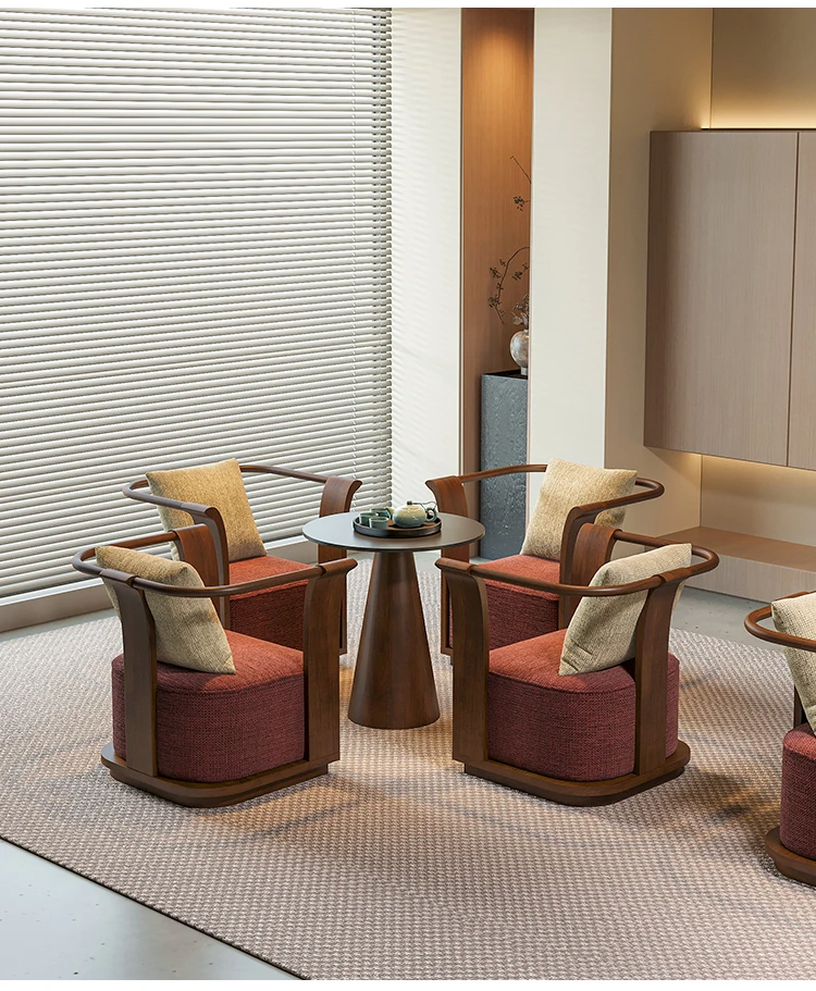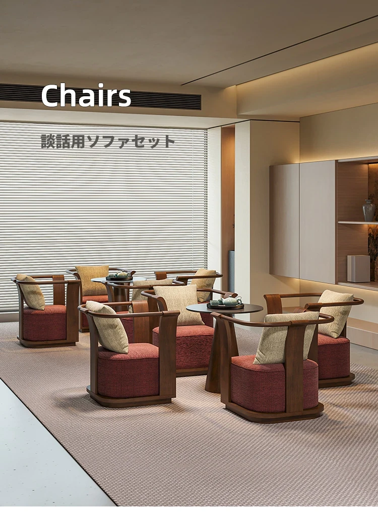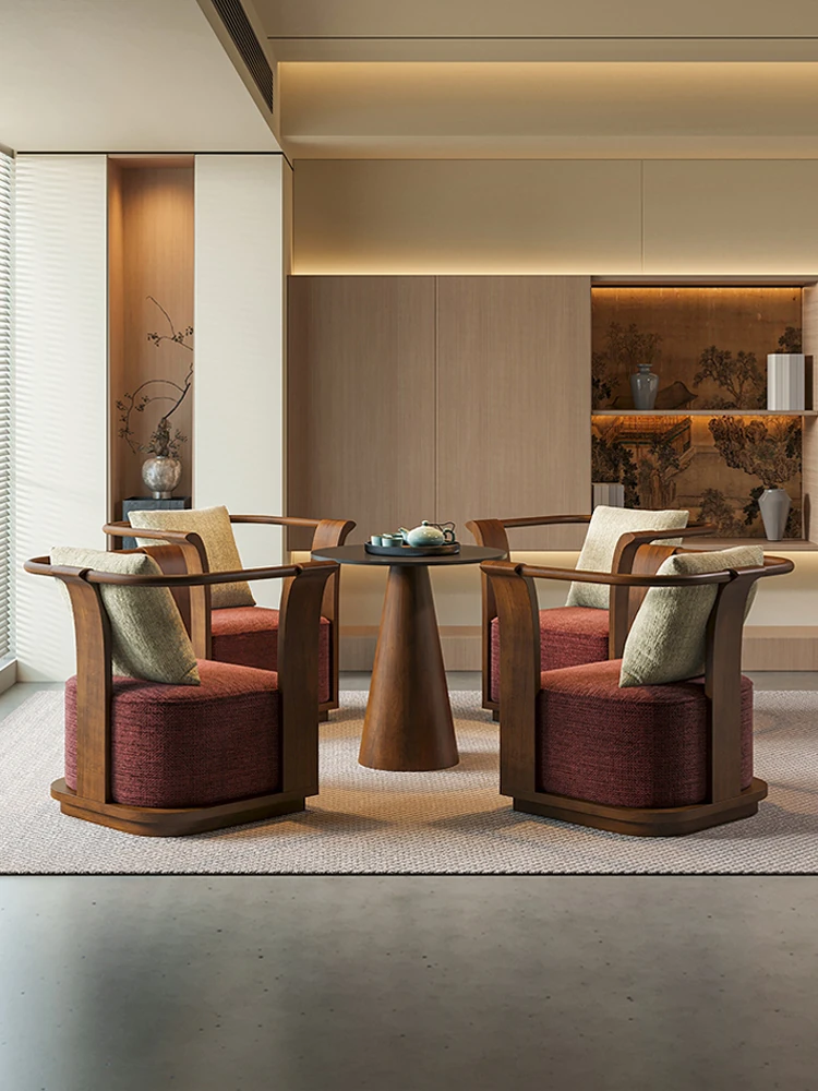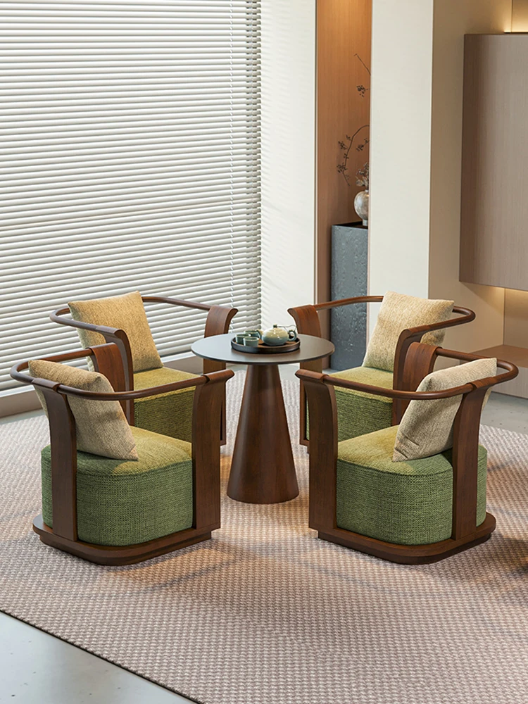 宋氏美学の無垢材使用!新中式スタイルの洽談テーブル&チェアセット。ホテルや販売所、会議室に最適な一卓四椅で、上質なくつろぎ空間を演出。おしゃれで機能的なデザインで、ビジネスシーンに最適!