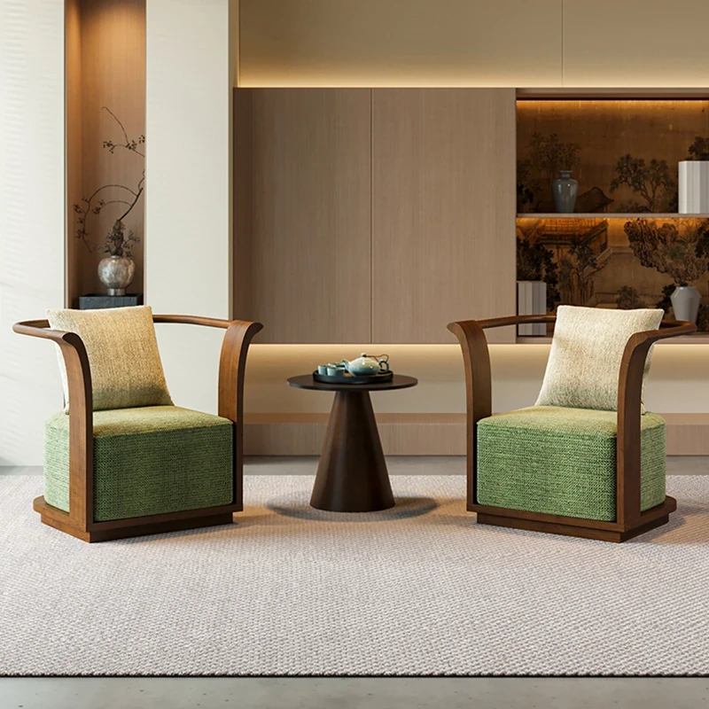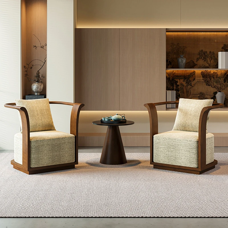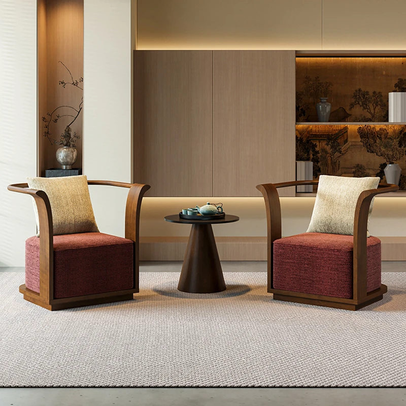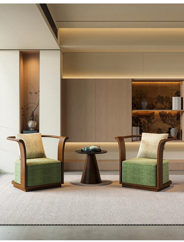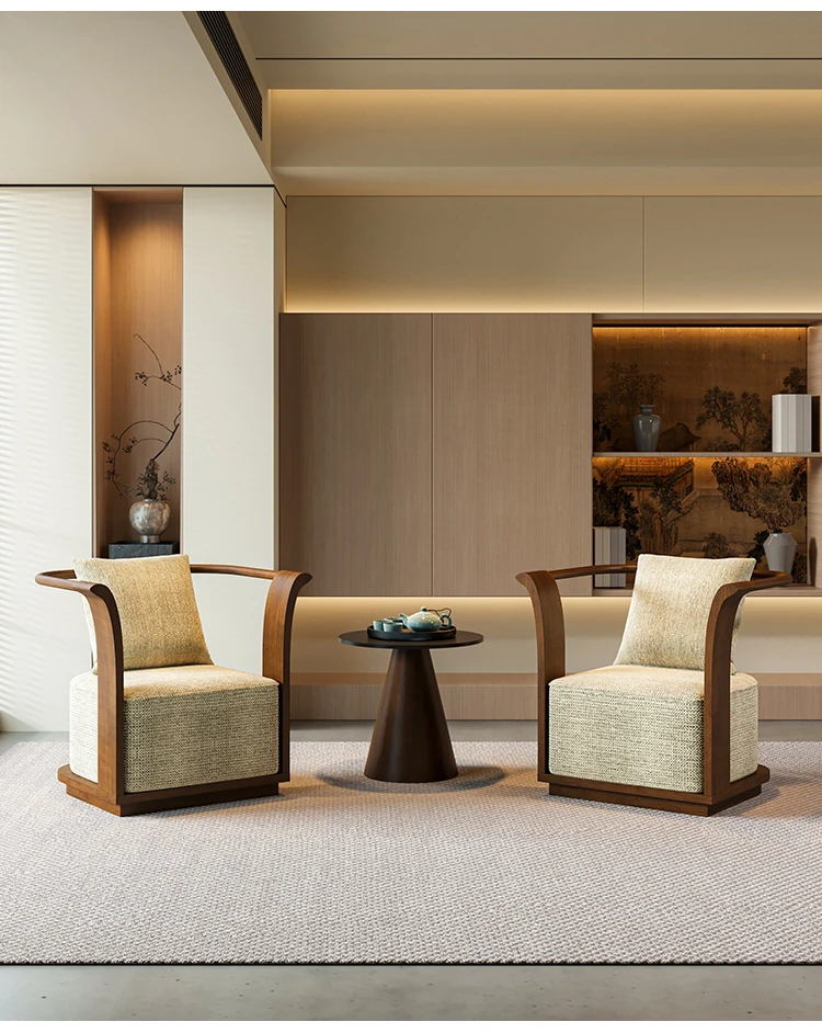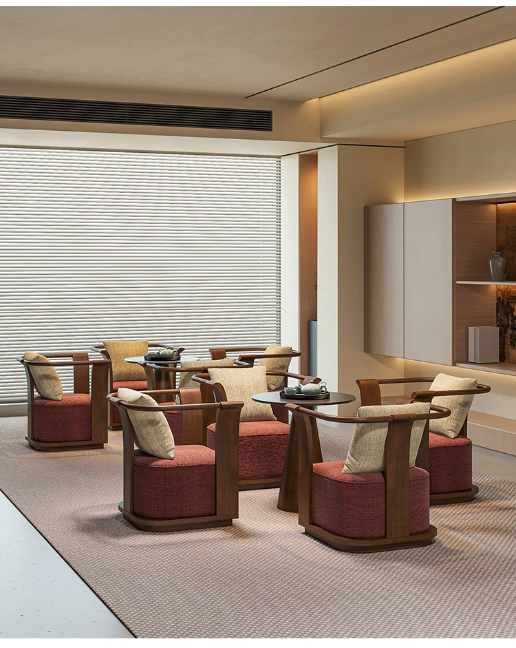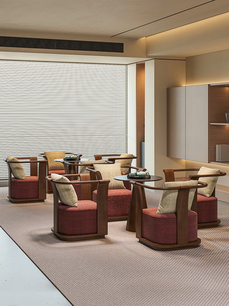 宋氏美学の無垢材使用!新中式スタイルの洽談テーブル&チェアセット。ホテルや販売所、会議室に最適な一卓四椅で、上質なくつろぎ空間を演出。おしゃれで機能的なデザインで、ビジネスシーンに最適!