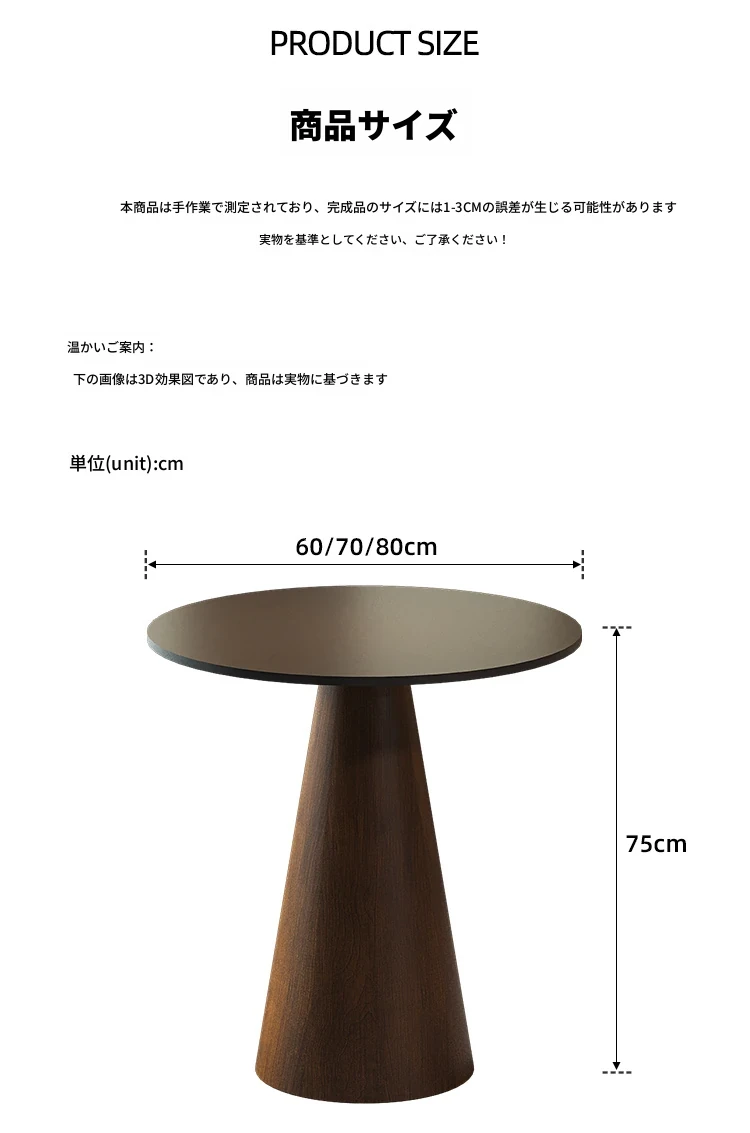 純黒の岩板会議テーブル:直径80*高さ75(木目転写スタンド)