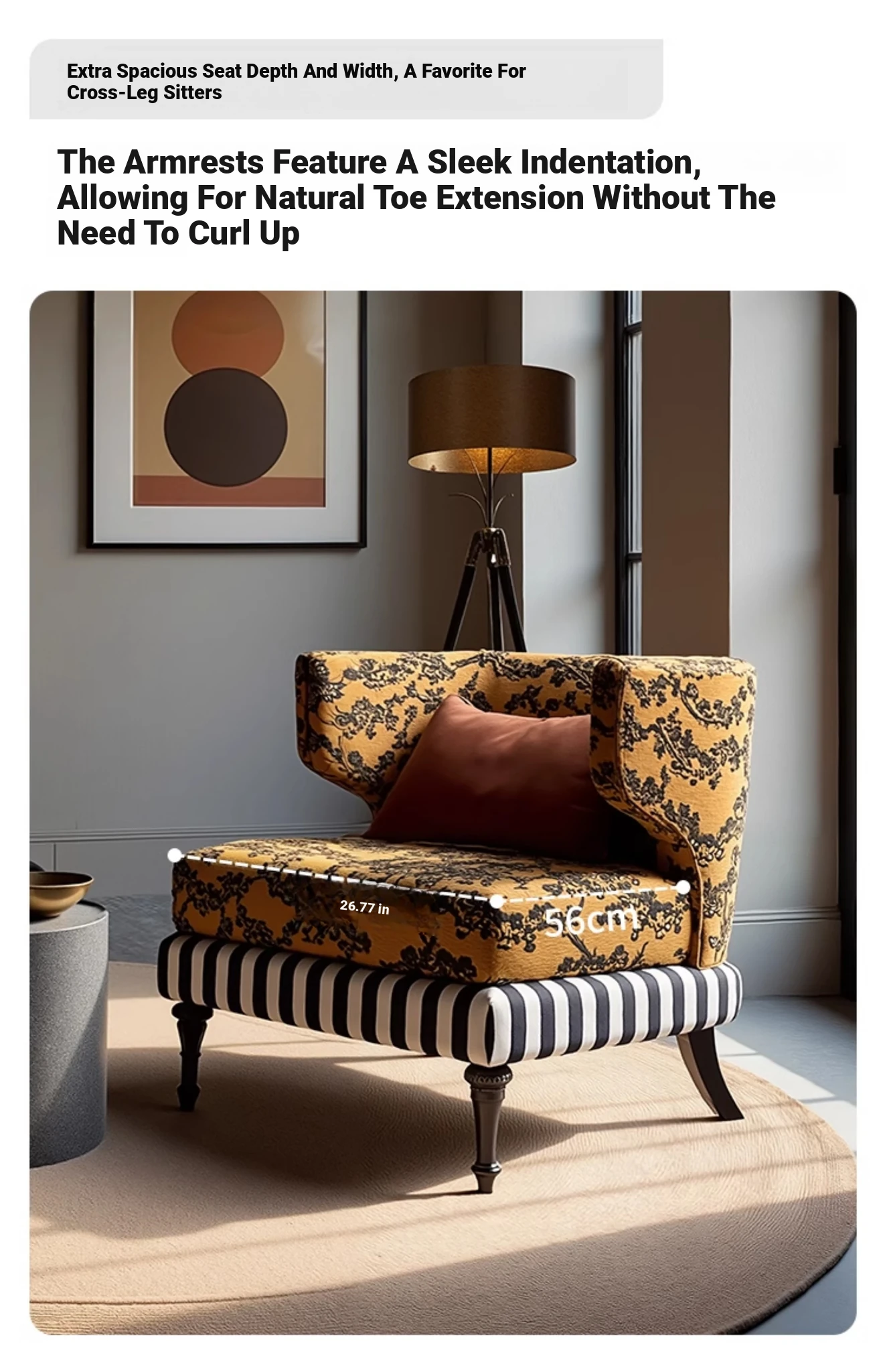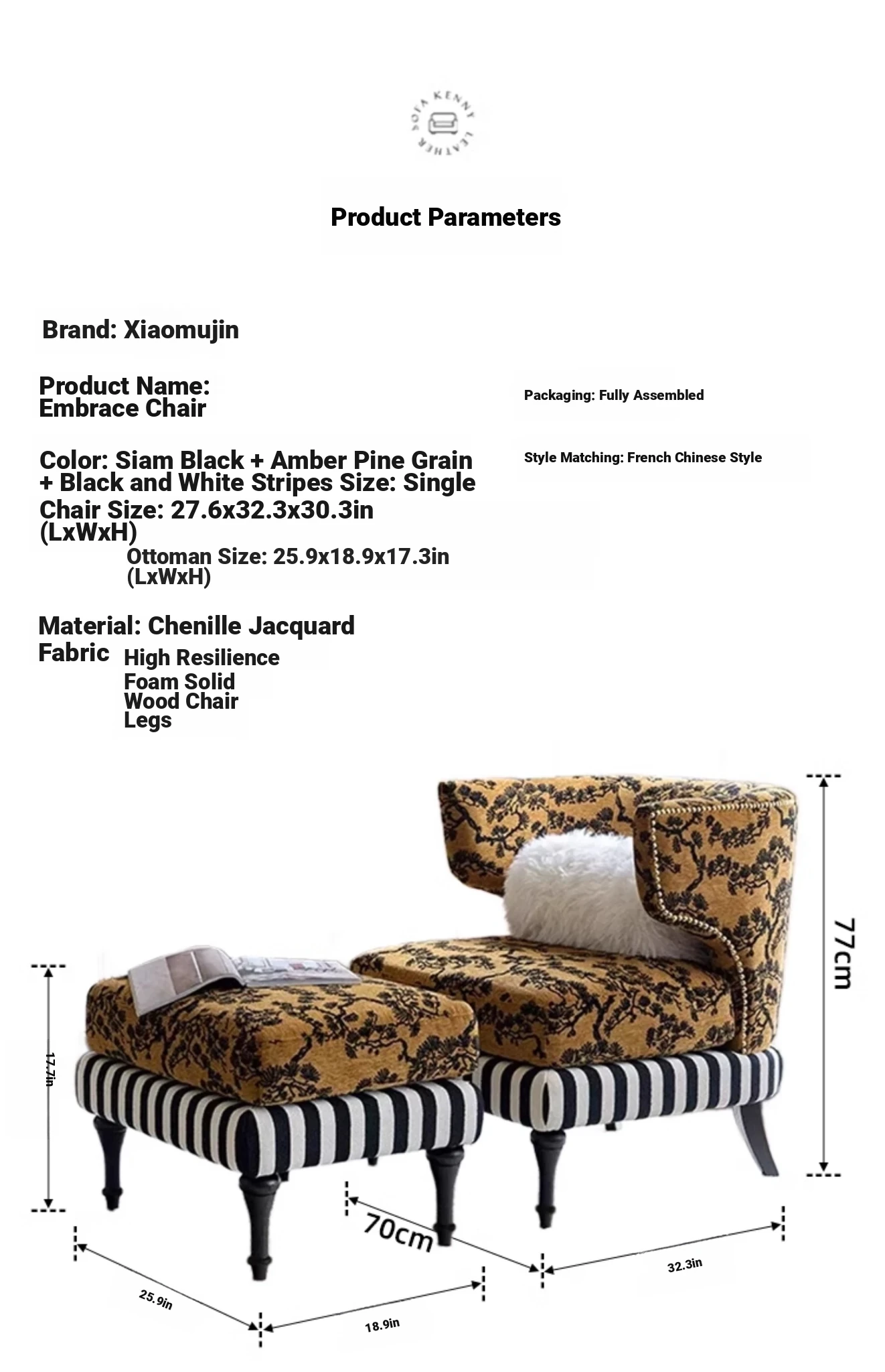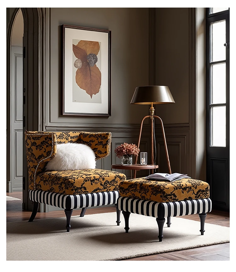 Vintage American Style Single Sofa Chair - Embrace Lounge Chair for Relaxation, Perfect for Small Spaces & French Antique Living Rooms - Tiger Chair