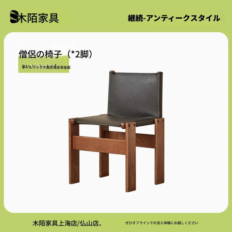 【僧侶椅子】オイルワックス風合成皮革のダイニングチェア2脚