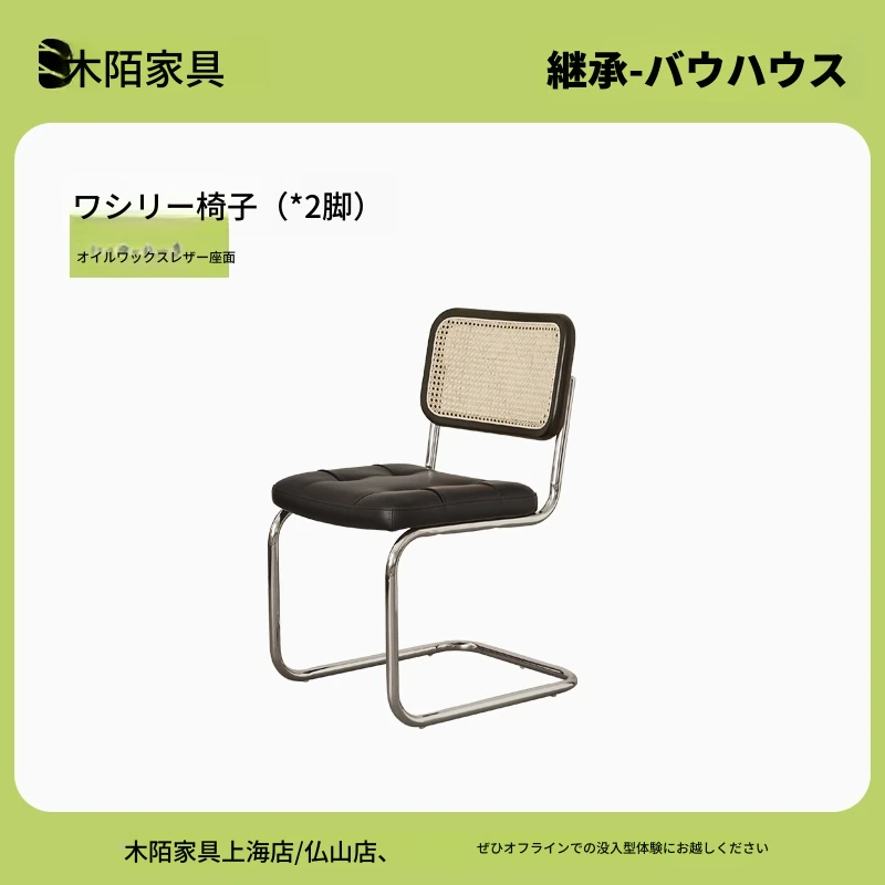 【ヴァシリー椅子-ブラック色】オイルワックス本革のダイニングチェア2脚