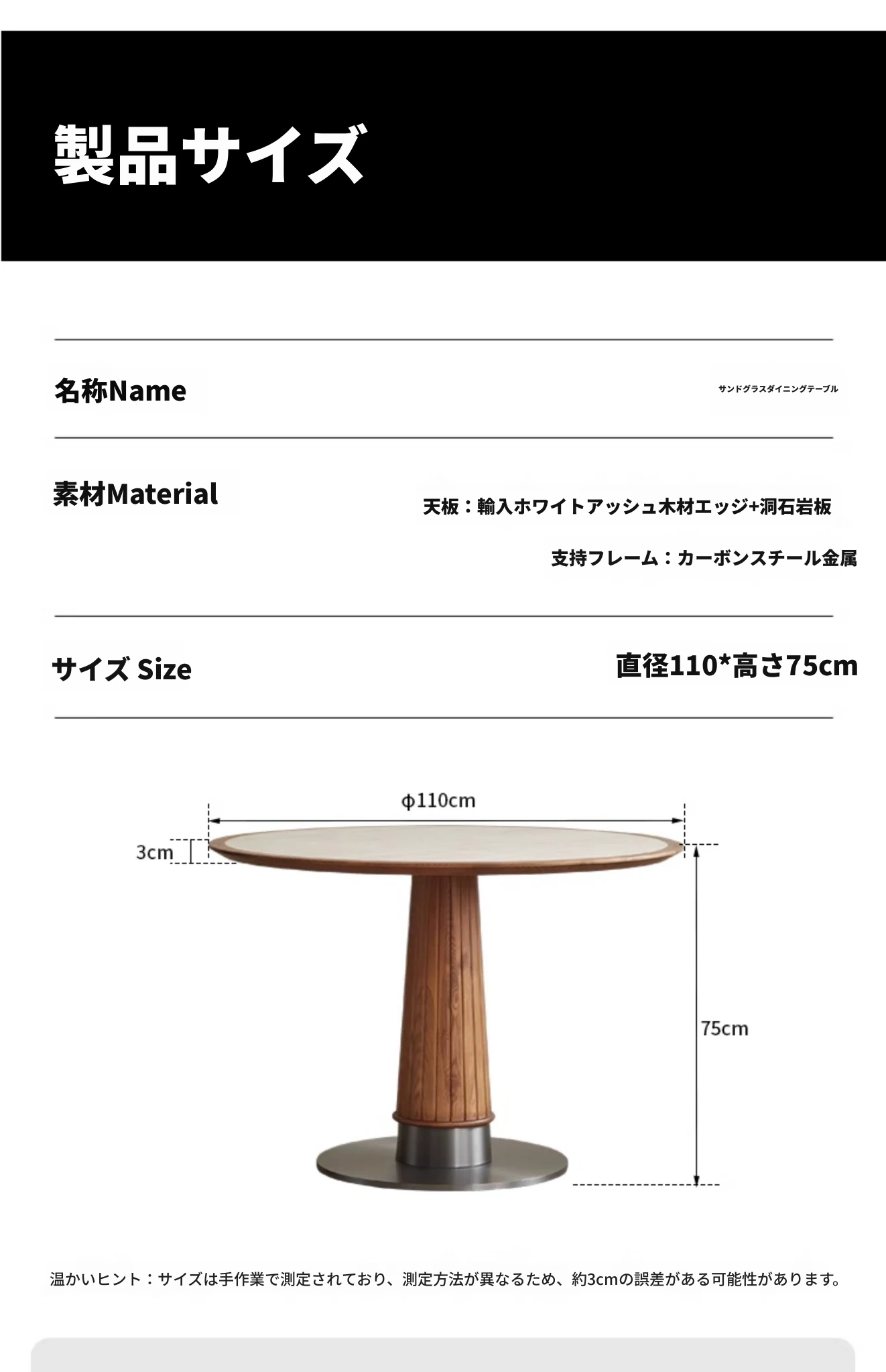 【ホワイトアッシュ-ブラック色】直径1.1メートル