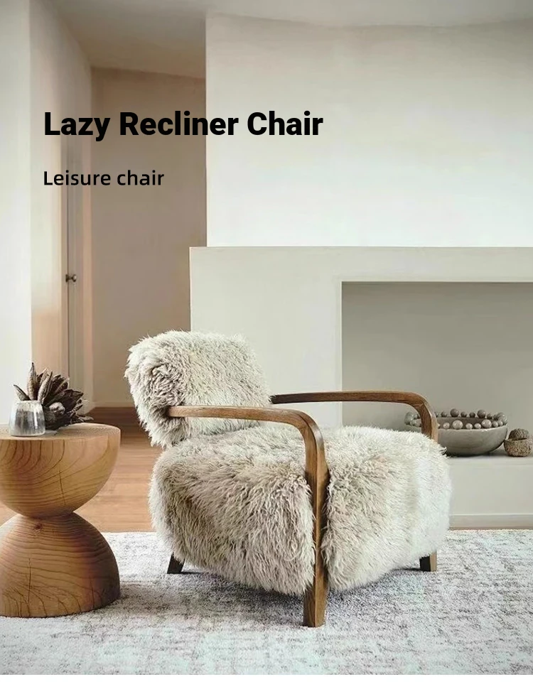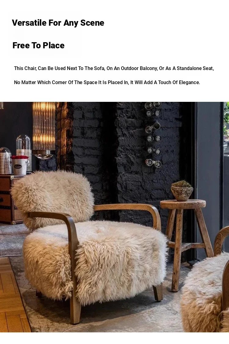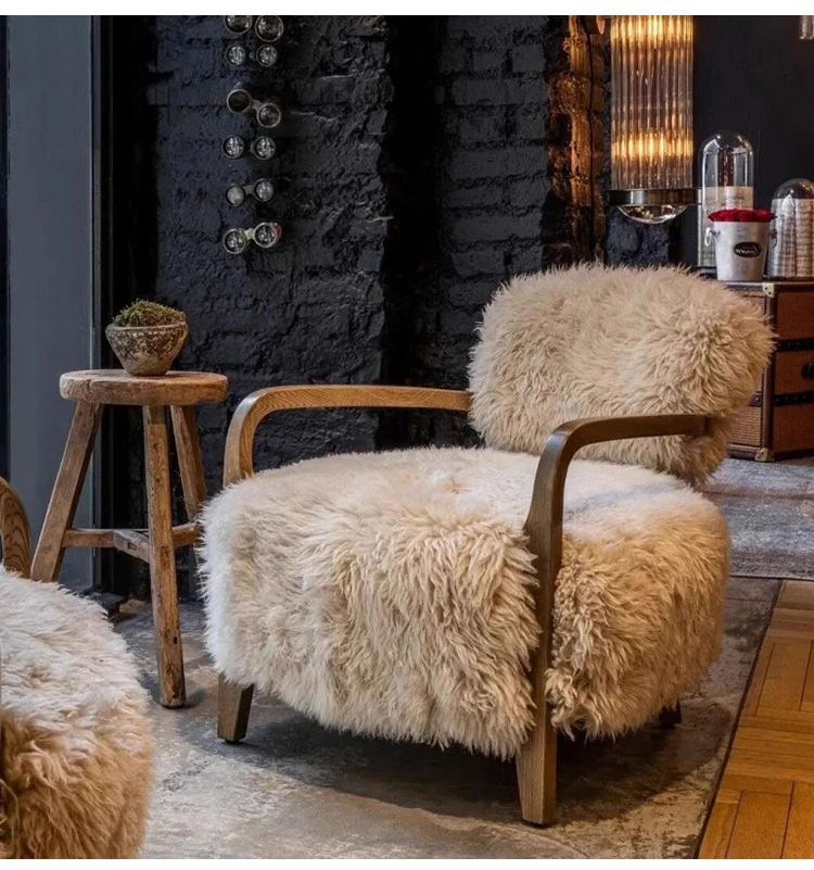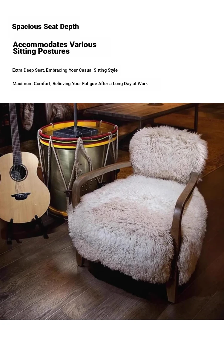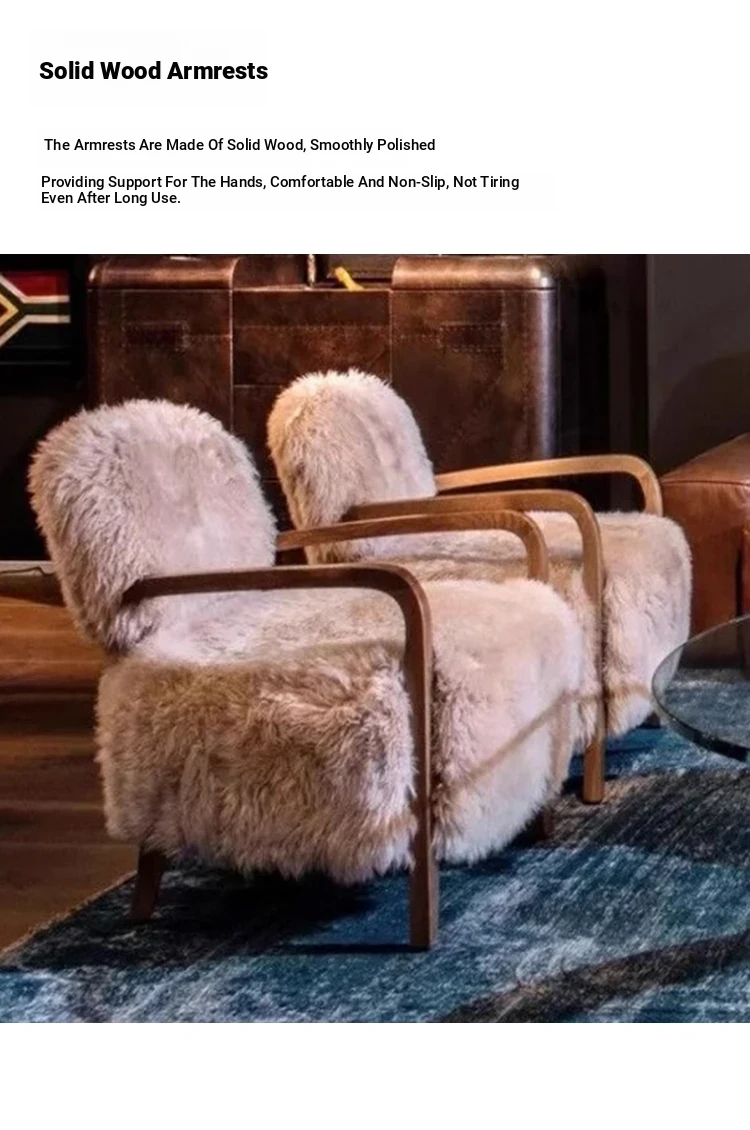 Vintage Solid Wood Sofa Chair - Designer Retro Armchair for Guesthouses, Living Rooms, and Balconies - Cozy Single Chair with Wool-Like Fabric for Relaxation and Leisure