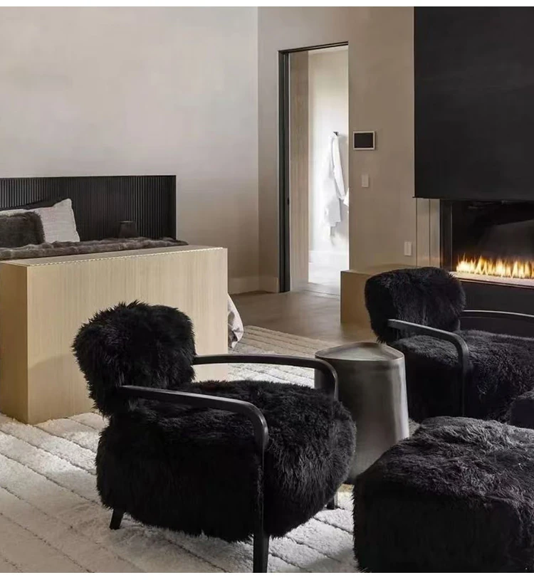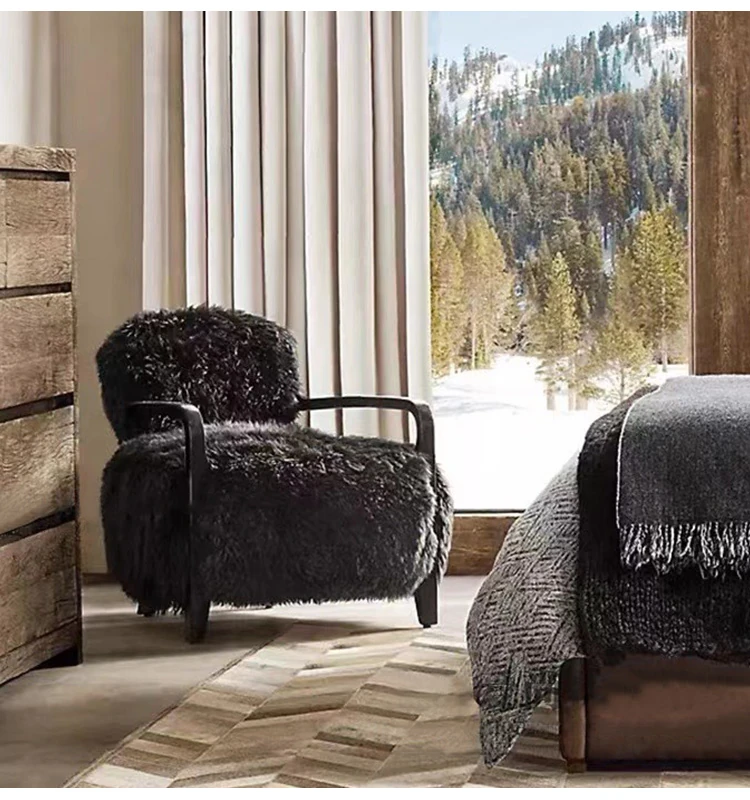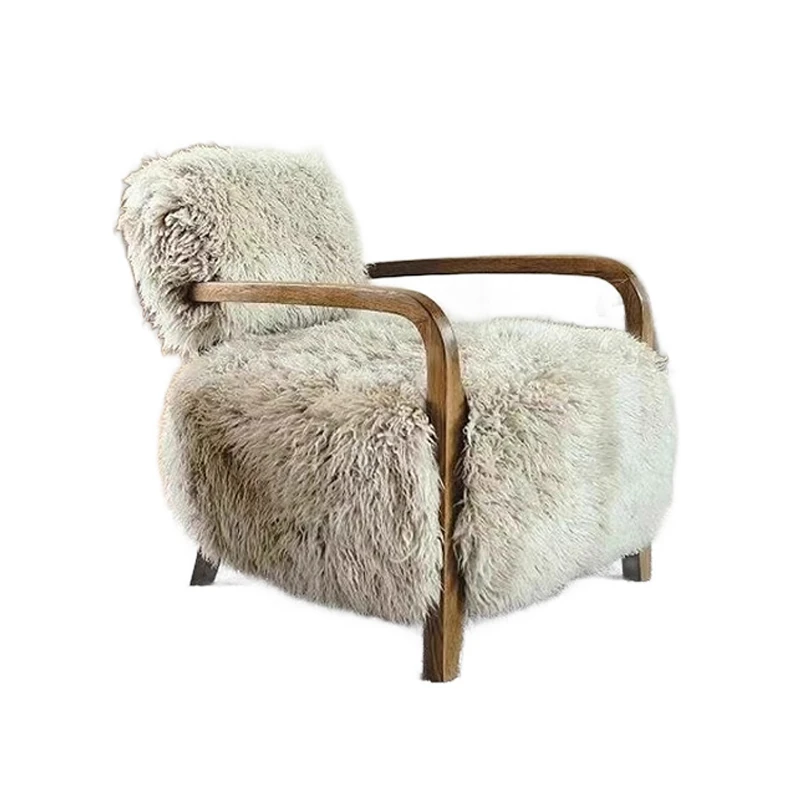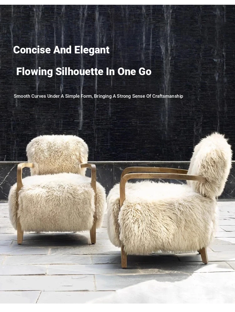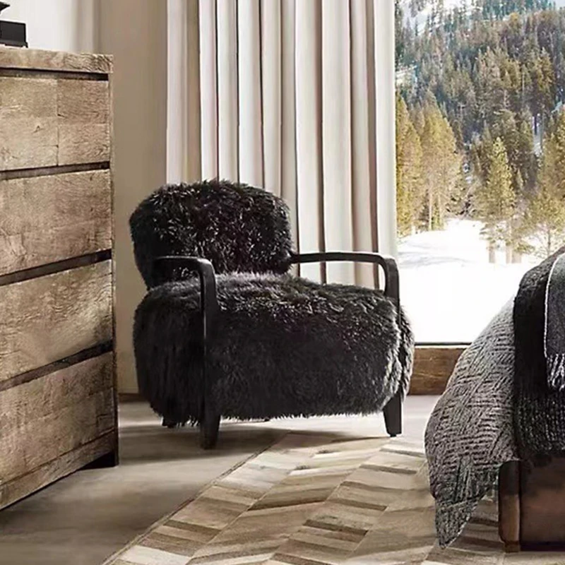 Vintage Solid Wood Sofa Chair - Designer Retro Armchair for Guesthouses, Living Rooms, and Balconies - Cozy Single Chair with Wool-Like Fabric for Relaxation and Leisure