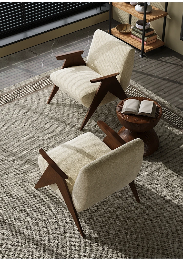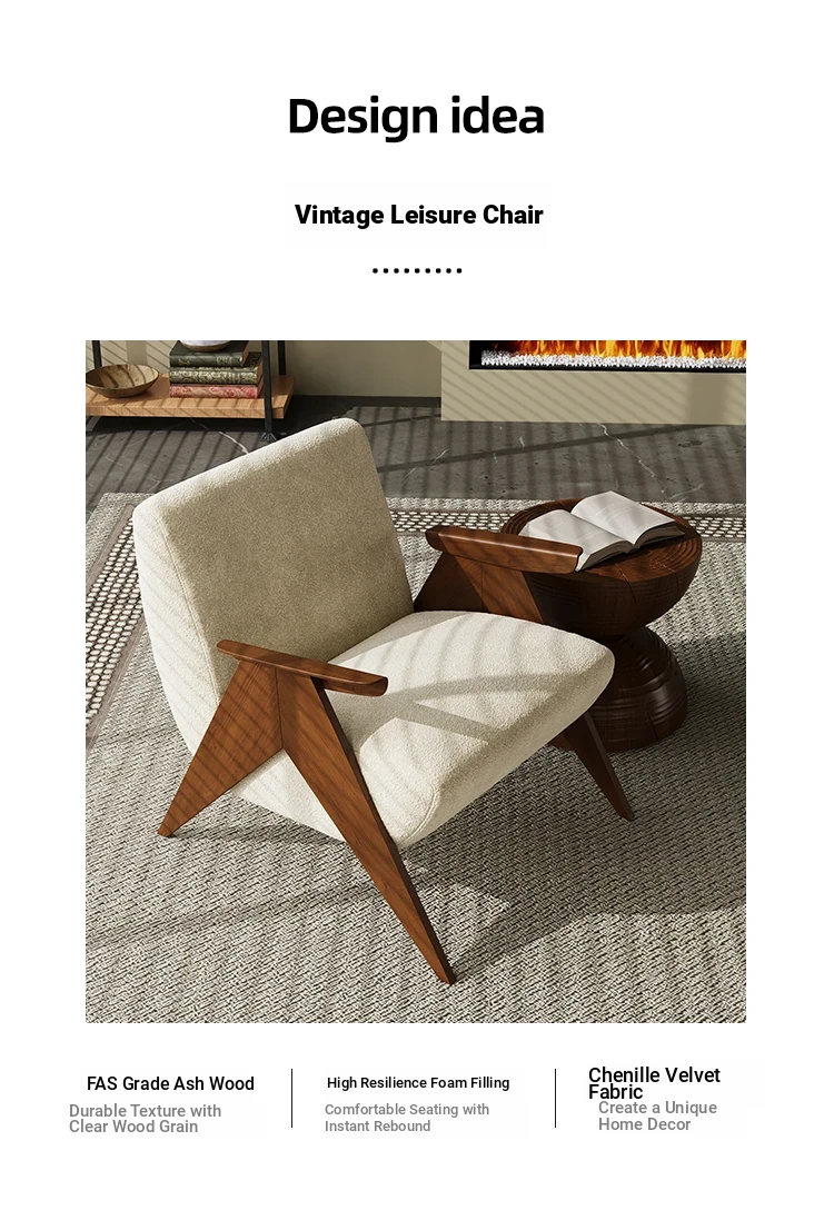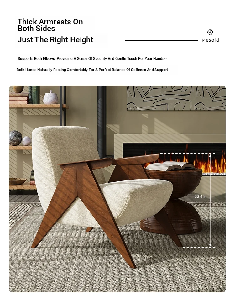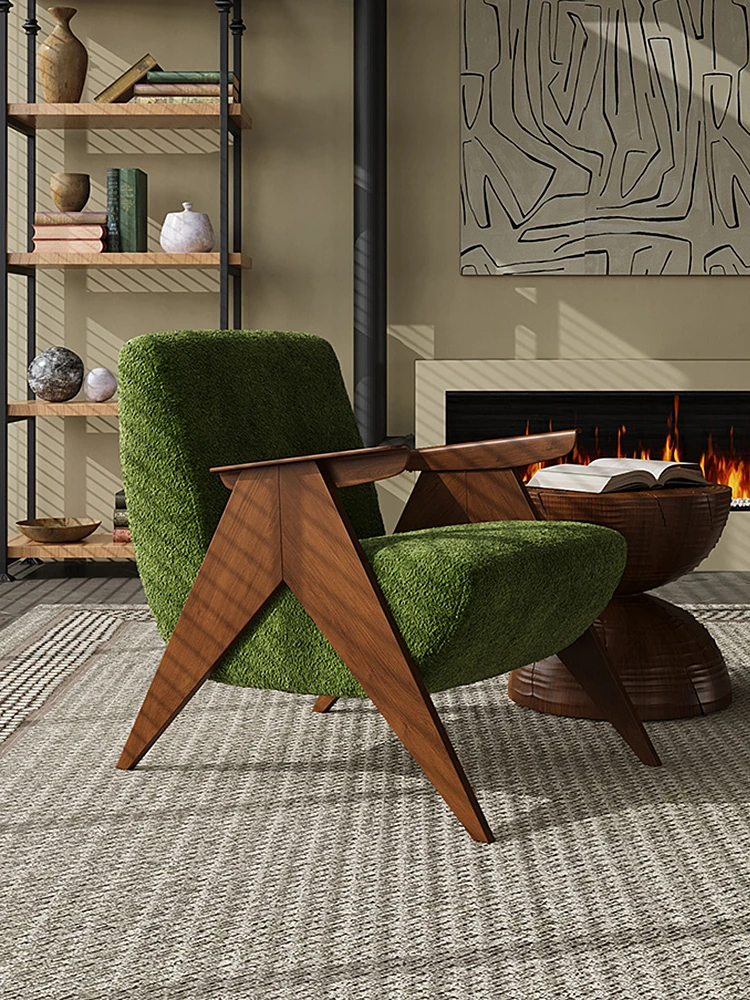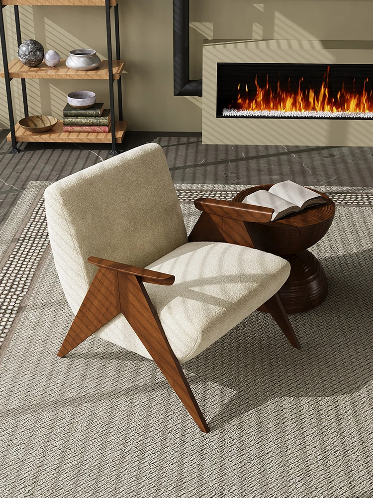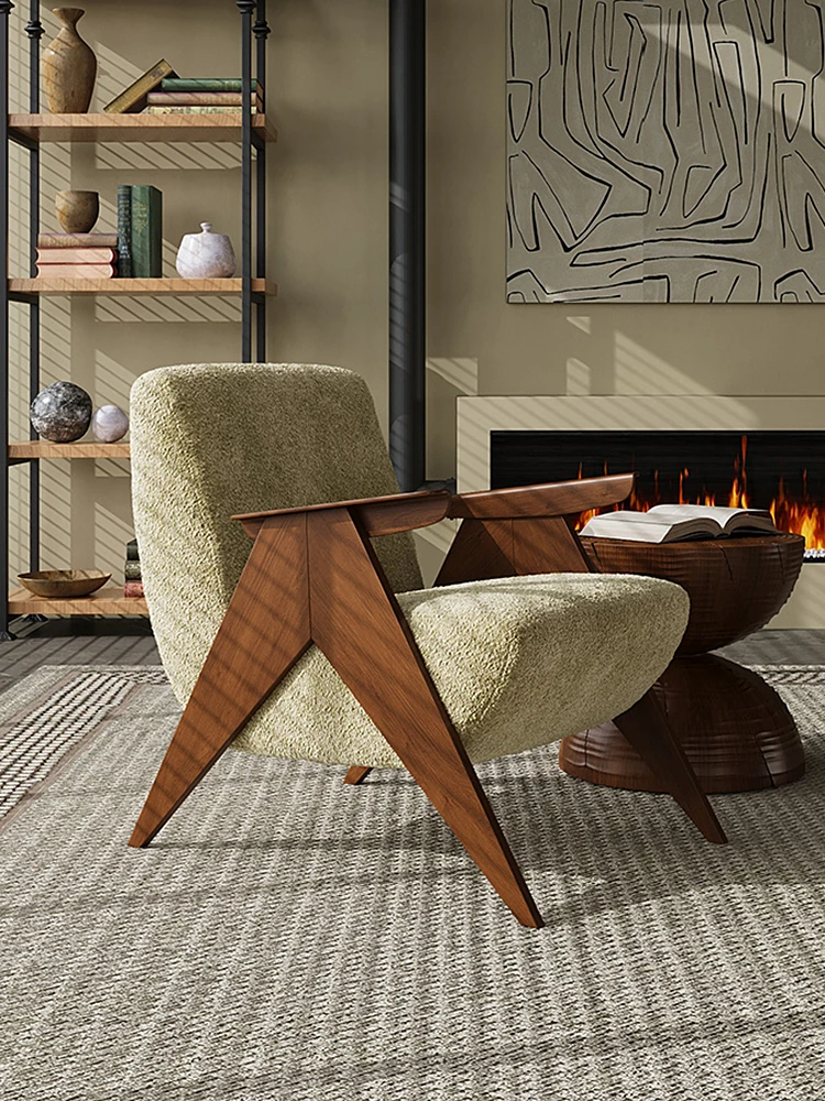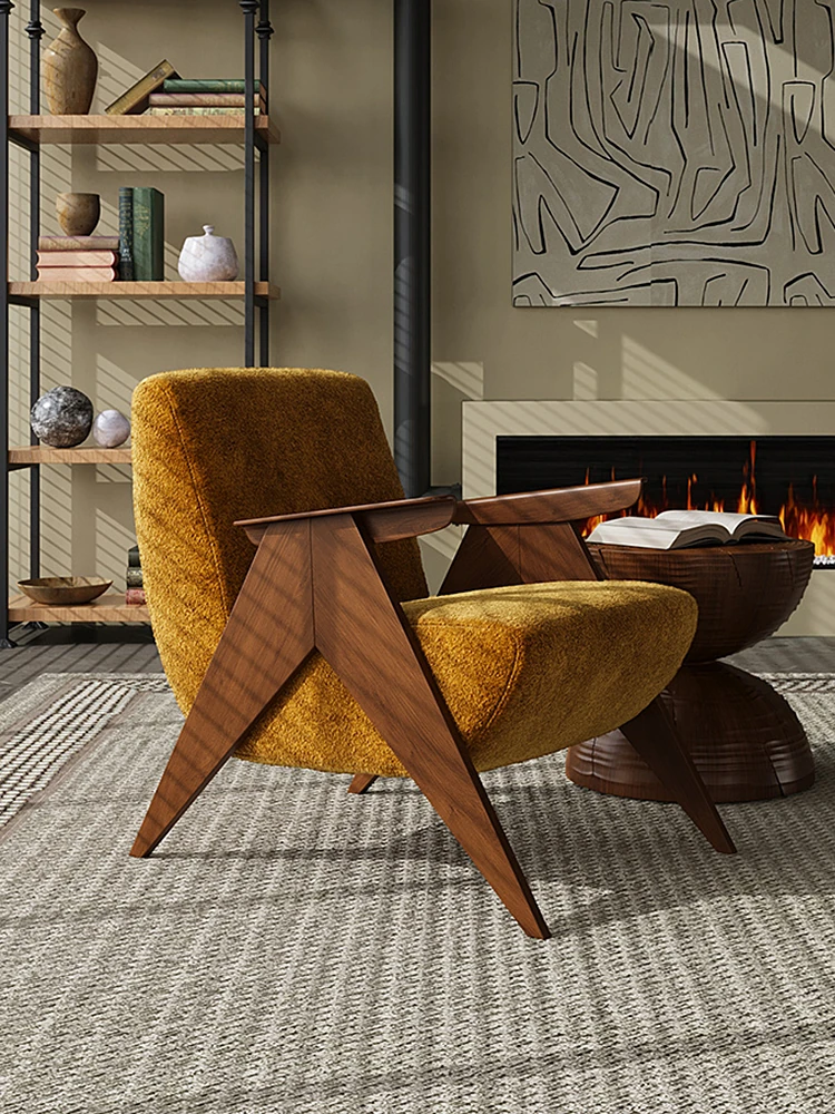 Wabi-Sabi Style Single Sofa Chair - Vintage Solid Wood Lazy Chair for Homestays, Living Rooms, Balconies, and Bedrooms - Stylish Tiger Chair for Relaxation