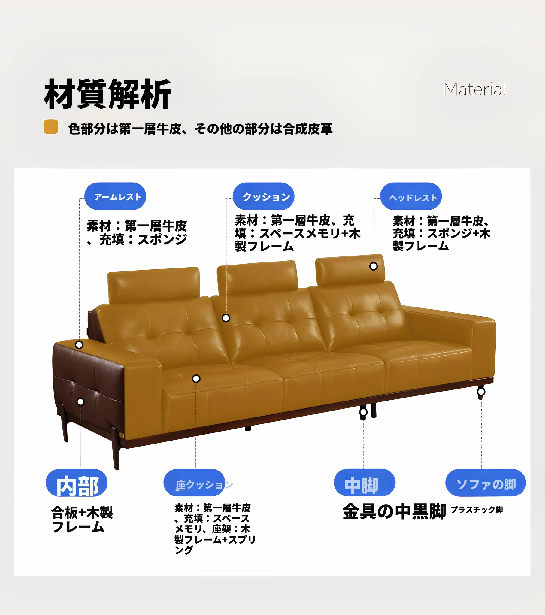 【2.1m|ダークブラウン|アメリカ輸入の半青厚皮】-30日発送