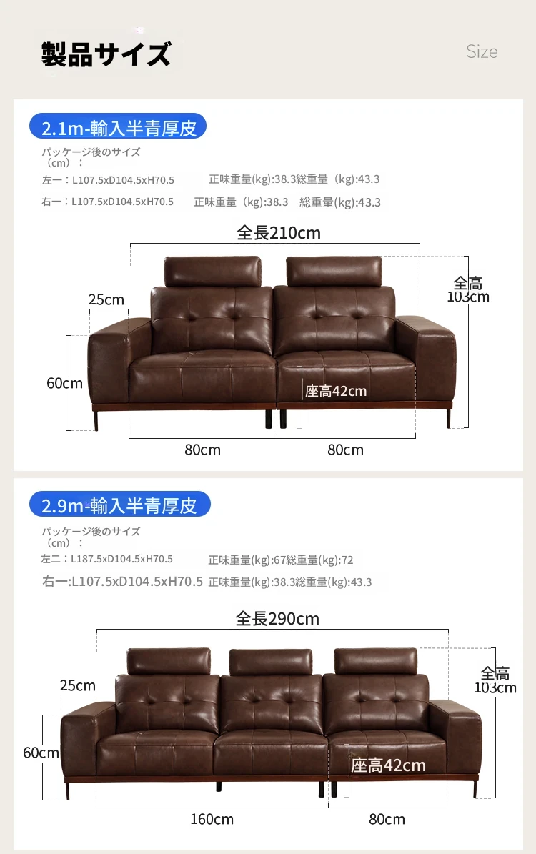 【2.1m|ダークブラウン|アメリカ輸入の半青厚皮】-7日発送