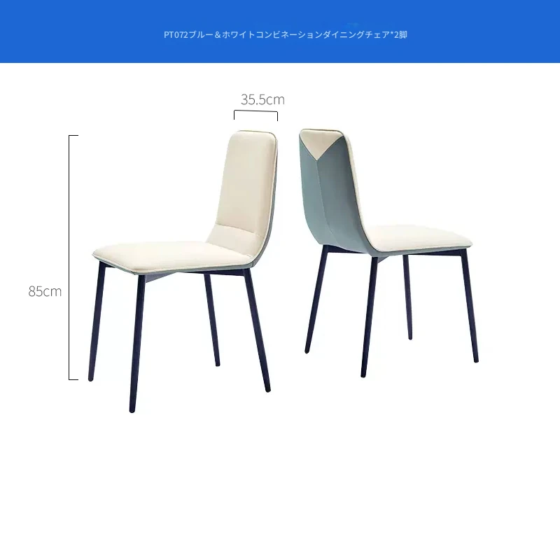 青と白のカラーブロックのダイニングチェア2脚-15日以内に発送