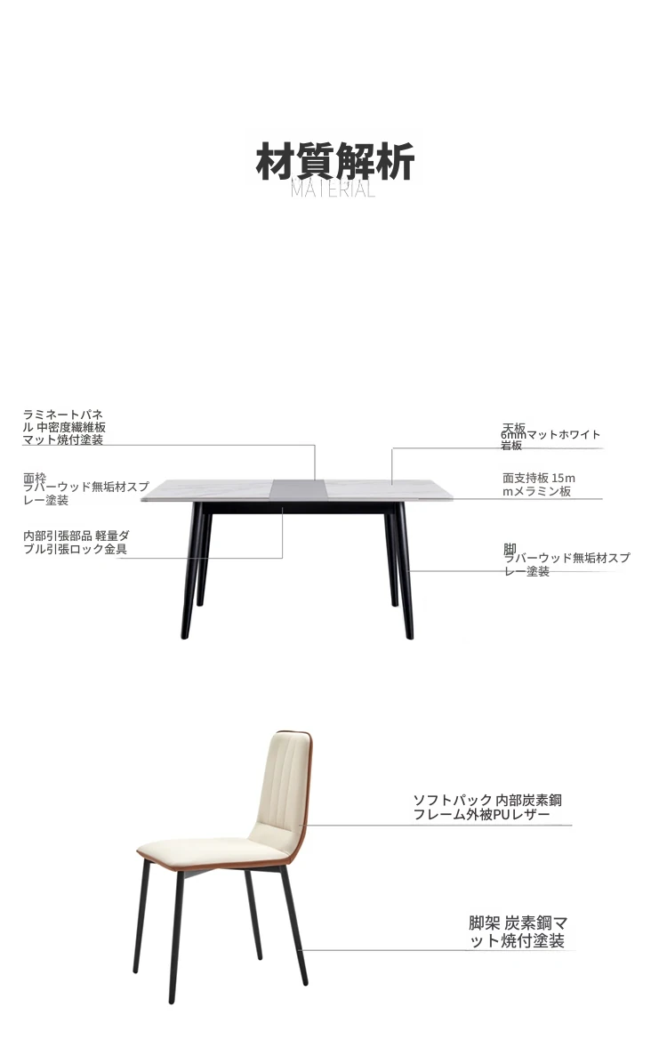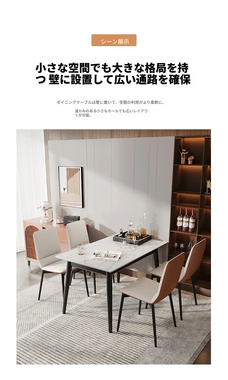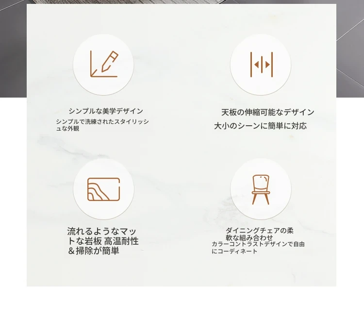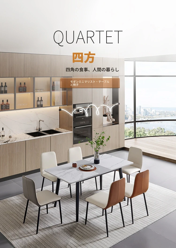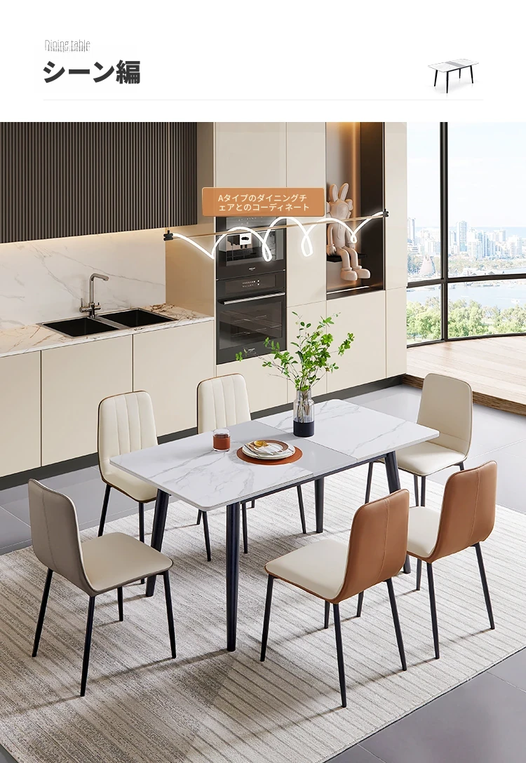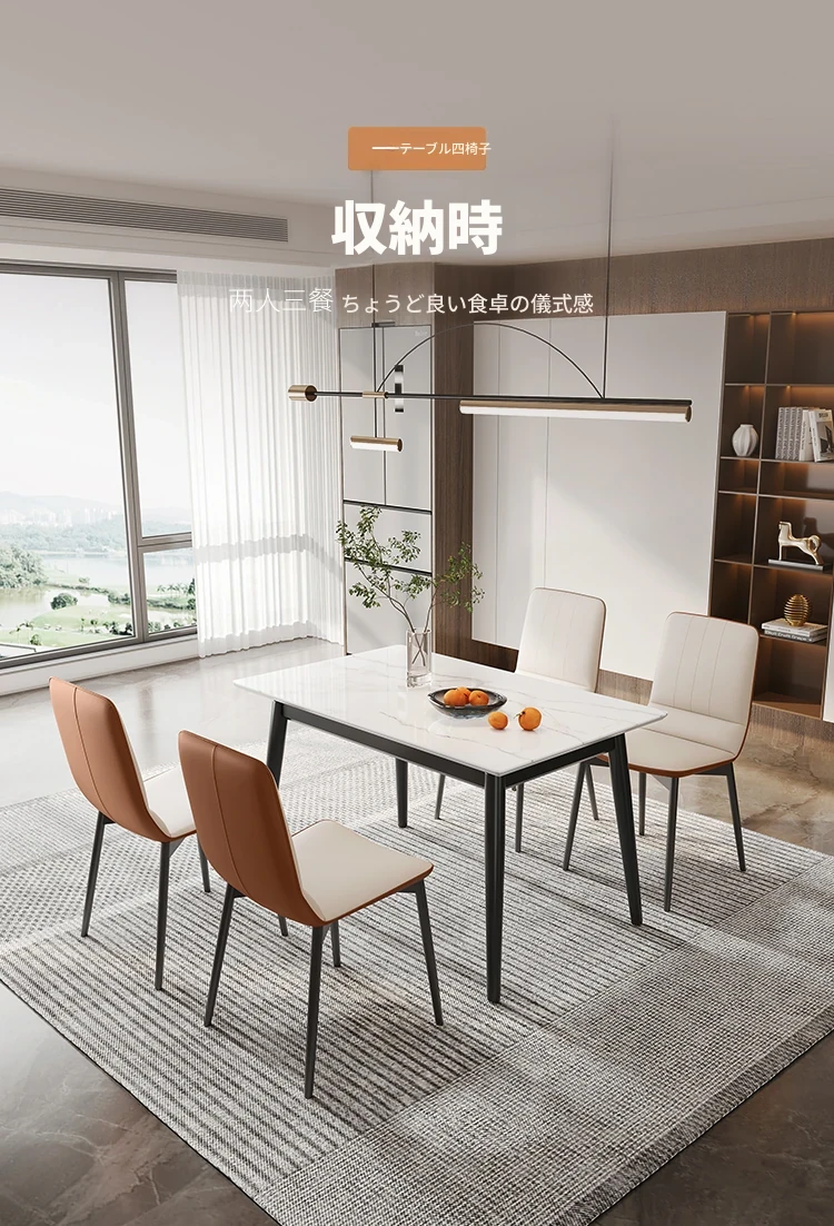 芝华仕モダンミニマリスト岩板伸縮式ダイニングテーブル 小型家庭向け長方形食卓セット PT072 - スタイリッシュなデザインで空間を広く演出!快適な食事時間をお楽しみください。