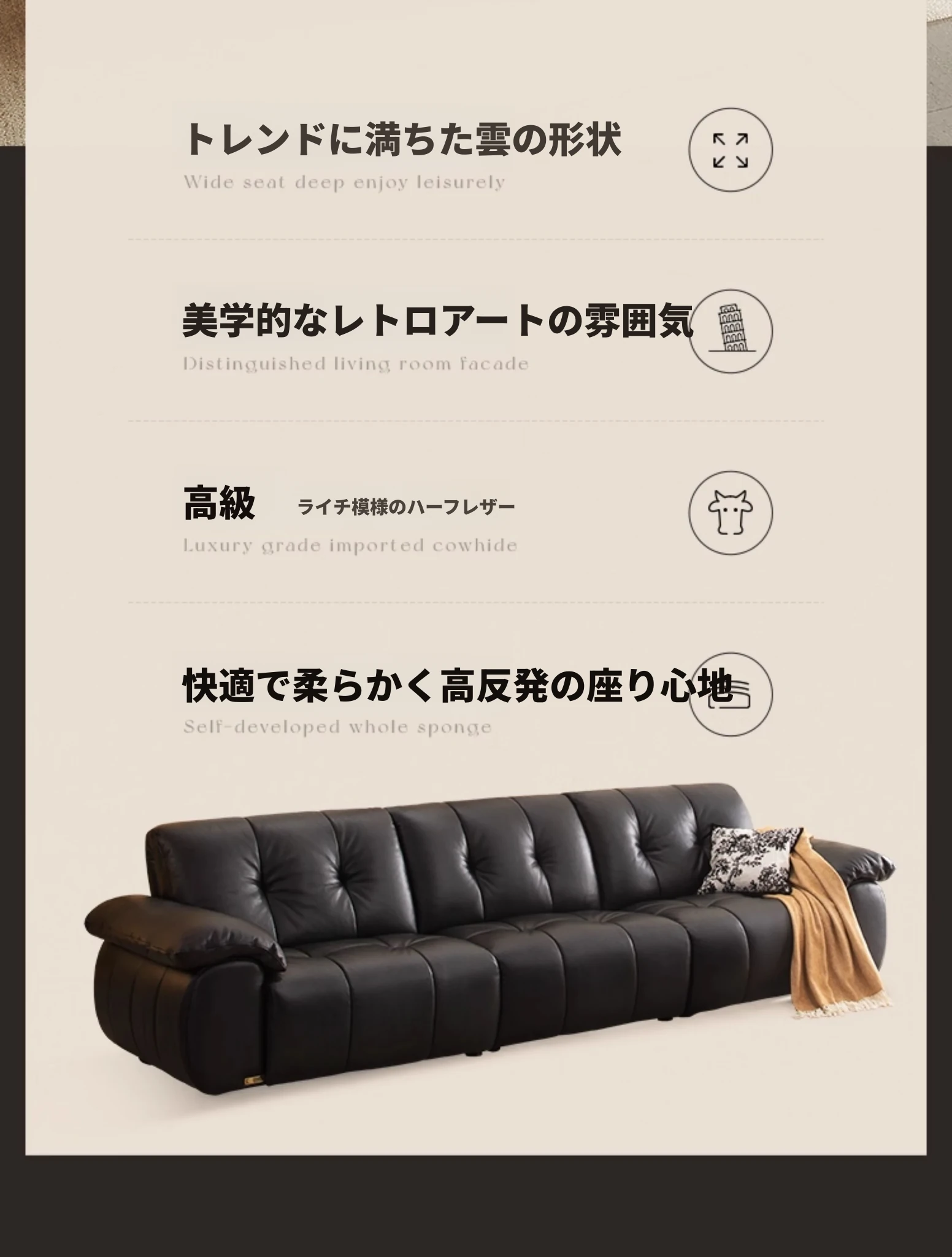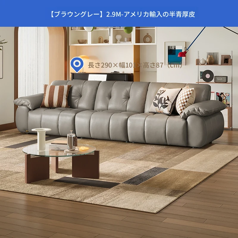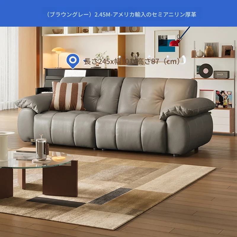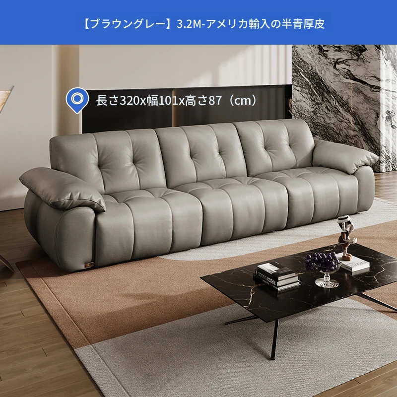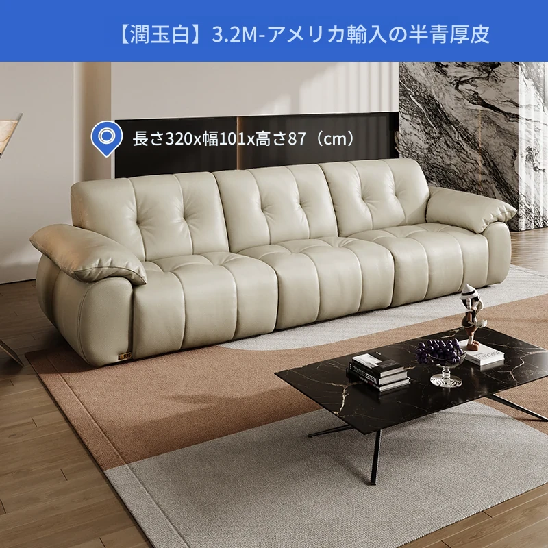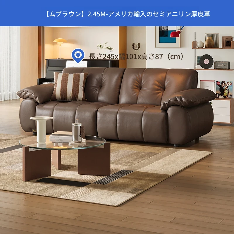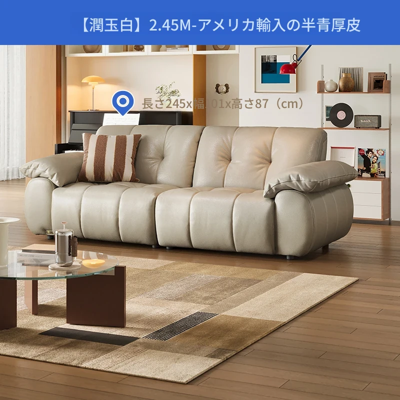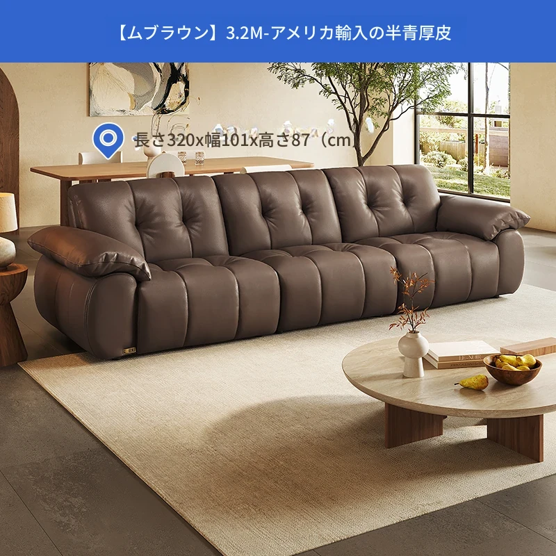 芝华仕大黒牛本革ソファ レトロ雲朵デザイン リビング用 2025年新作 ハーフグリーンスキンソファ 3176B - 高級感溢れるスタイルで、リラックスしたひとときを提供します。