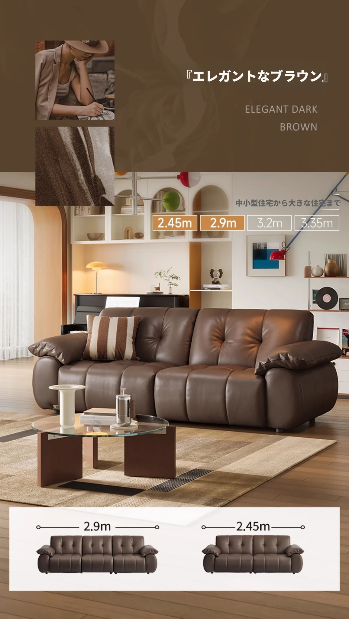 【2.45m|ブラウングレー|アメリカ輸入ハーフグレイン】