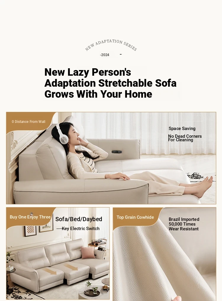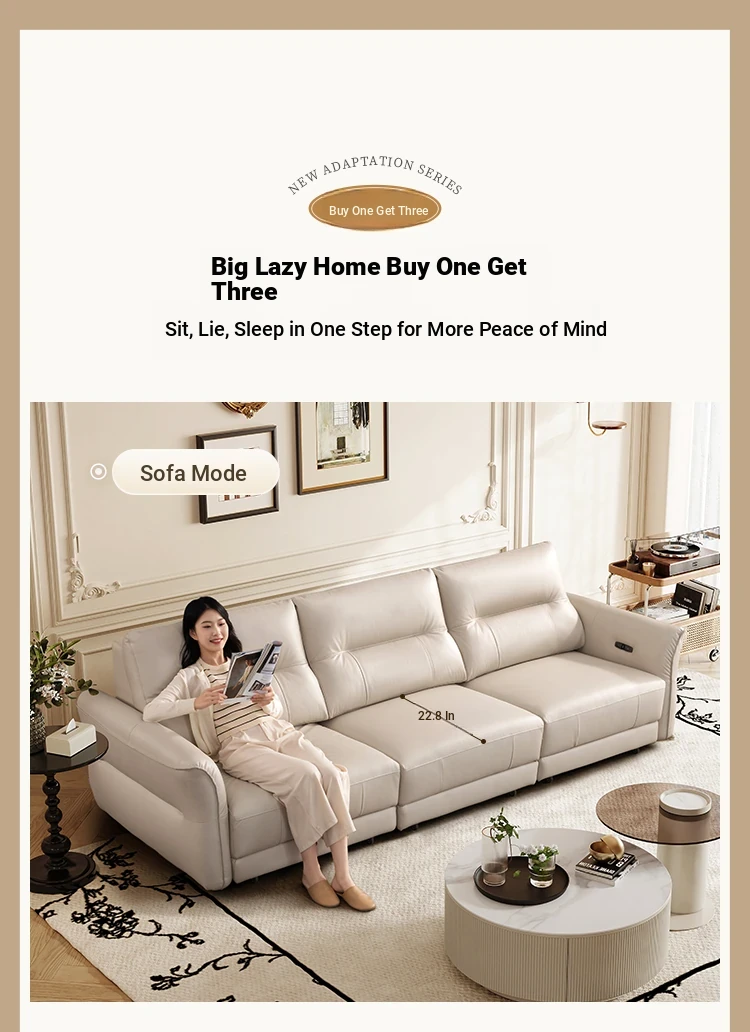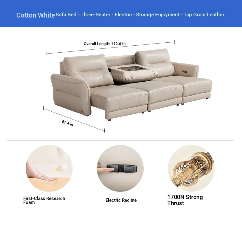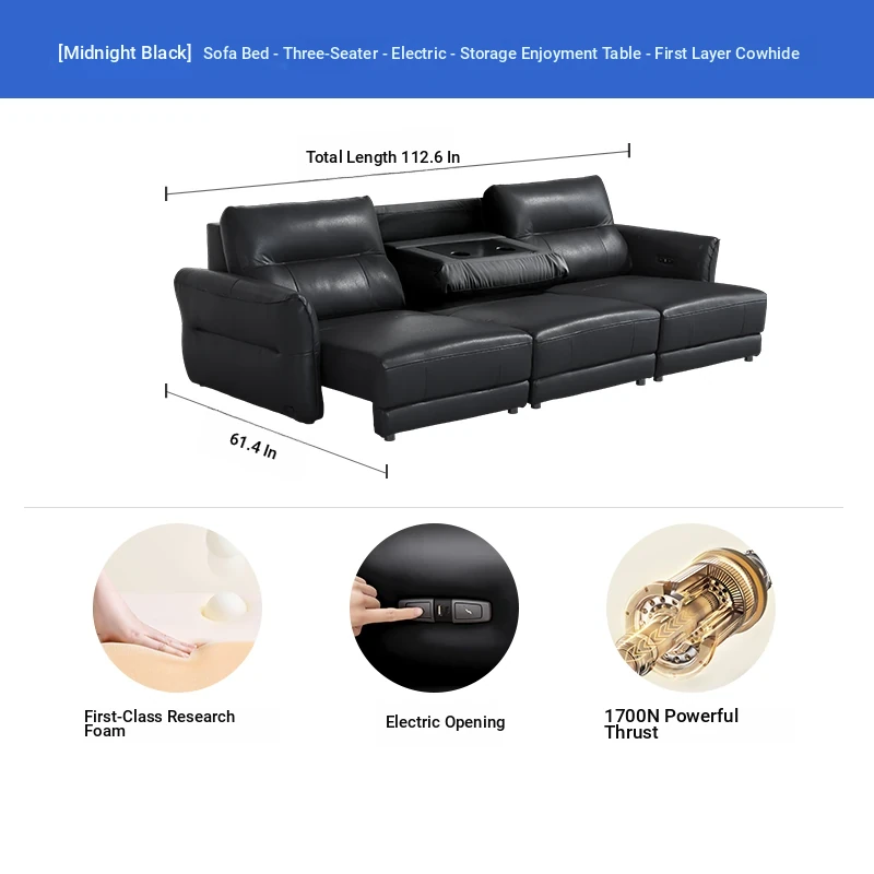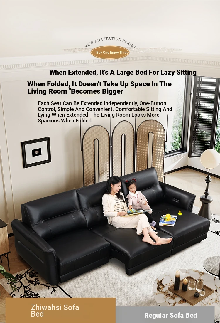Zhiwa Leather Reclining Sofa Bed - Luxury Electric Multifunctional Foldable Couch for Living Room, Model 30286. Experience ultimate comfort and versatility in your space!