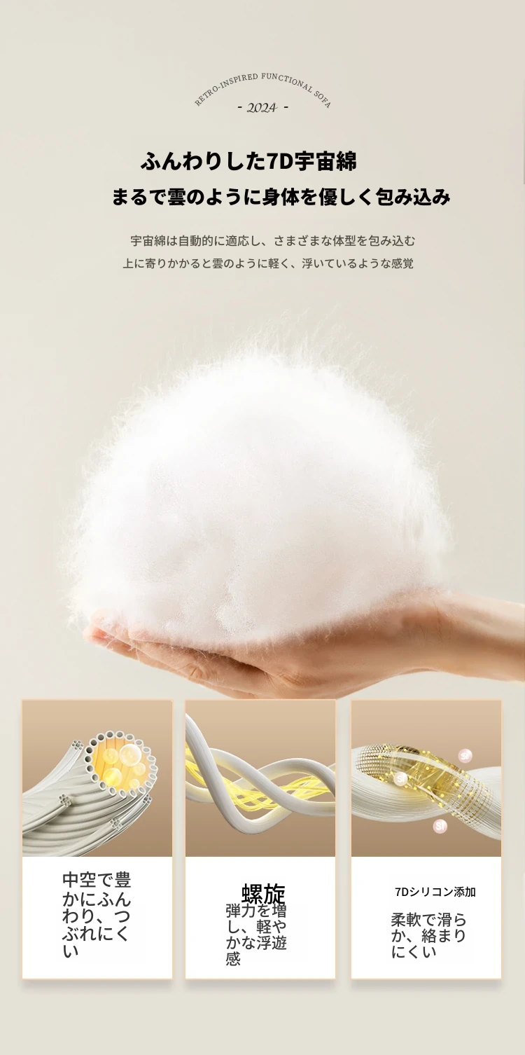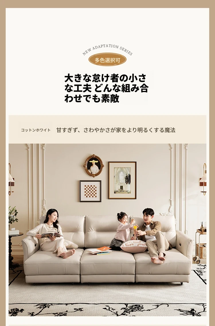 【翻倒几】コットンホワイト-3人掛け電動-2.86M-7日発送