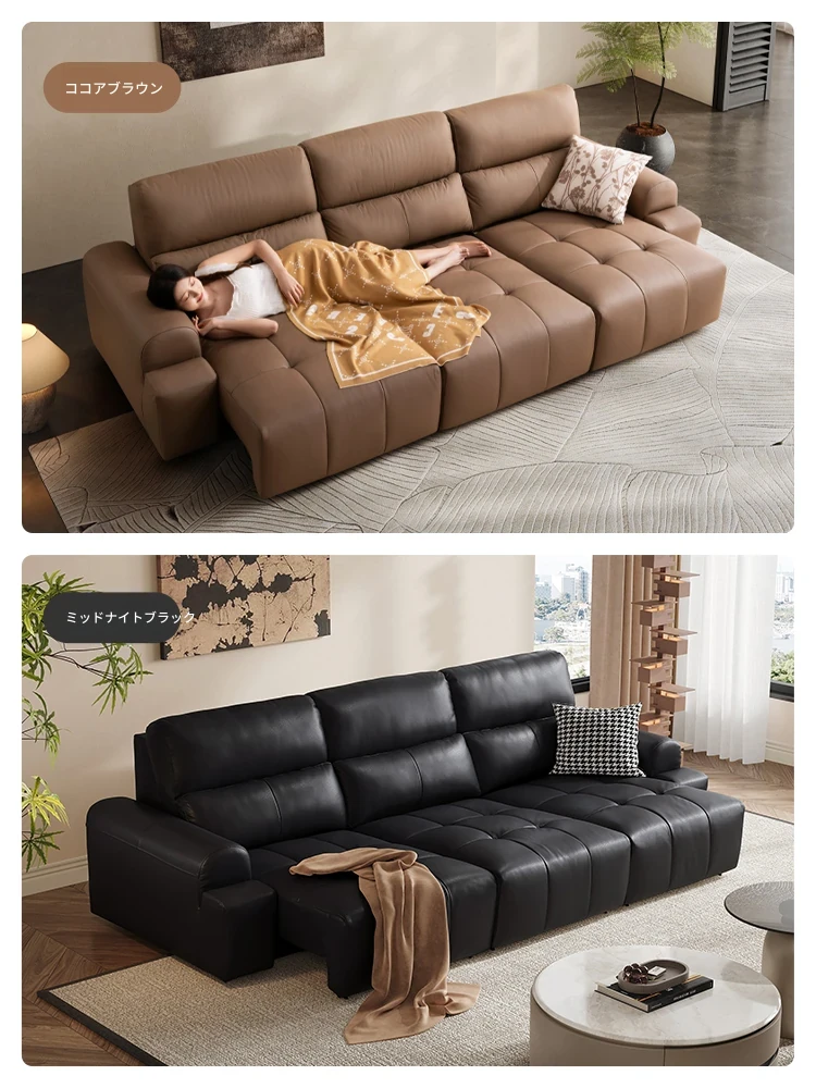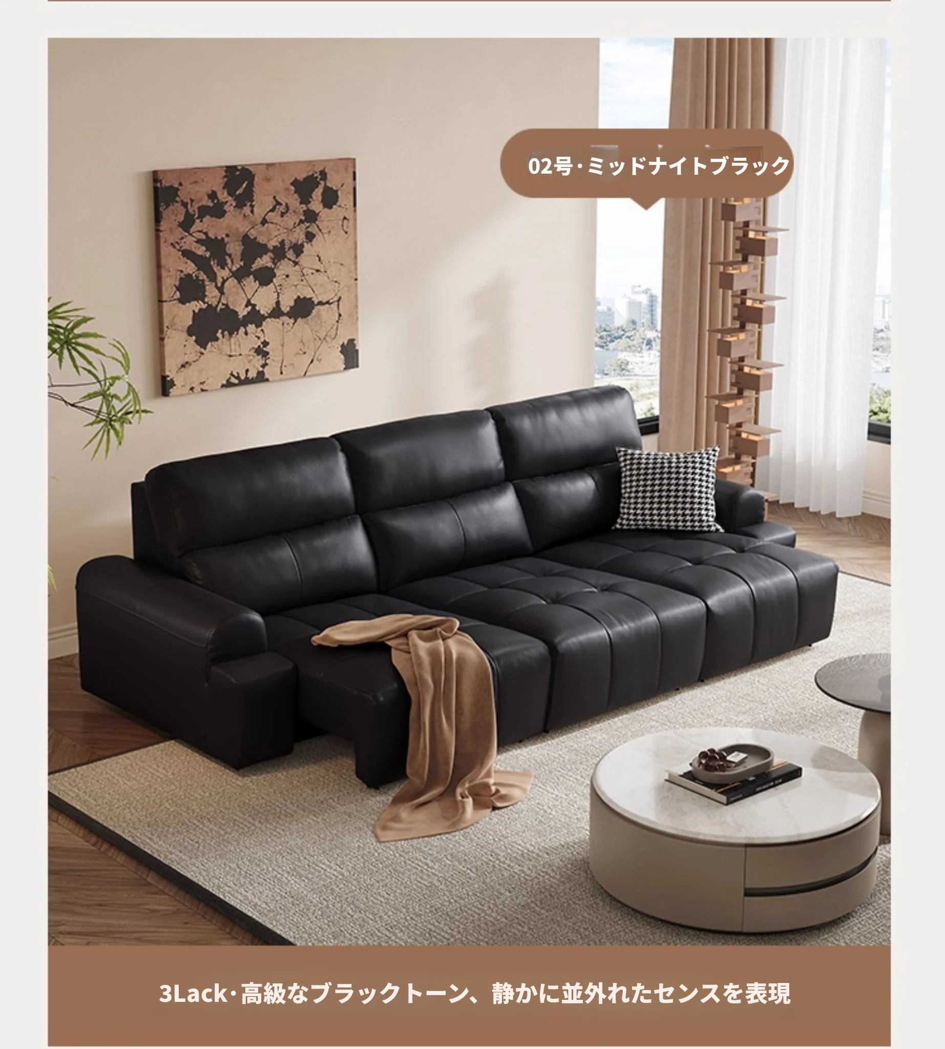 ミッドナイトブラック-3人掛け3電動ソファベッド-3.00M-7日発送