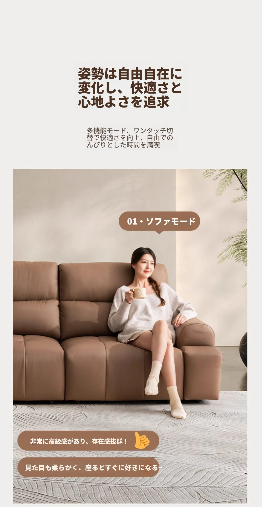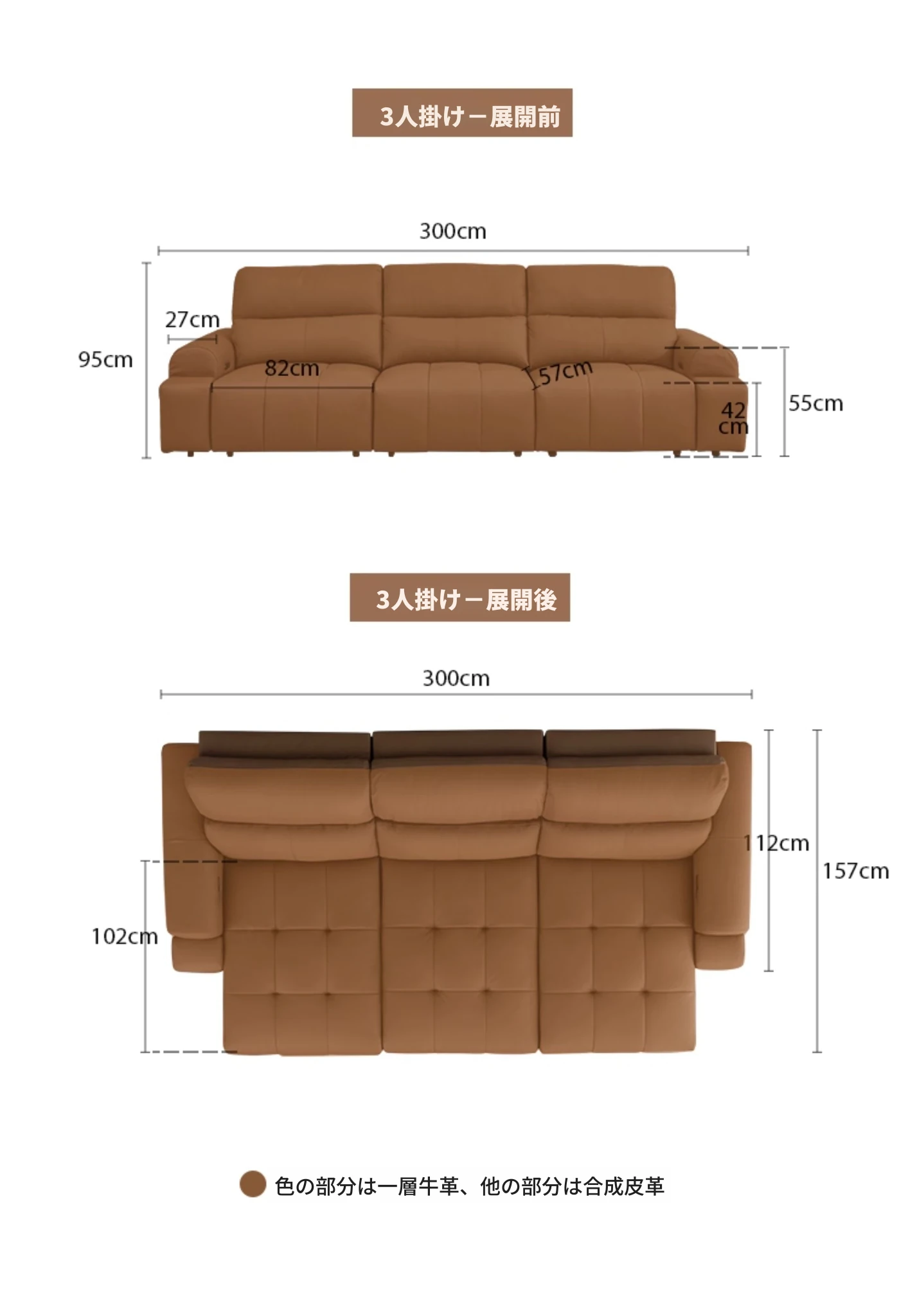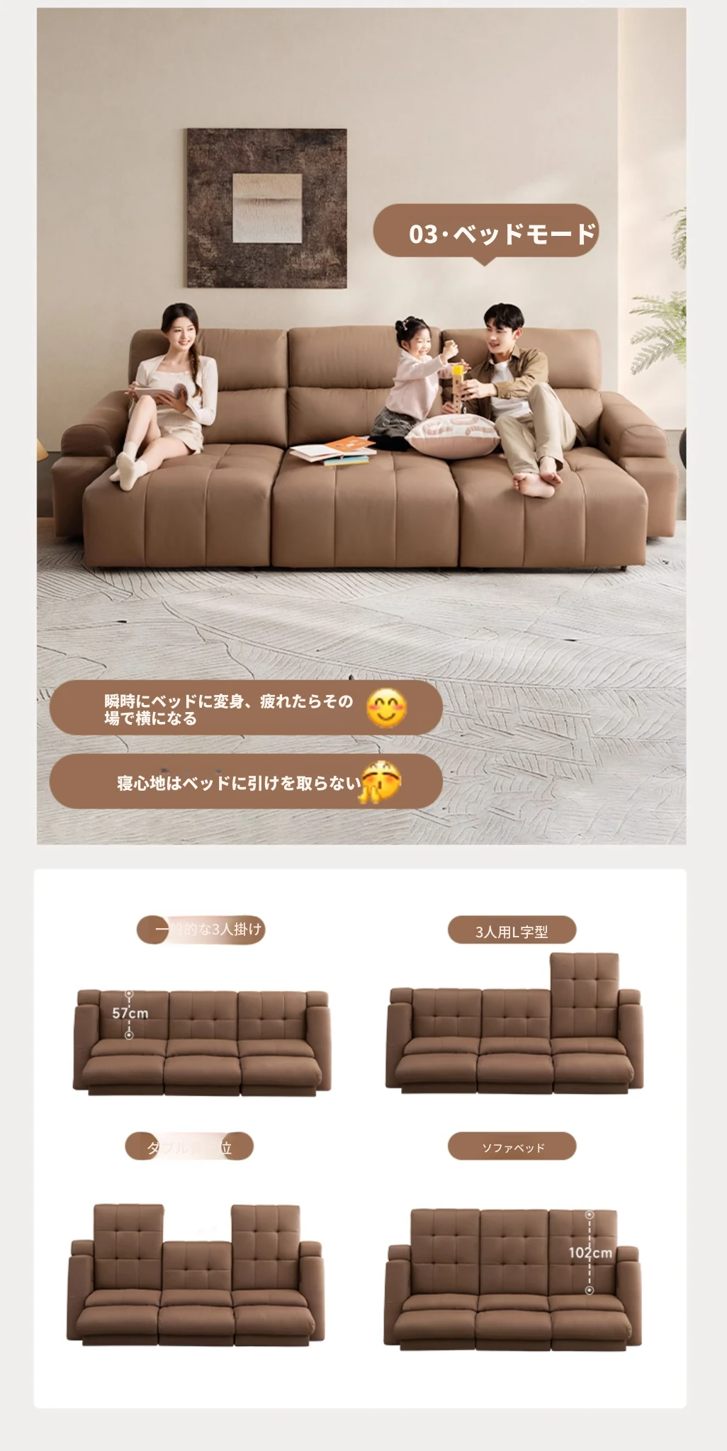 ココブラウン-3人掛け3電動ソファベッド-3.00M-7日発送