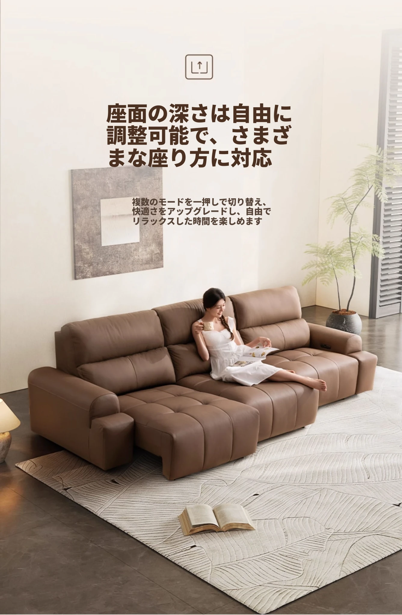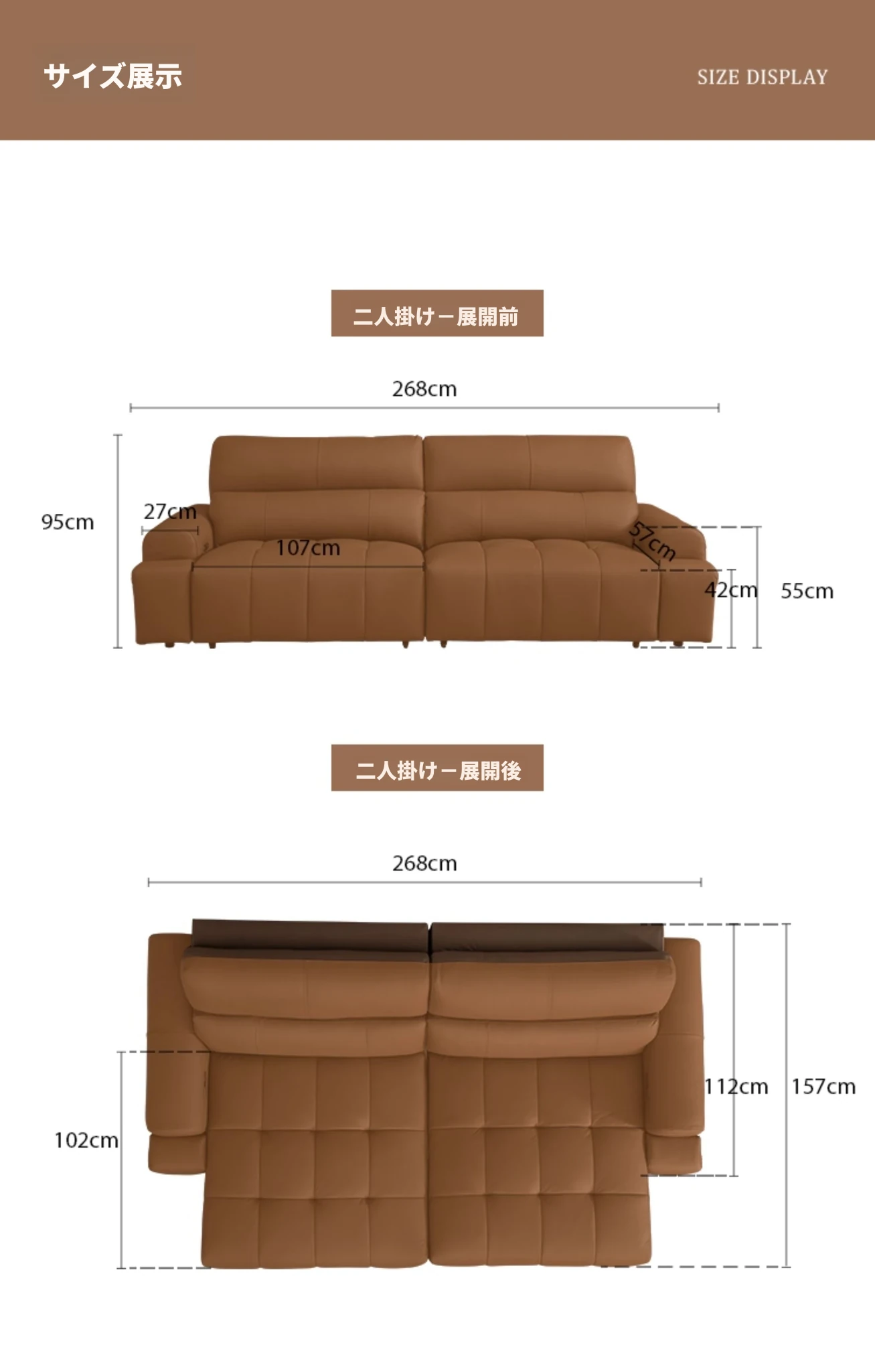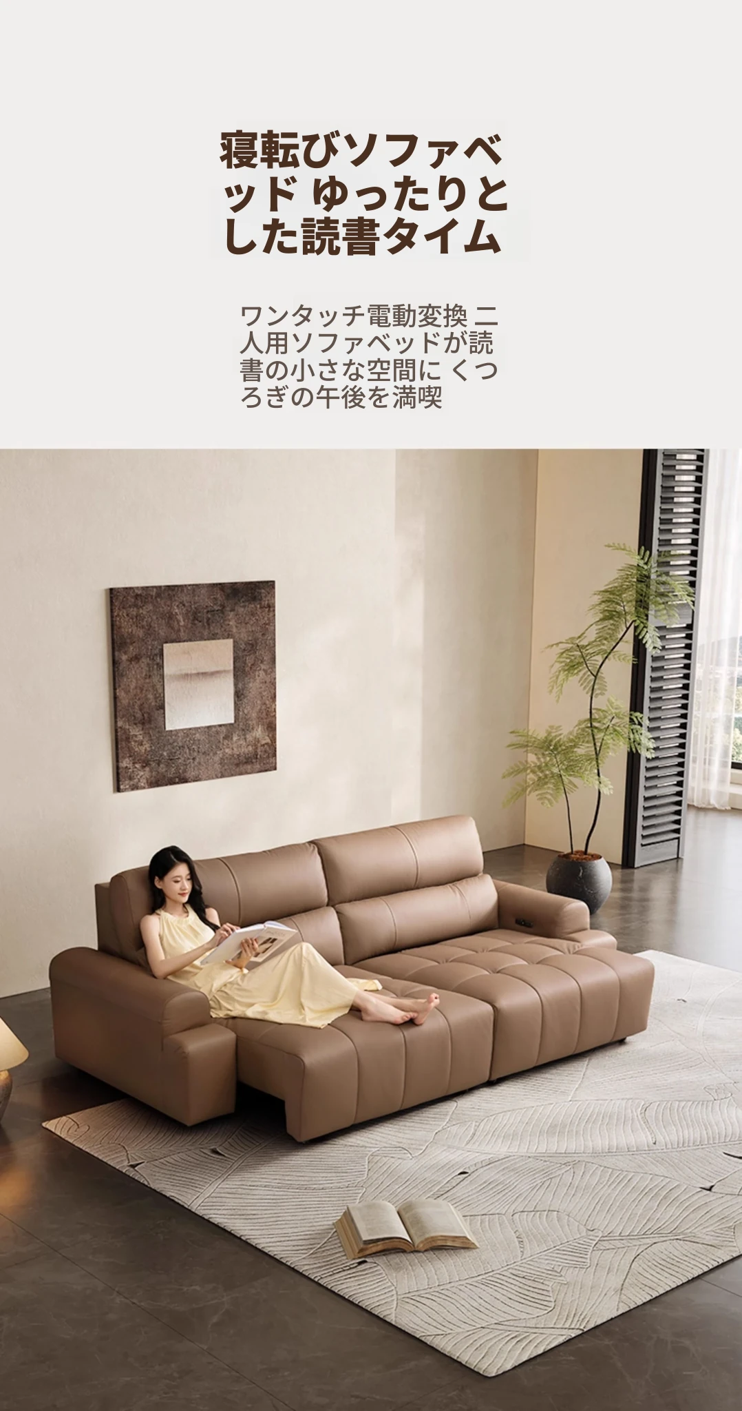ココブラウン-3人掛け3電動ソファベッド-3.00M-7日発送